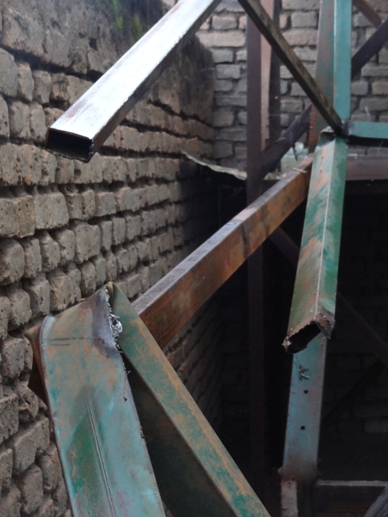 Vanochtend begrepen we van de “aannemer” dat hij van tevoren al had gedacht dat het ijzer niet sterk genoeg zou zijn om de volle tank te dragen, maar er was niets beters beschikbaar. Ik zou bijna een aanklacht indienen wegens een poging tot doodslag, maar hier halen ze hun schouders op (ook het slachtoffer) en wordt een beetje lacherig gereageerd. Sommige dingen zal ik wel nooit gaan begrijpen en in dit geval wil ik dat ook niet!
