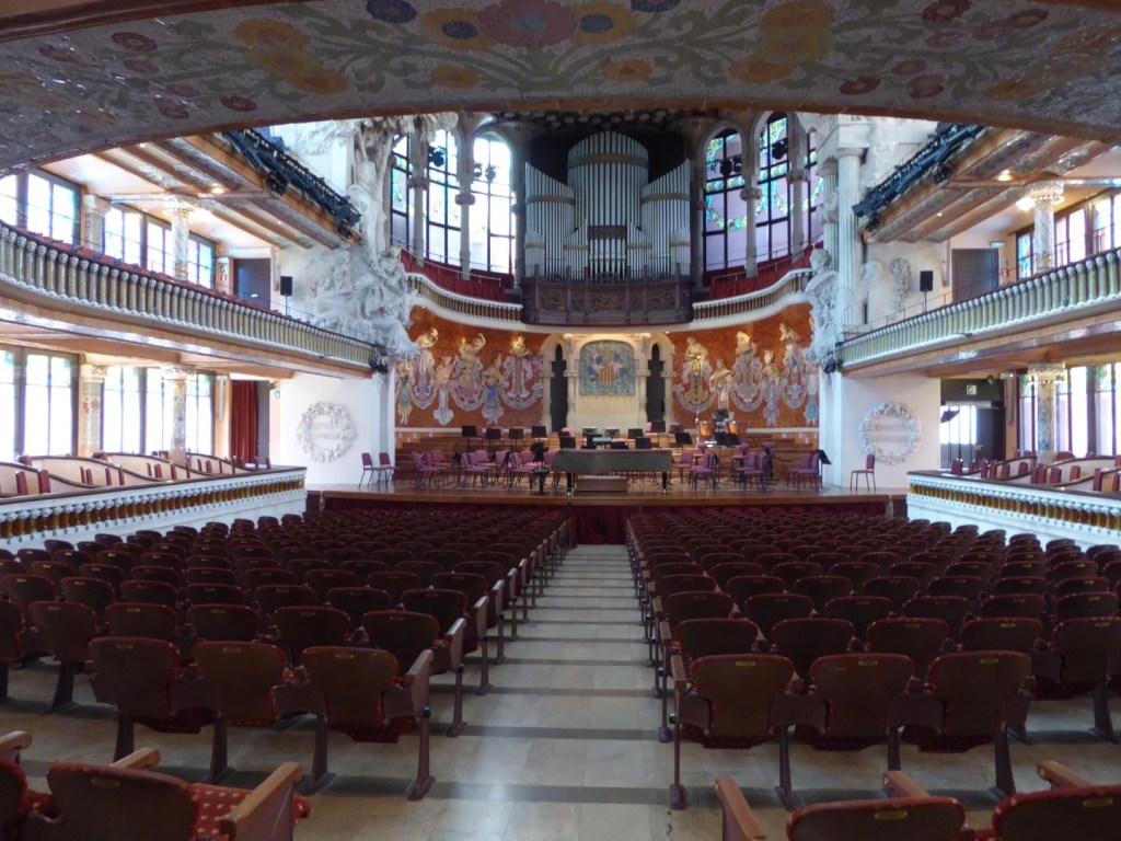 Deze creatie van Domenech i Montaner huisvest alle soorten muziekvoorstelling, behalve grootschalige opera’s. Die vinden plaats in het Gran Teatro del Liceo.
