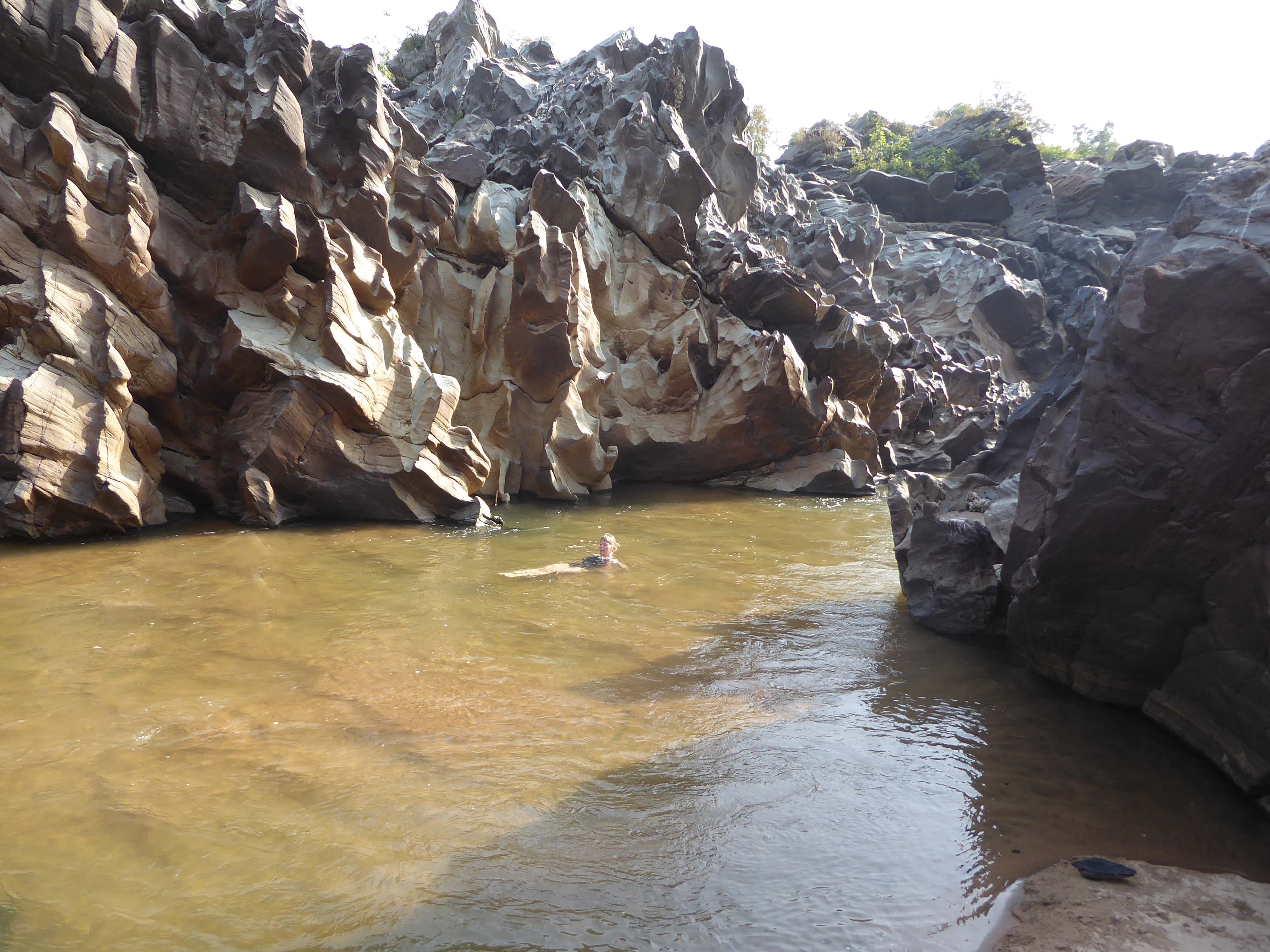 Ondanks de sterke stroming, kun je uitstekend zwemmen tussen de rotsen