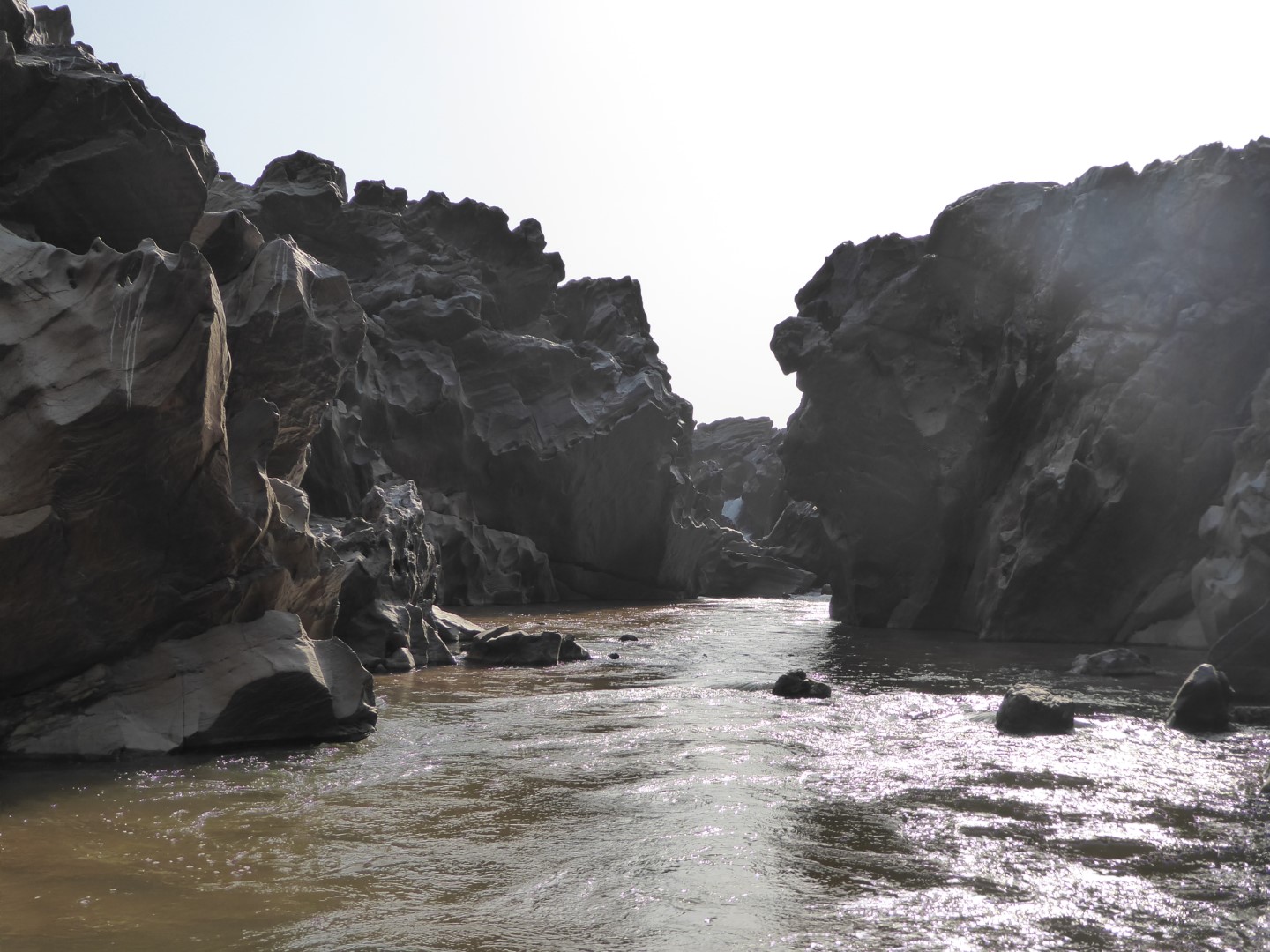 Een klein stuk van de Benoue stroomt tussen de grillig gevormde rotsen, wat prachtige vormen oplevert