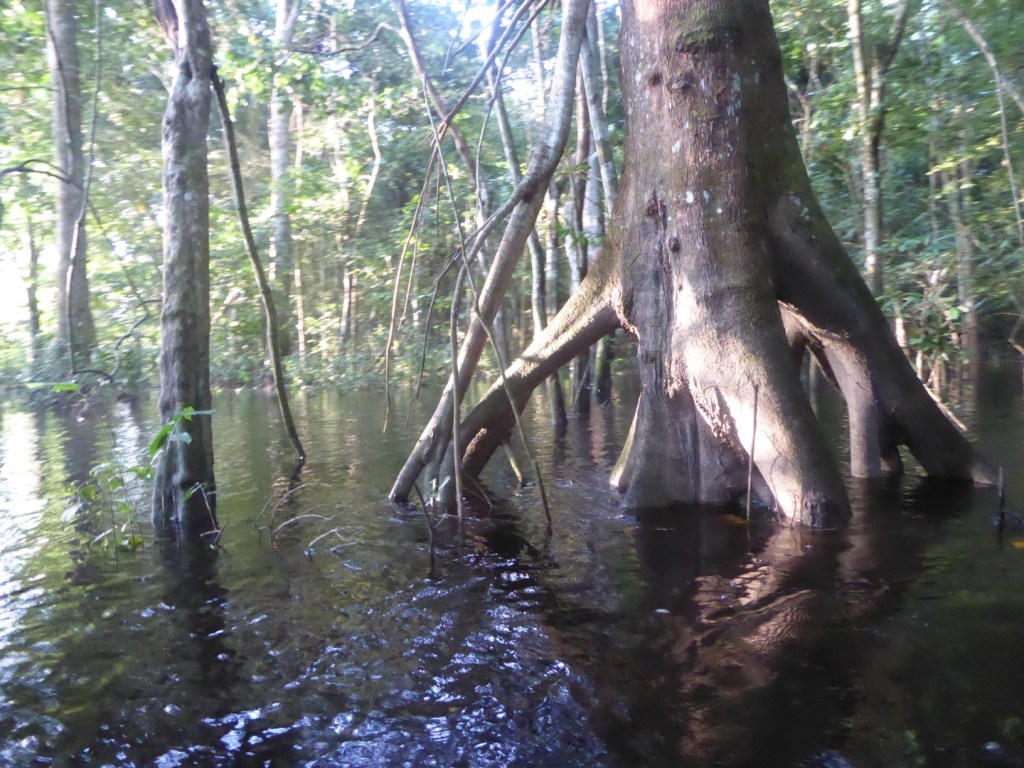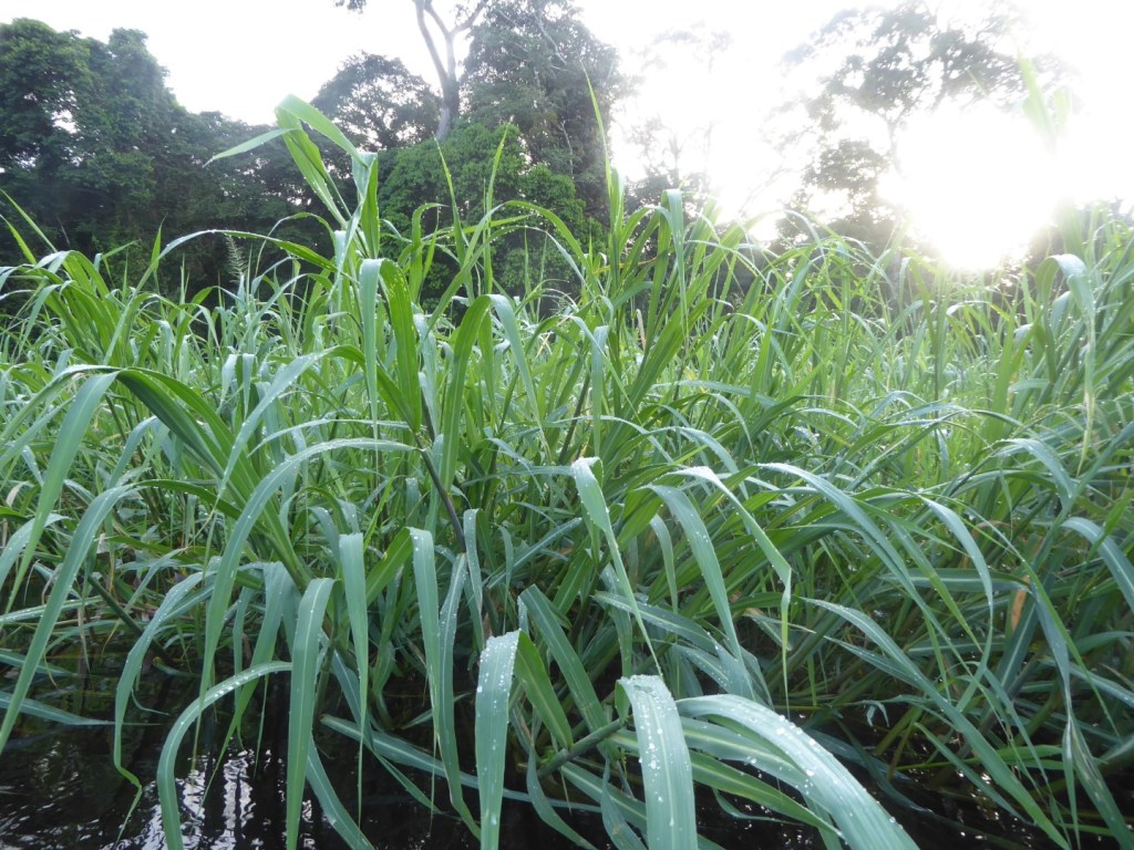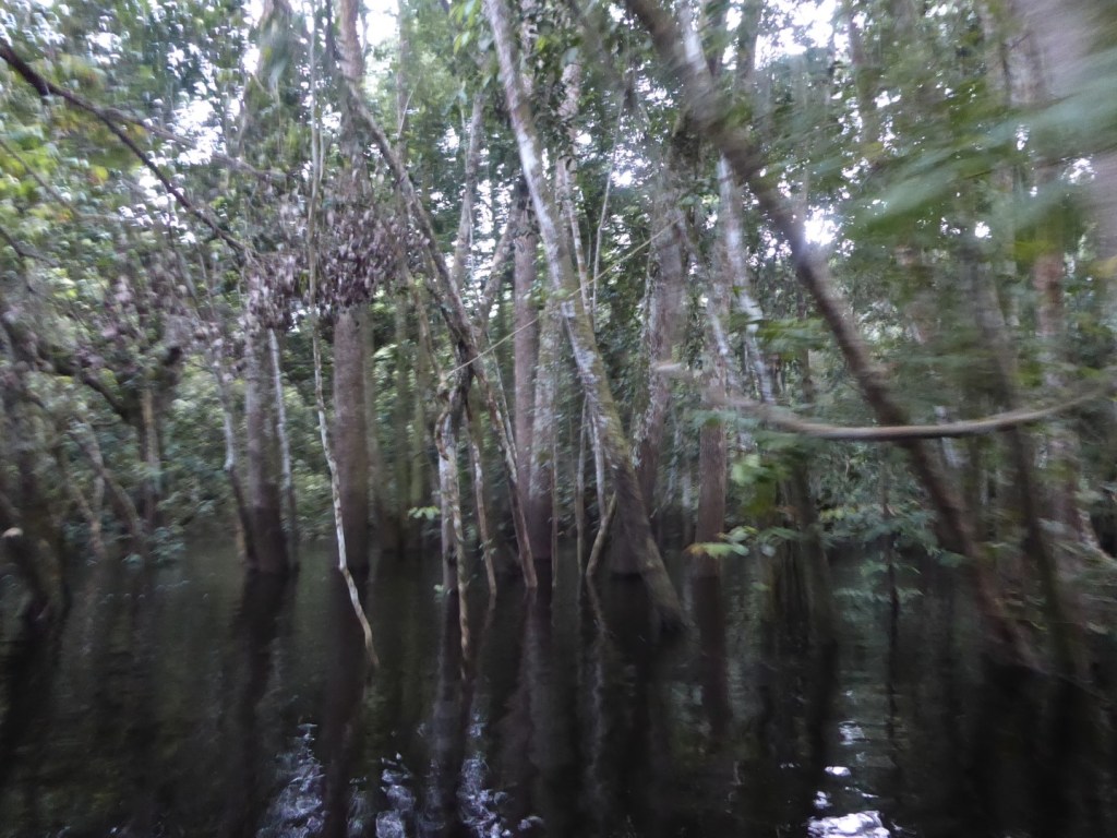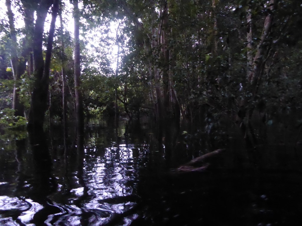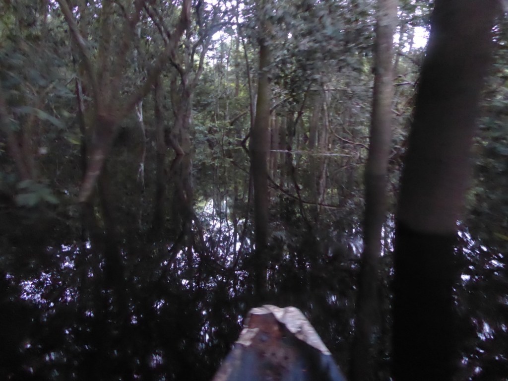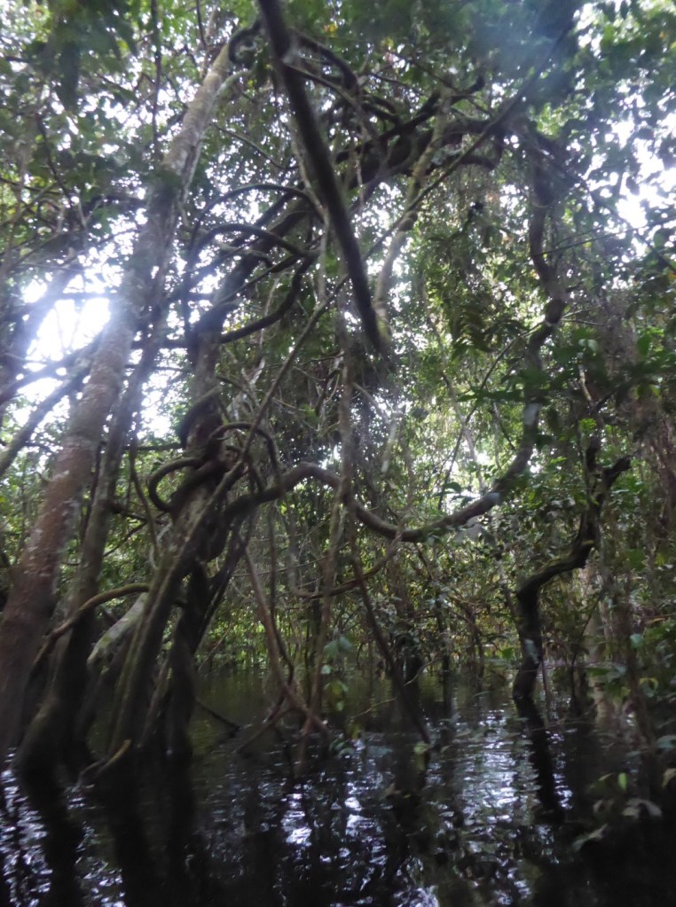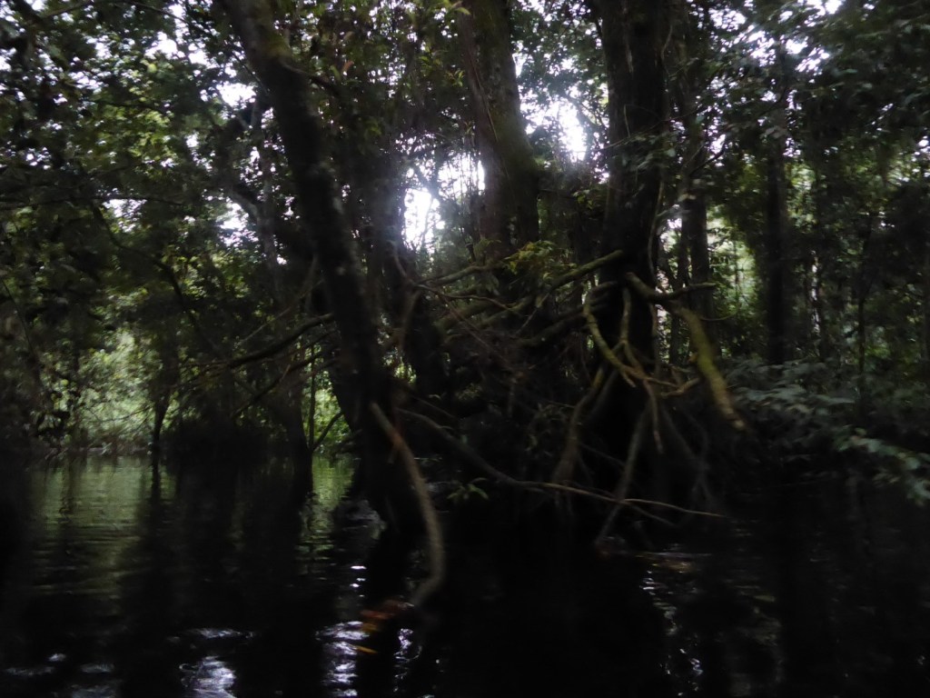 Het mangrovebos, waar je op sommige plaatsen onder de wortels van de bomen door vaart
