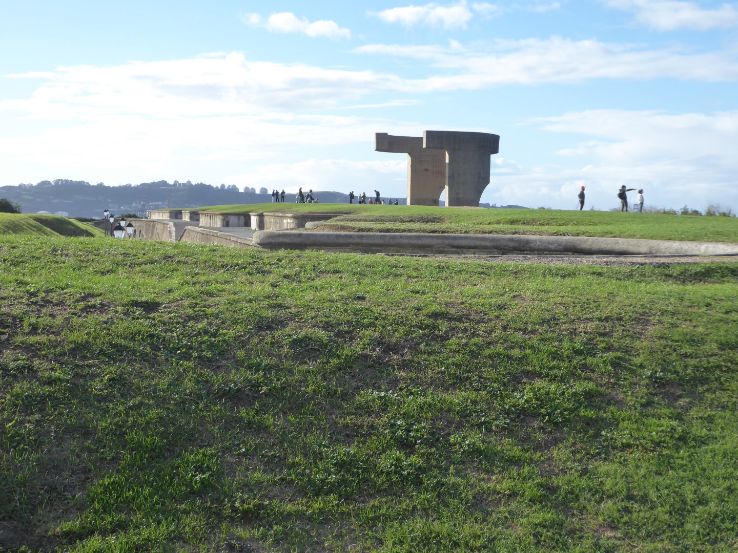 “Elogio del Horizonte” is 10 meter hoog en weegt 500 ton. De betonnen constructie staat op de grens van land en water, bovenop een oud militair verdedigingswerk aan het eind van het Cimavilla schiereiland.