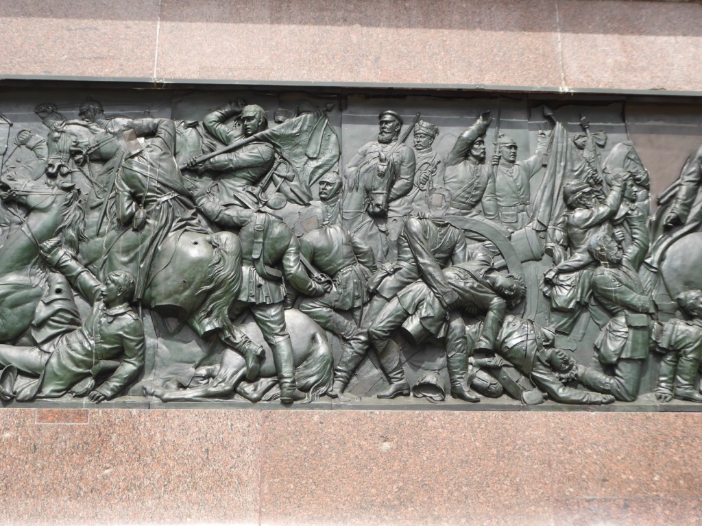 Met niemand anders dan een vergulde Victoria op de top, viert de Overwinningszuil al honderdvijftig jaar lang de Pruisische overwinning op de Denen, Oostenrijkers en Fransen. De Fries rond de sokkel toont de heldhaftige strijd.
