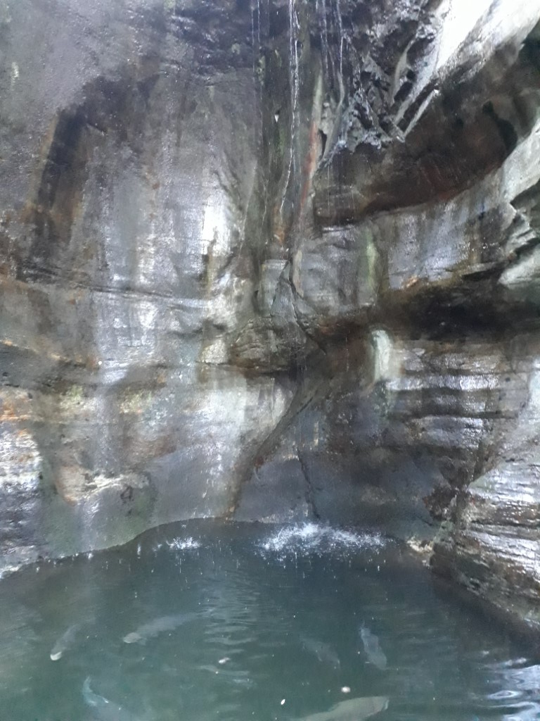 De vijver die nog over is aan de onderkant van de “vaas” dient nu als aquarium voor zalmen, die uiteindelijk in een nabijgelegen restaurant op de borden belanden.