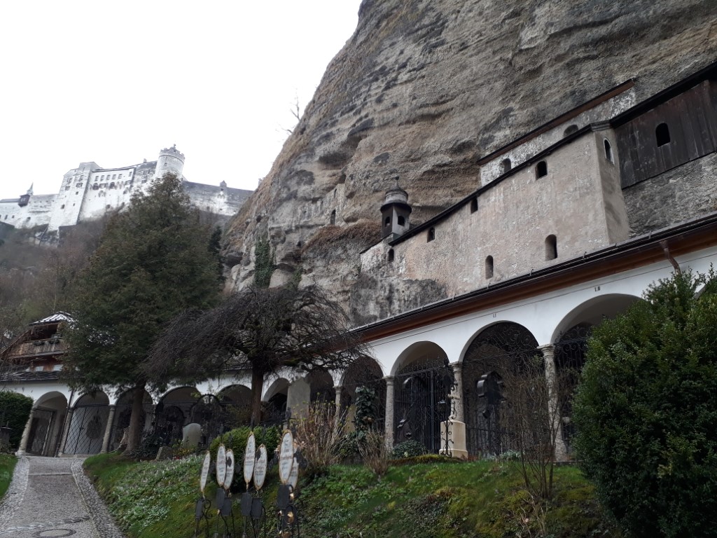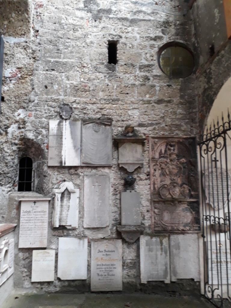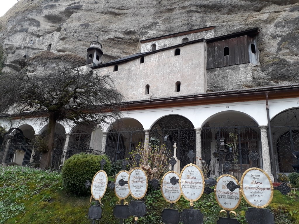 Salzburg’s catacomben, niet ondergronds maar uitgehakt uit de Mönchberg, maken onderdeel uit van de begraafplaats van het Sint Peterskerkhof. Waarschijnlijk dateren de mausolea al uit de vroeg-christelijke periode, hoewel de twee kapelletjes, mausolea uit de middeleeuwen zijn. Bij de monument in de entree, zijn onder andere Haydn en zijn vrouw begraven.