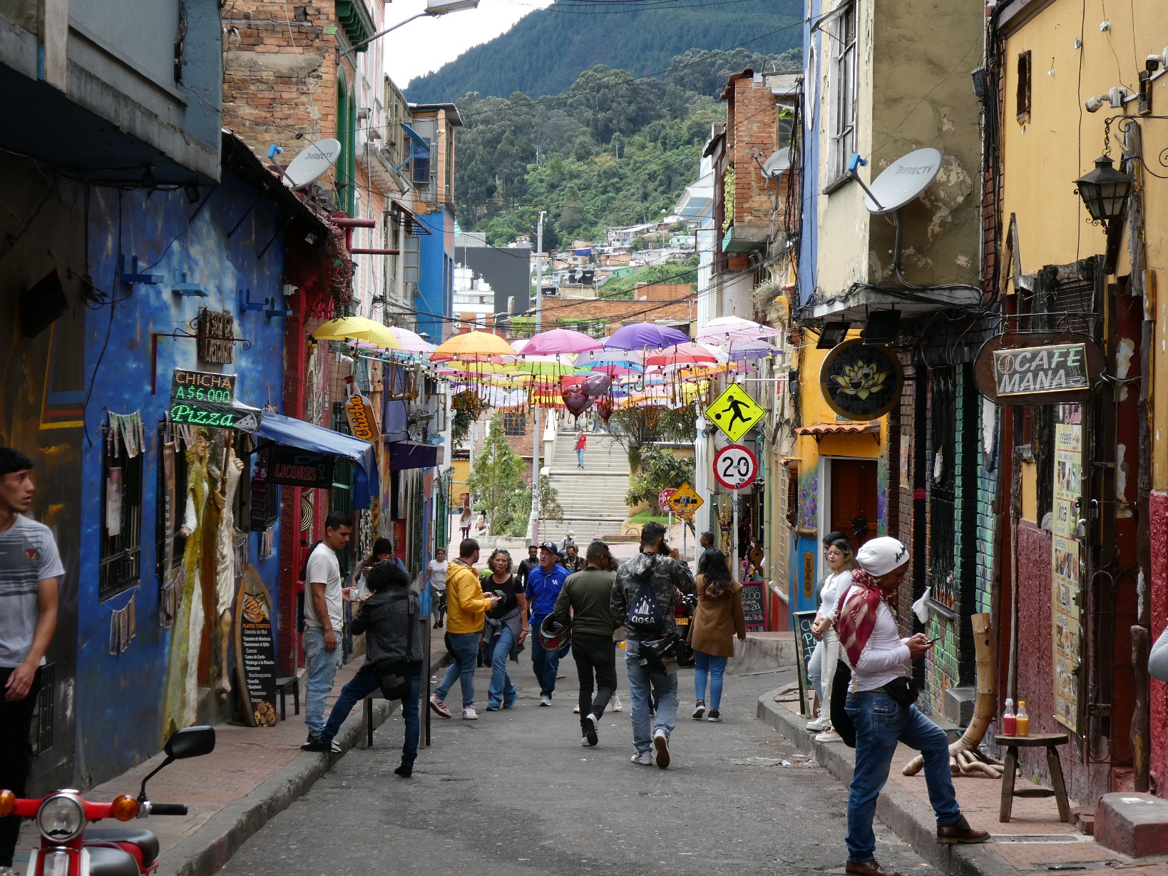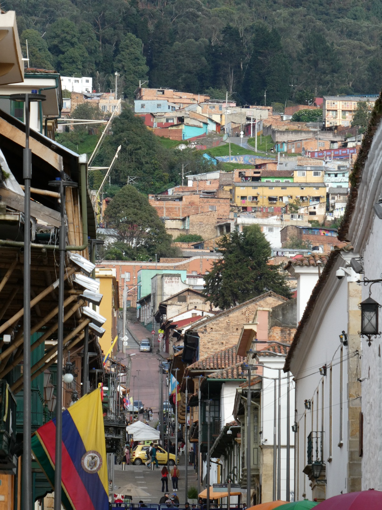La Candelaria is het oude centrum van Bogota. Op een charmante manier vervallen, inmddels weer helemaal in opkomst en nog steeds een ontzettend kleurrijke wijk.