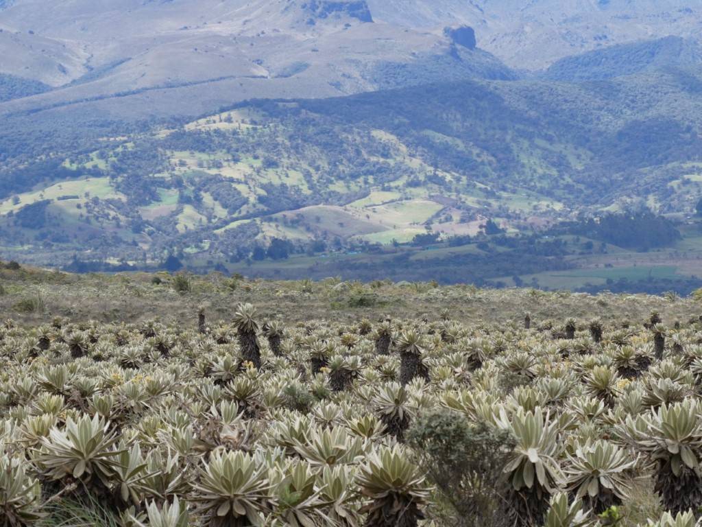 De Frailejones (“grote monniken”), officieel Espeletia genoemd, is een bijzondere plant die alleen voorkomt in de Andes. De plant haalt water uit de lucht, en slaat dat op in zijn dikke stam, waarvandaan het vervolgens wordt afgegeven aan de grond. Daarmee levert het een belangrijke bijdrage aan de beschikbaarheid van schoon water voor andere planten en dieren. Deze vallei staat er vol mee, maar door de oprukkende landbouw wordt de soort steeds zeldzamer.
