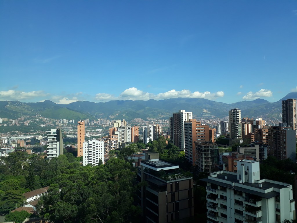 De 2,5 miljoen inwoners van Medellin leven op of tussen de heuvels in een stad waar het eeuwig lente is. Lekker zonnig, door de hoogte niet te warm (overdag bijna het gehele jaar tussen de 20 en 25 graden).