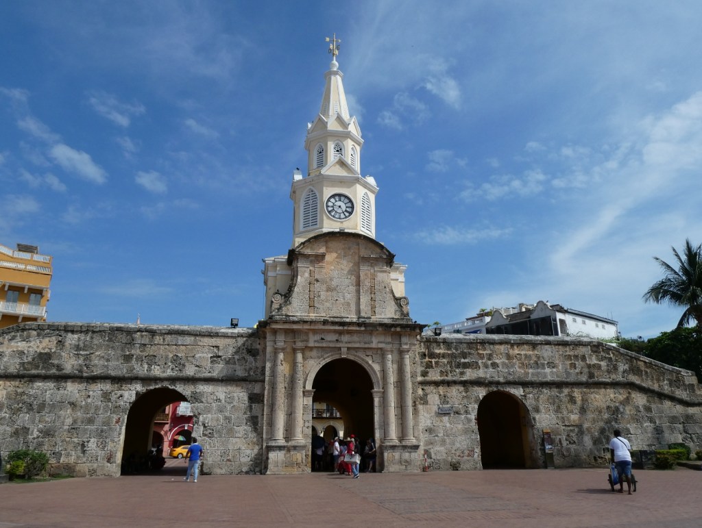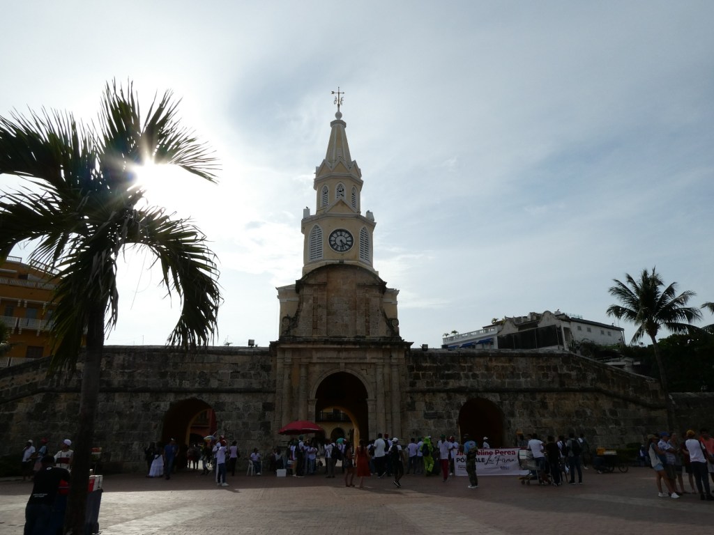 De toeganspoort naar de ommuurde oude stad van Cartagena is de Torre del Reloj, de klokkentoren en dateert uit 1704. Ook voor die tijd stond er hier al een poort, eerst een houten, later een stenen, maar die werden verwoest zodat een nieuwe versie nodig was. Deze poort, in een bijzondere Spaans-militaire stijl, sloot de ommuring van de oude stad.