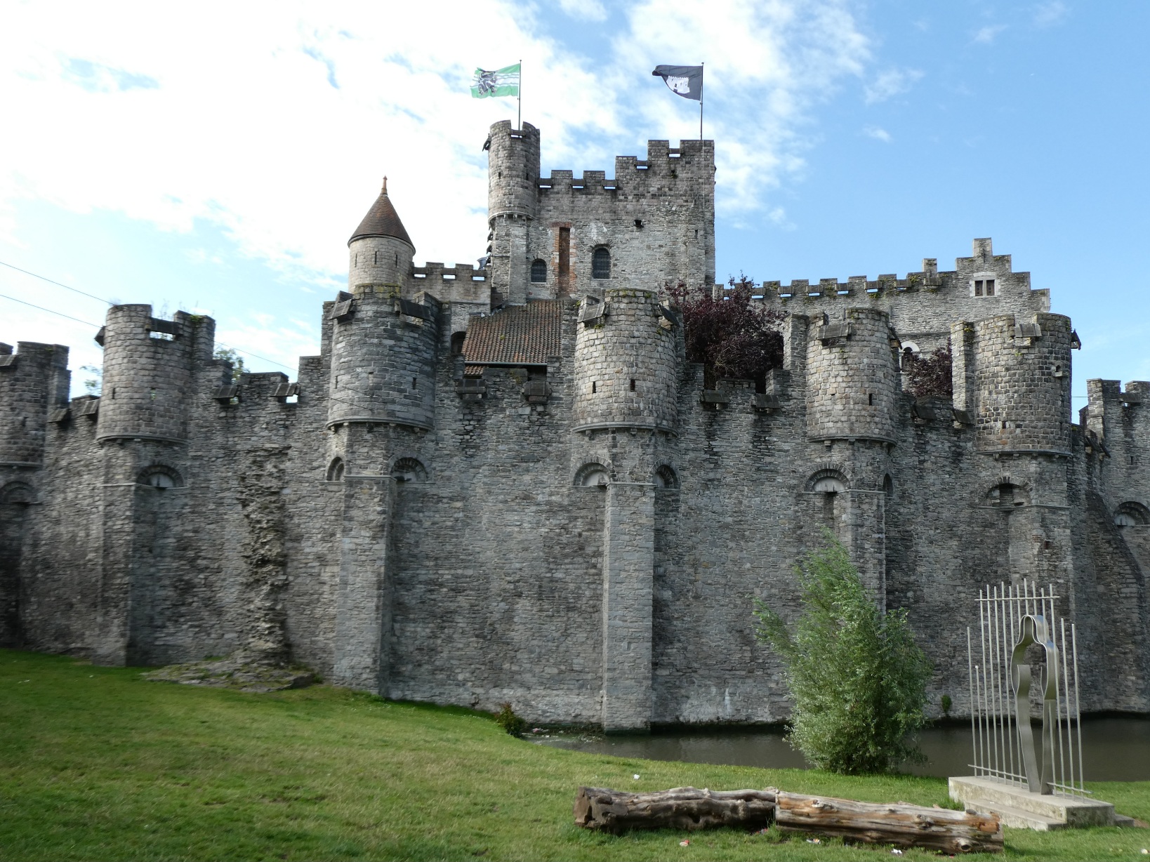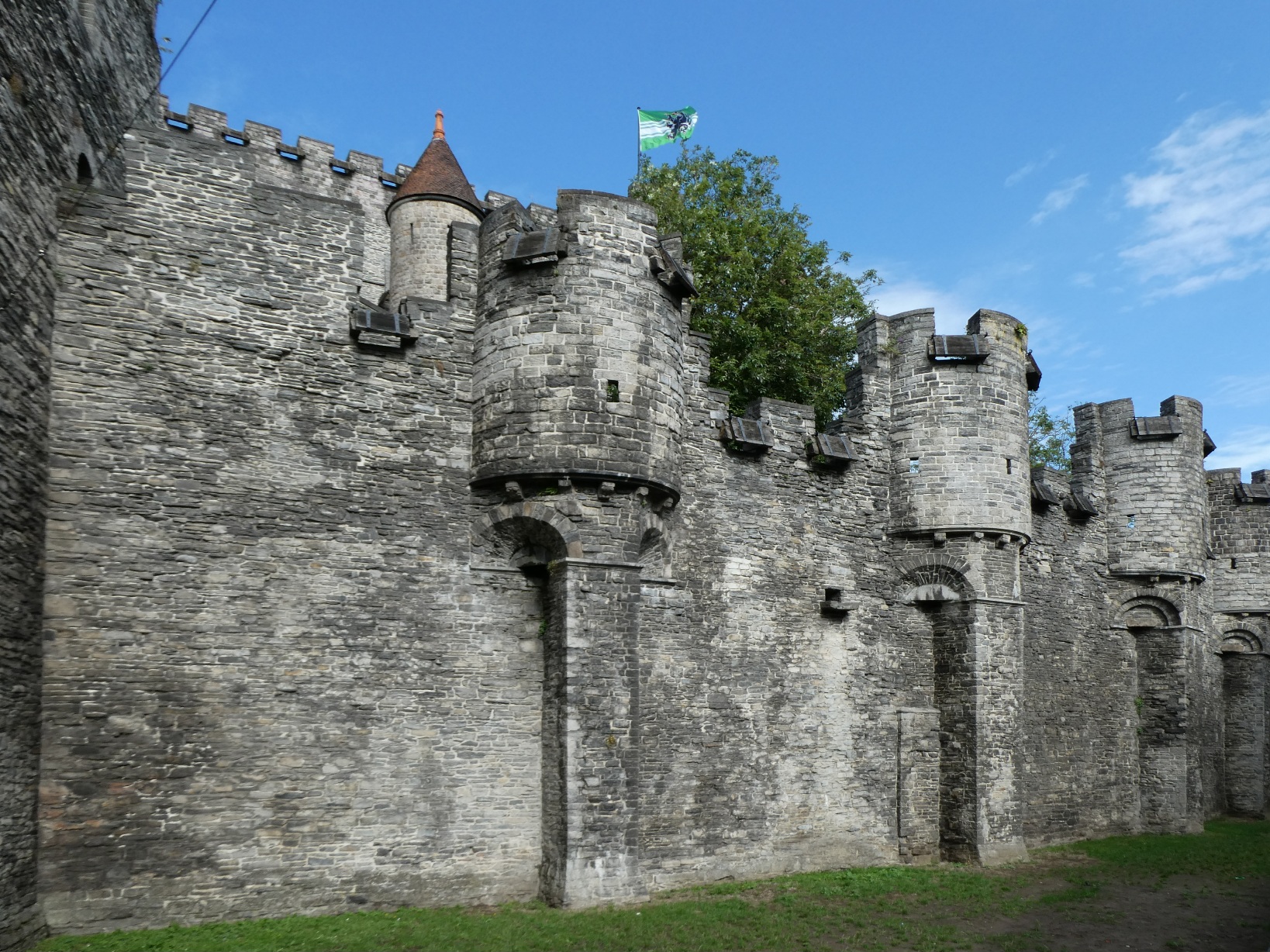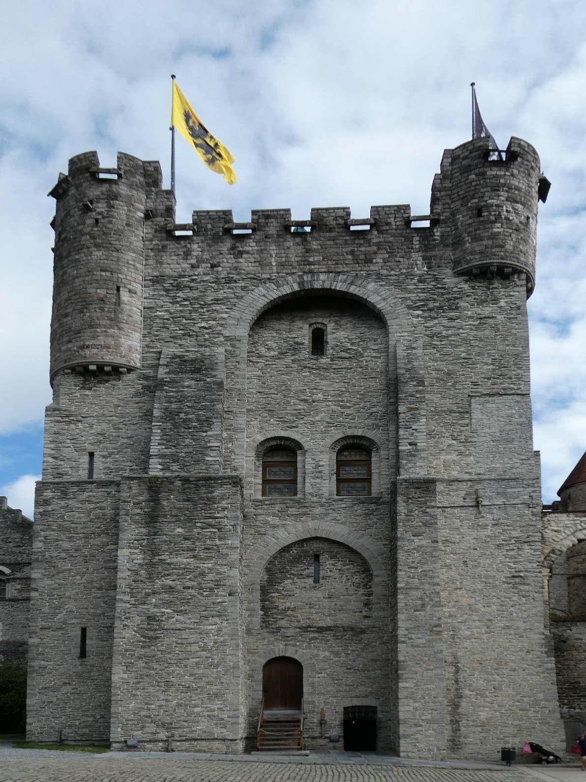 De oorspronkelijke houten versie van het kasteel dateert uit de 9e eeuw, maar werd in de 11e eeuw vervangen door een gebouw van, ook toen al, dure natuursteen door de rijke en belangrijke graven van Vlaanderen. Toen de Gentse burgers, rijk geworden door de wolhandel, ook stenen huizen gingen bouwen, werd deze imposante burcht gebouwd. Je moest tenslotte wel laten zien wie de rijkste en de machtigste is.