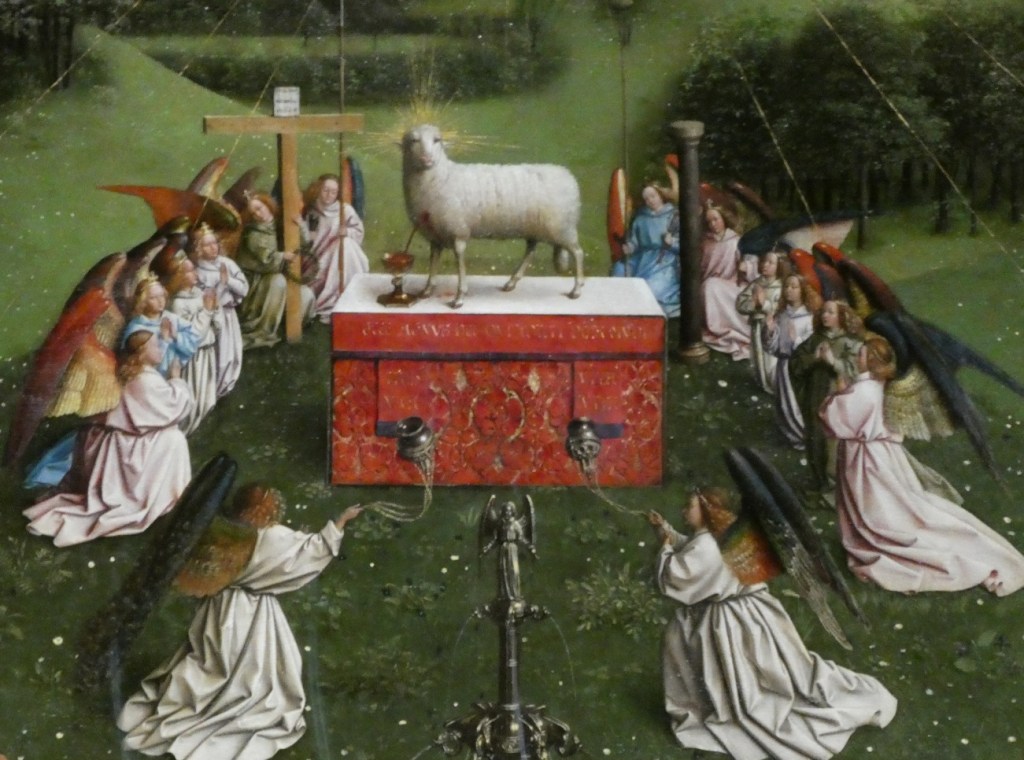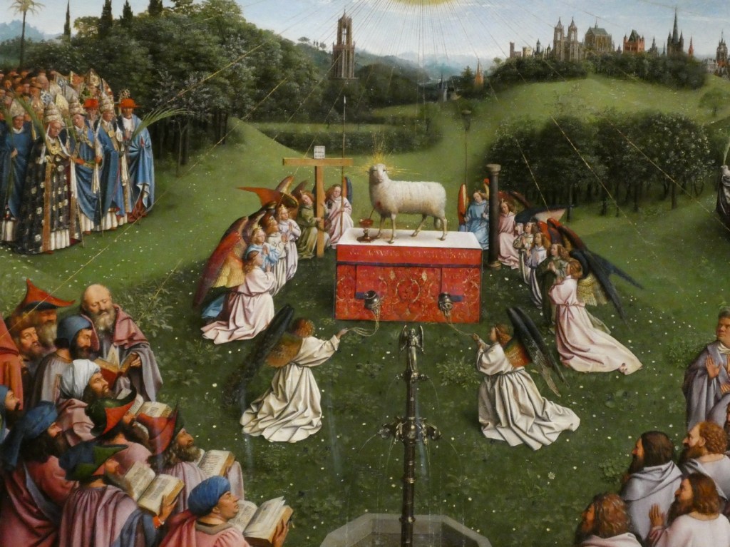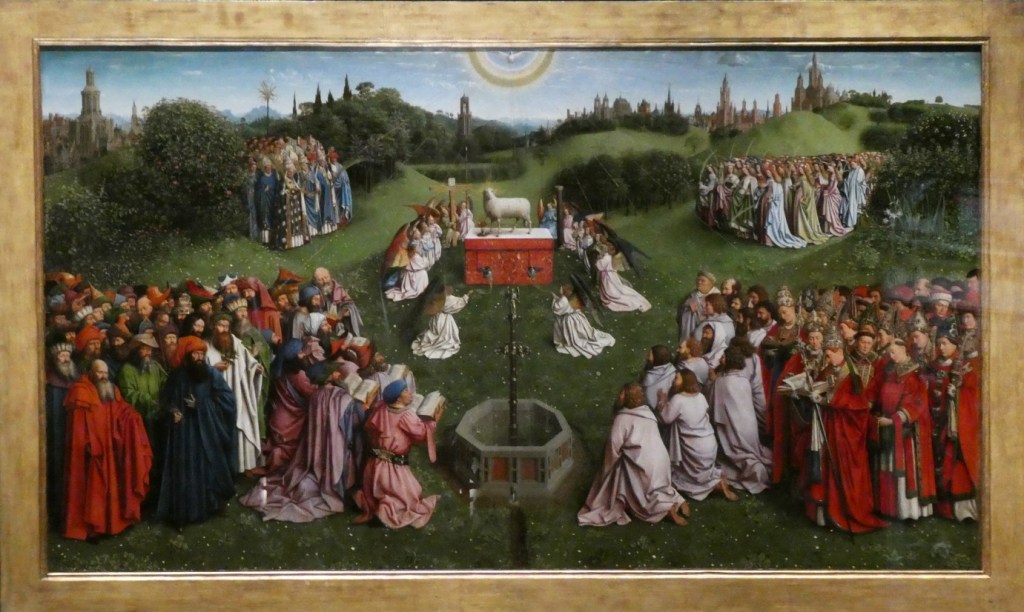 Het Lam Gods is een altaarstuk, een veelluik, geschilderd door de broers Hubrecht en Jan van Eyck, in opdracht van Joos Vijd en zijn vrouw Elisabeth Borluut, die het ophingen in hun speciaal daarvoor geboude kapel in de Sint Baafskathedraal, nog altijd de Vijdkapel genoemd. Hubrecht is met het werk begonnen, Jan heeft het na zijn dood afgemaakt, we weten nu nog niet precies wie wat gemaakt heeft. De broers zitten nu naast de Sint Baafskathedraal, met een schare bewonderaars.