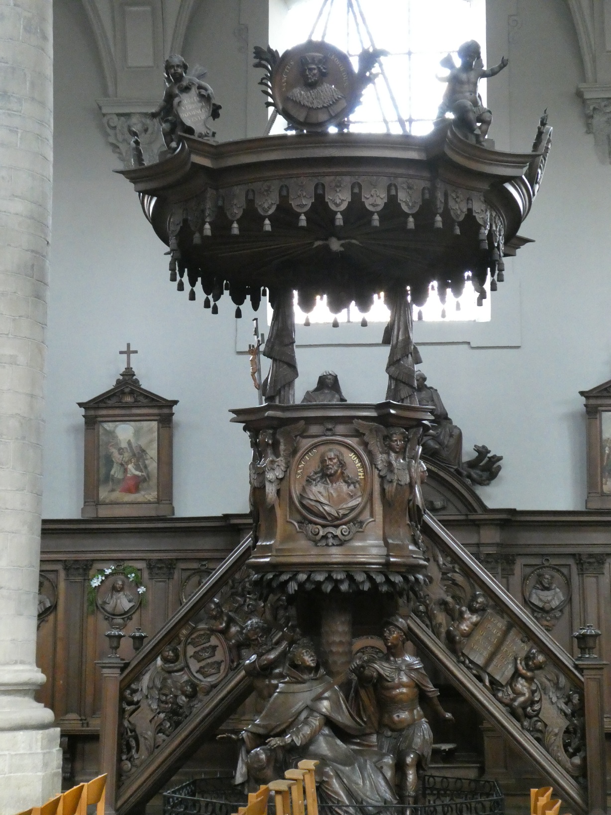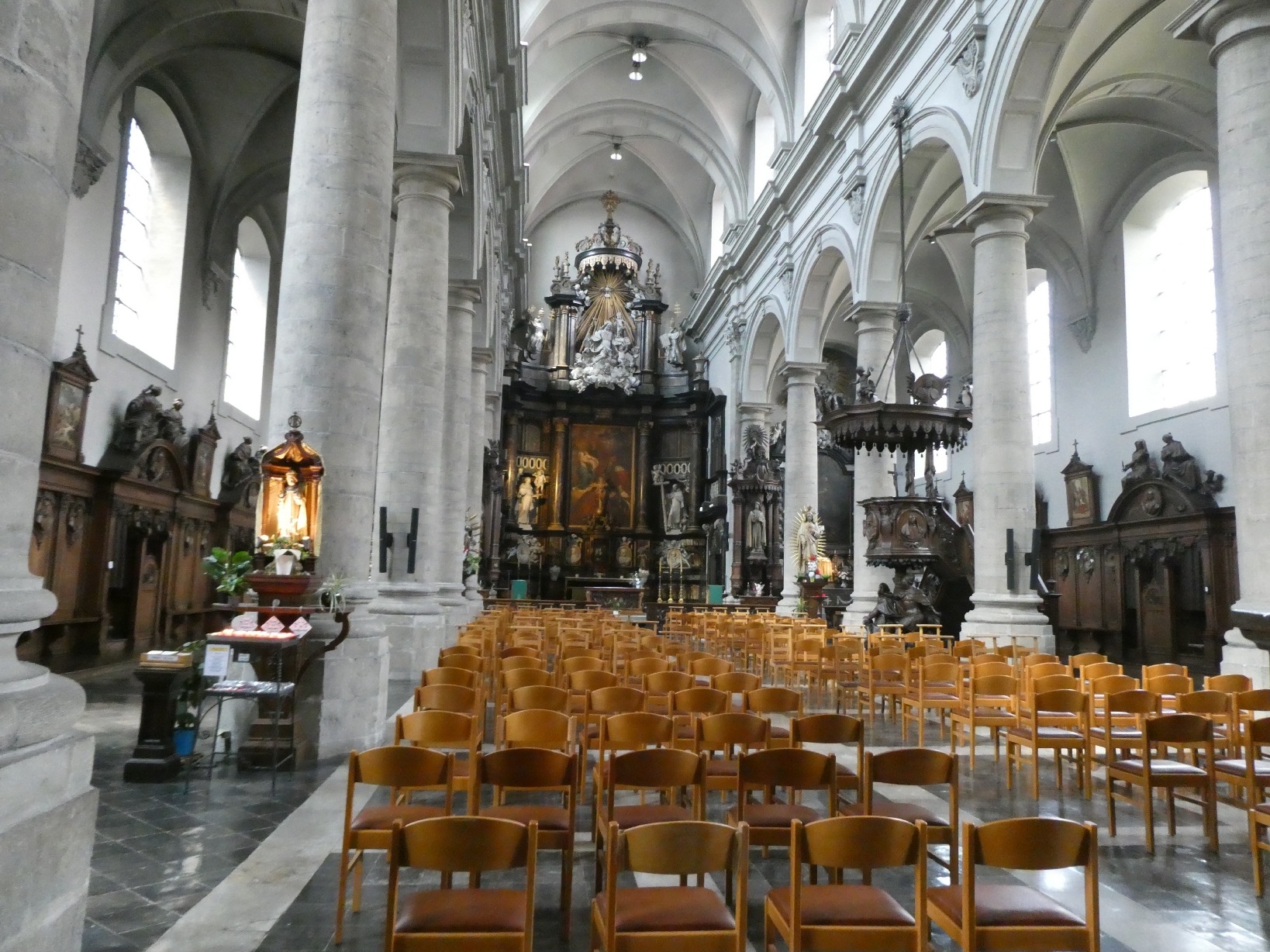 Veel kleiner dan de Sint Baafskathedraal en de Sint Niklaaskerk, maar binnen net zo uitbundig door de barokke versiering is de Karmelietenkerk.