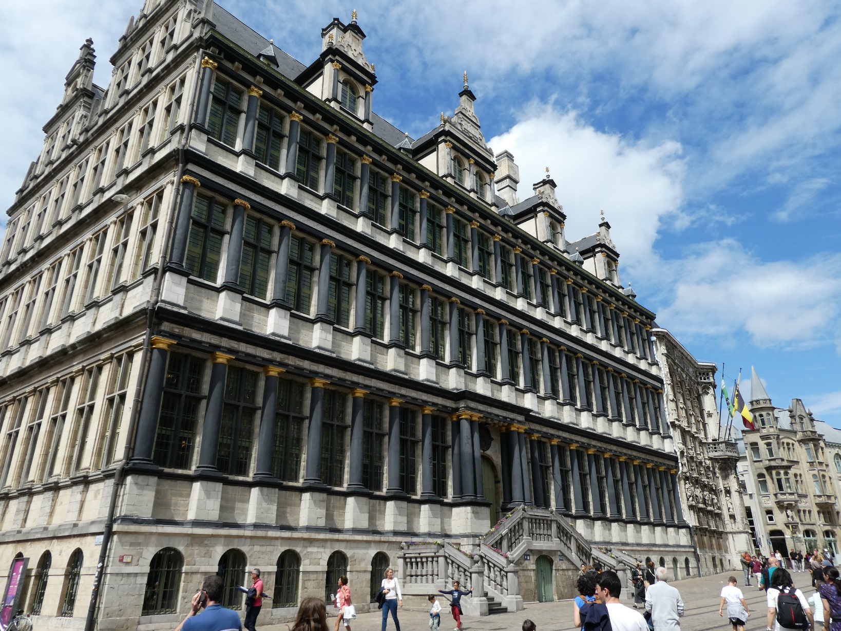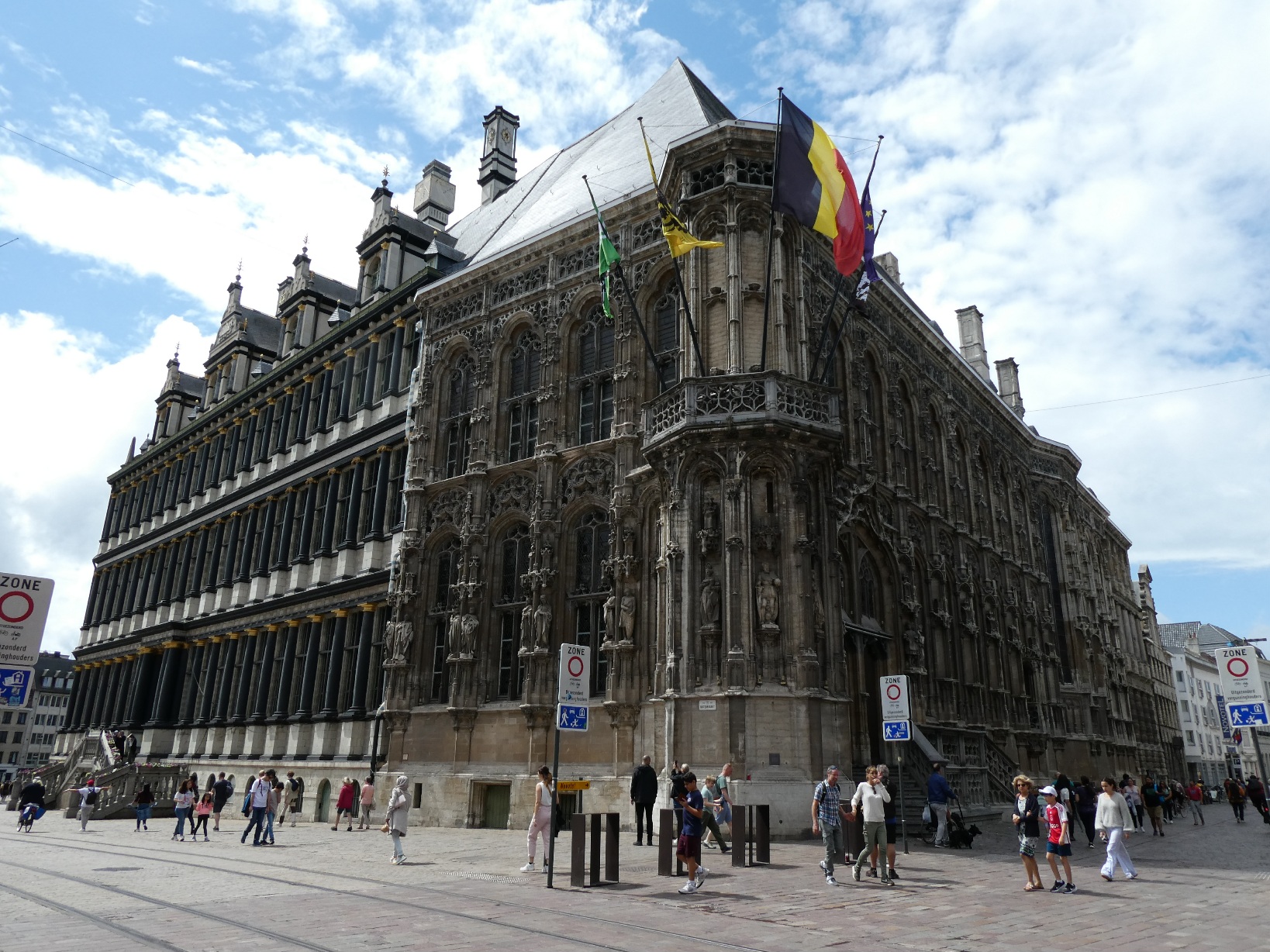 Het Gentse stadhuis is een enigszins bizar gebouw doordat het uit twee heel verschillende delen bestaat. Het ene deel dateert uit het begin van de 16e eeuw en is gebouwd in een rijk versierde laatgotische stijl. Het andere deel, in de veel strakkere renaissancestijl, is slechts een halve tot een hele eeuw jonger. De Vlaamse graven in de nissen zijn een 20e eeuwse toevoeging.