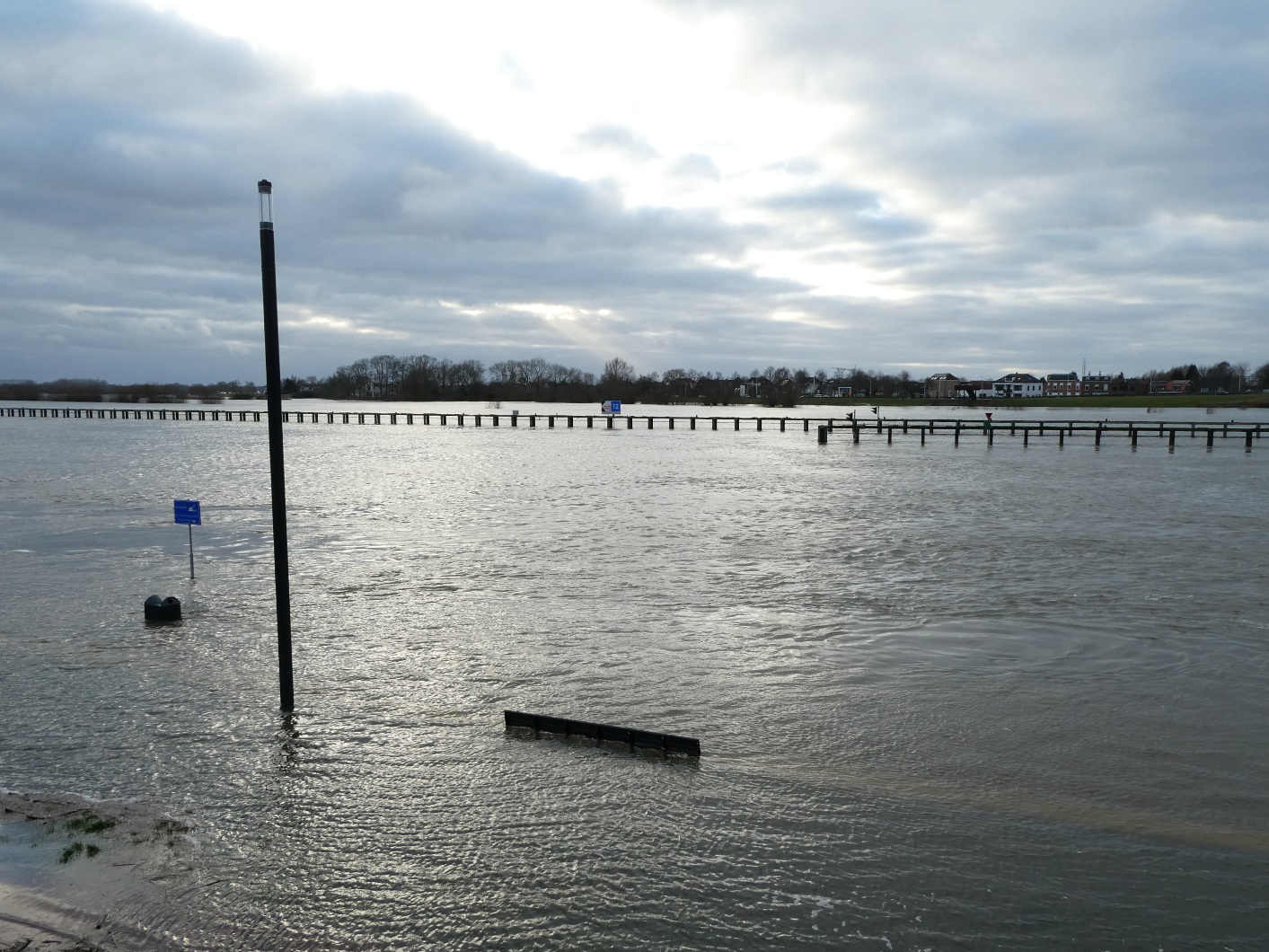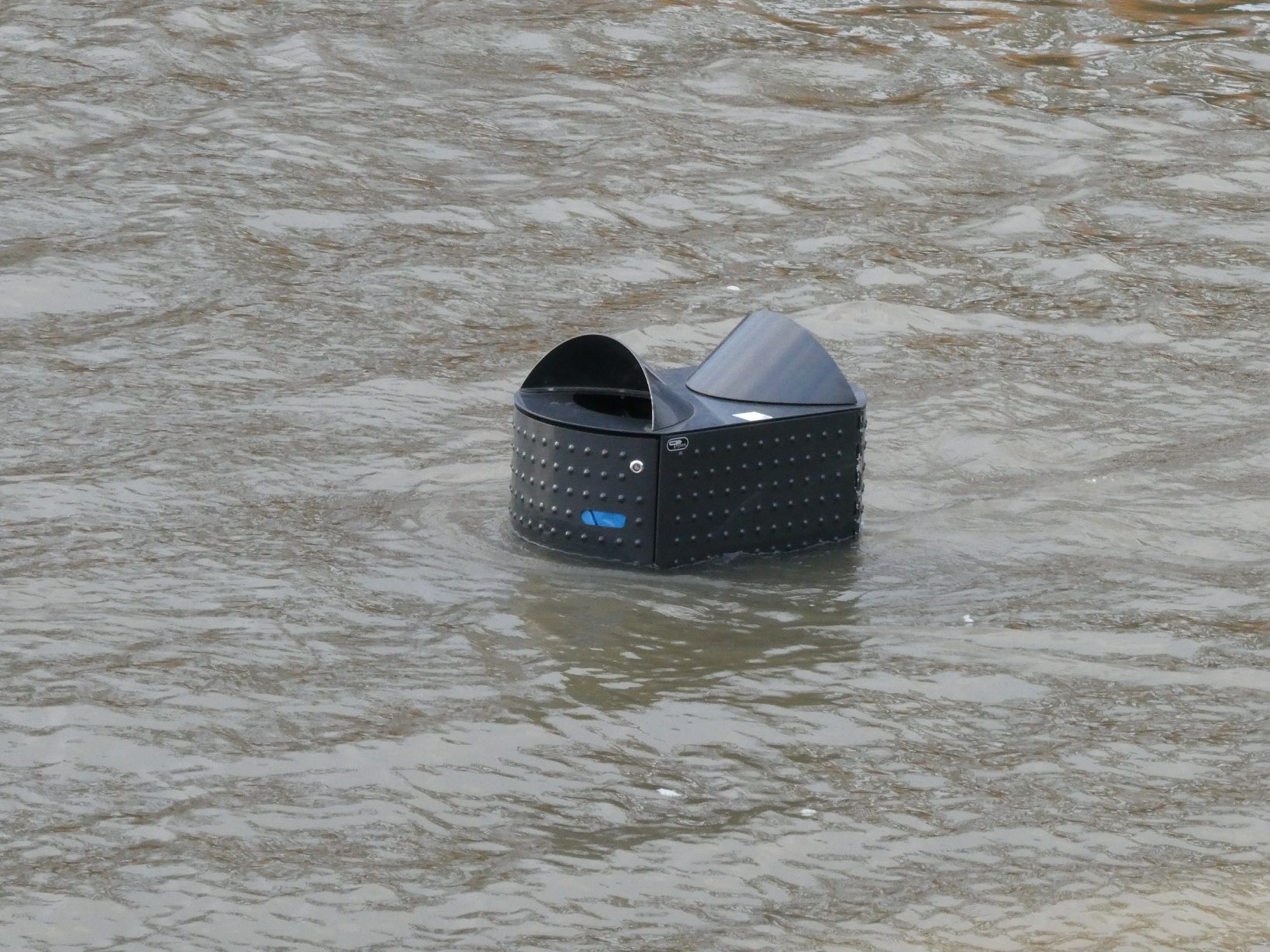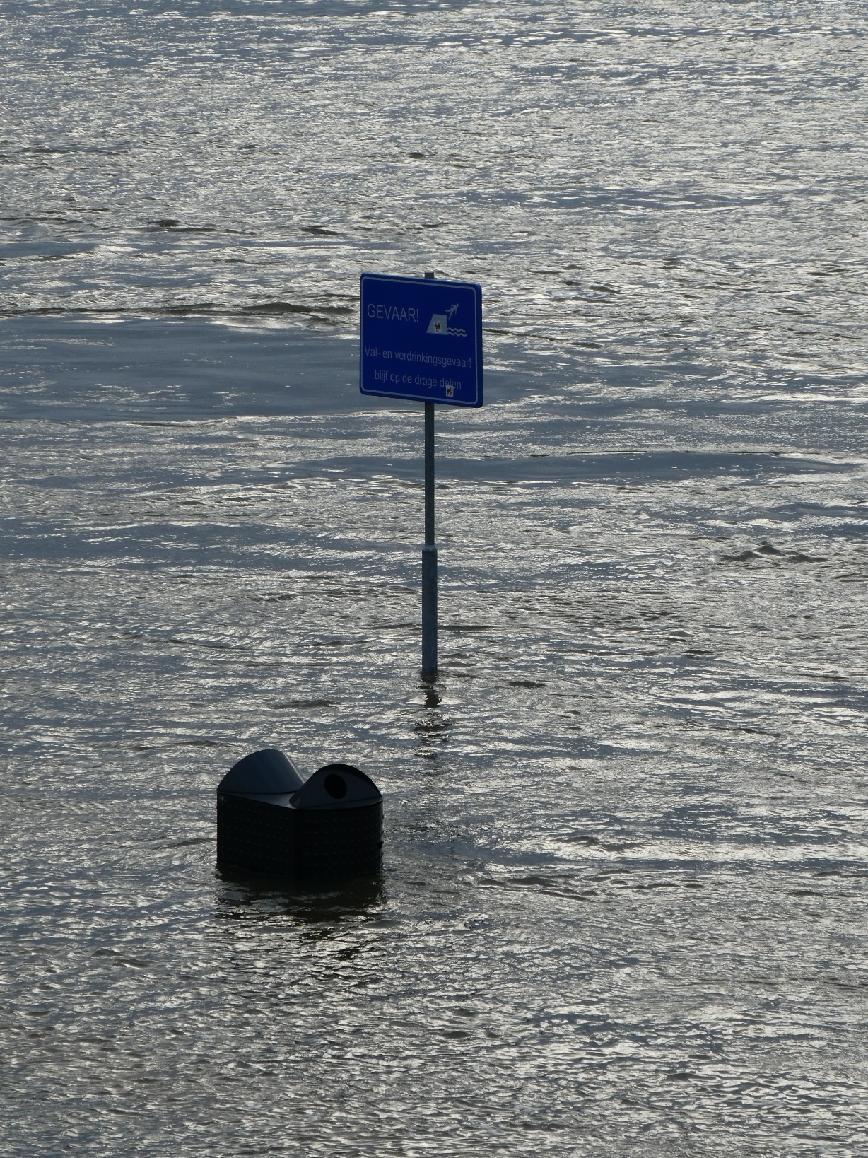 Bankjes, verkeersborden en prullenbakken, alles verdwijnt onder water als het peil hoog genoeg komt.