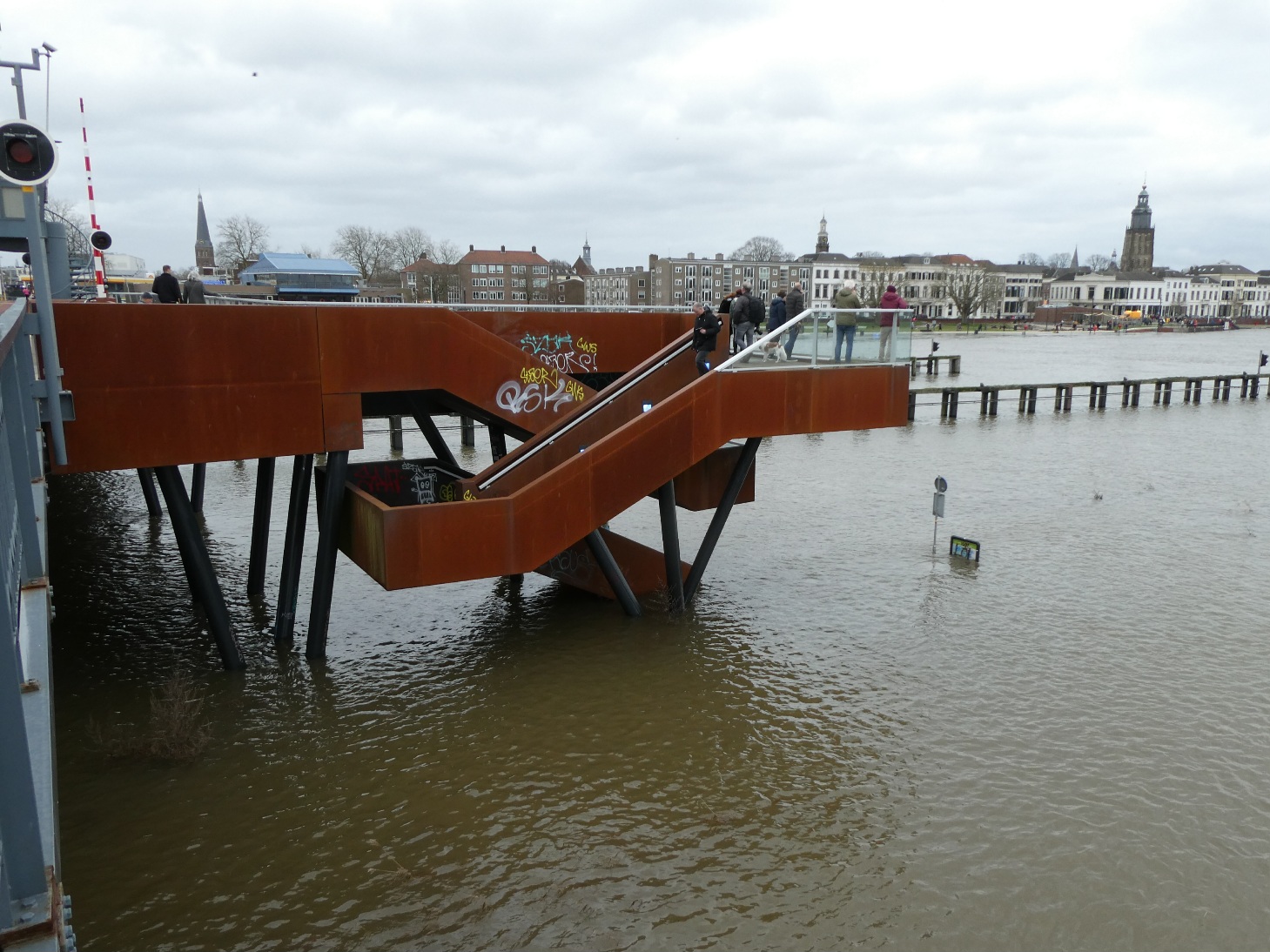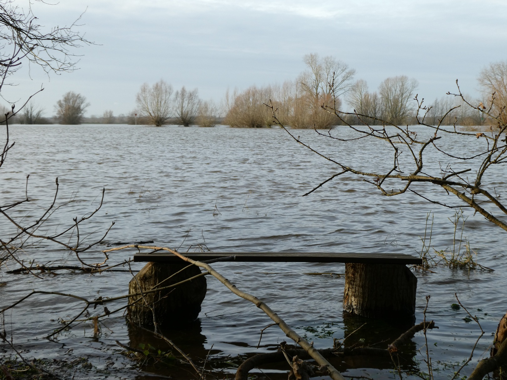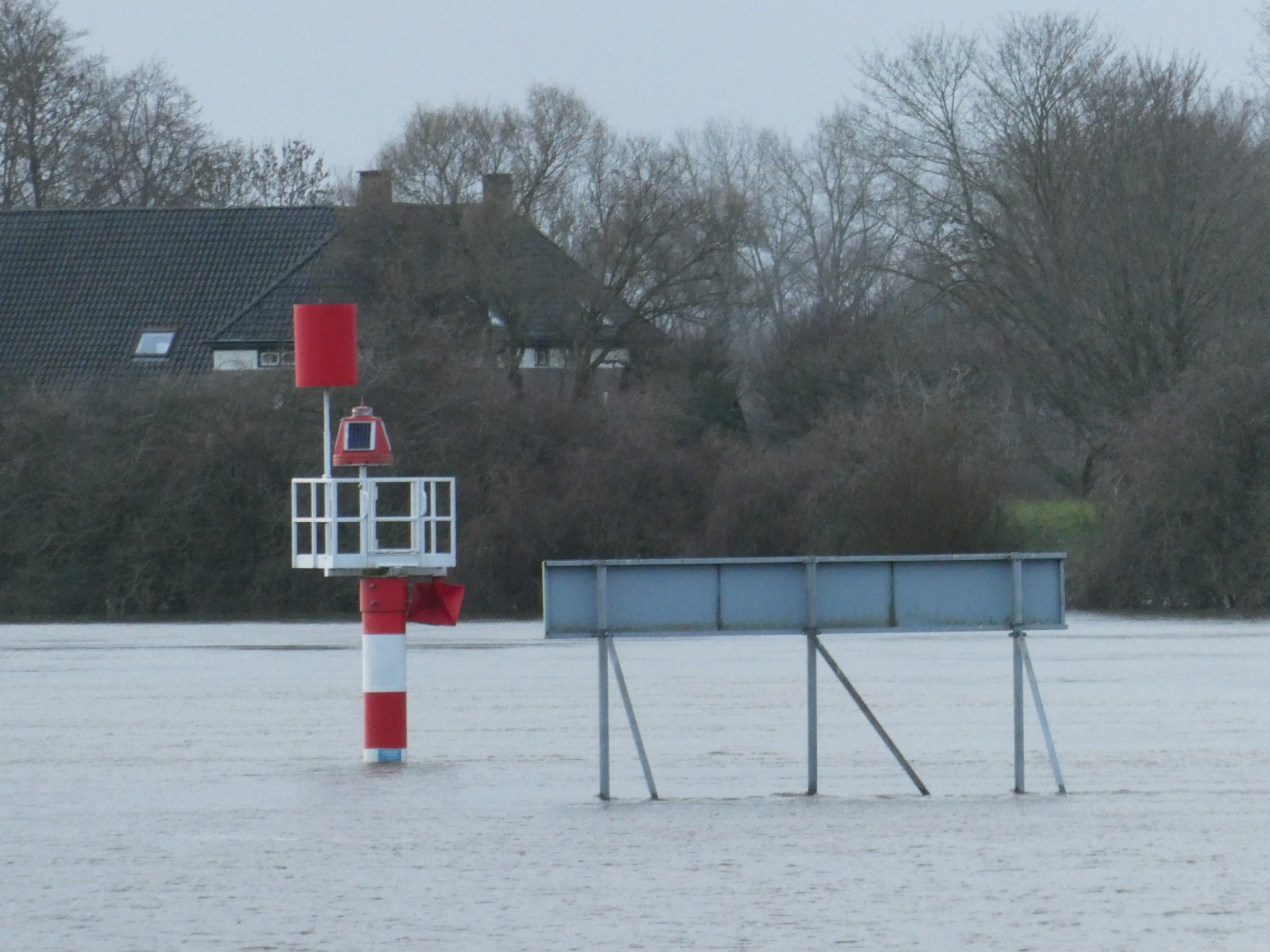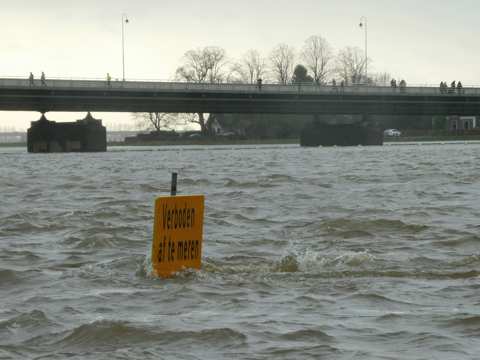 Bankjes, verkeersborden en prullenbakken, alles verdwijnt onder water als het peil hoog genoeg komt.
