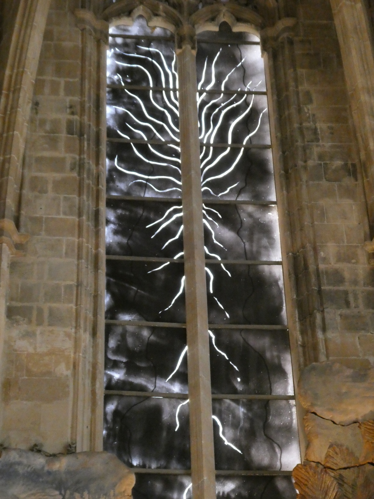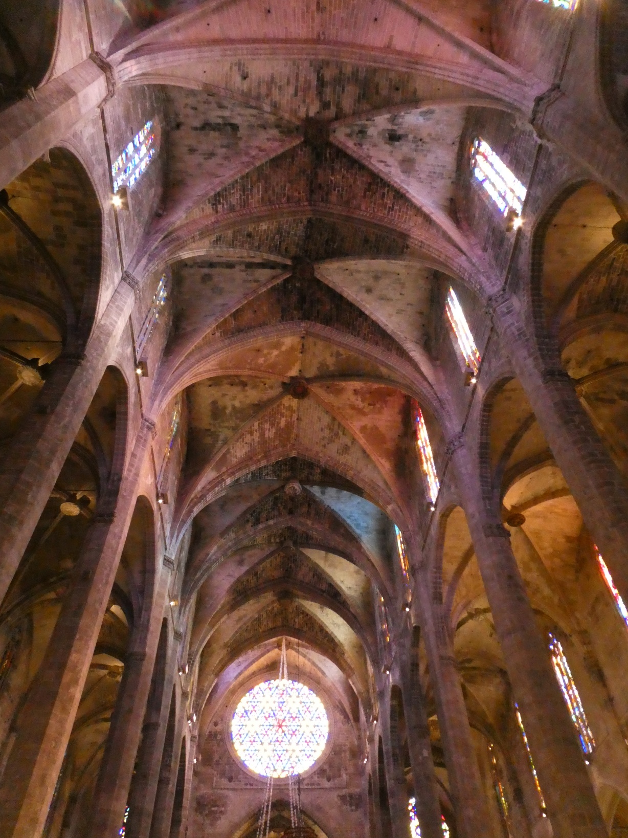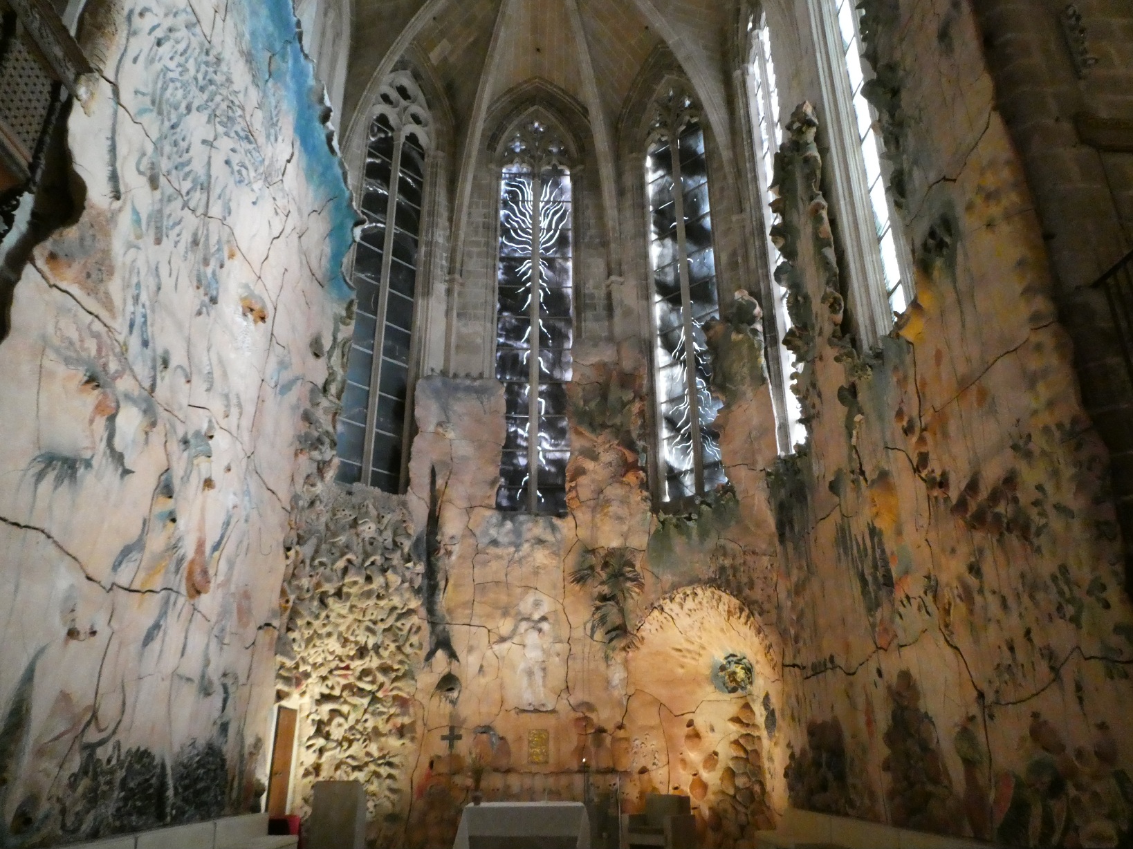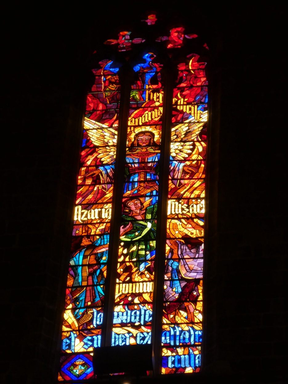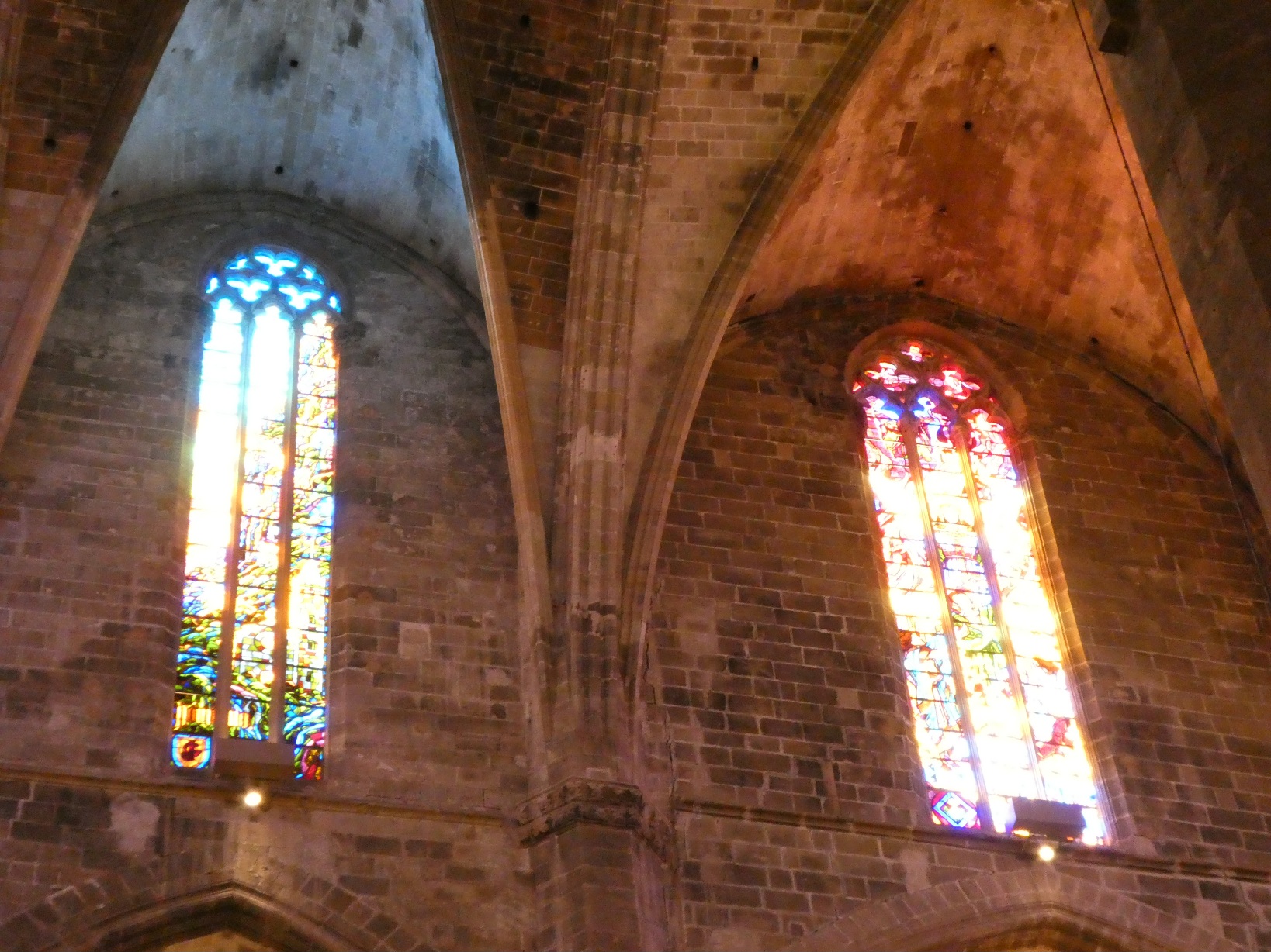 De absolute blikvanger in de kathedraal zijn de gebrandschilderde ramen, die een kleurrijk licht werpen door de kerk en in het bijzonder op het plafond.