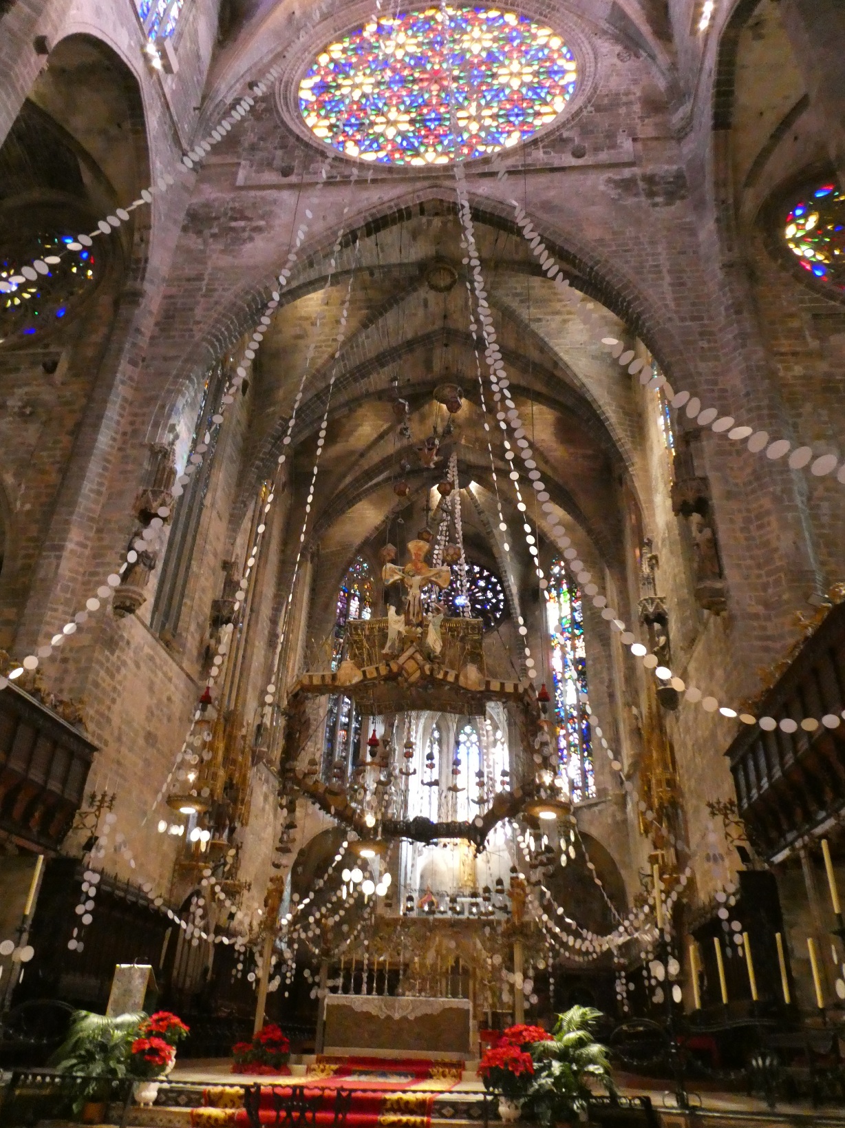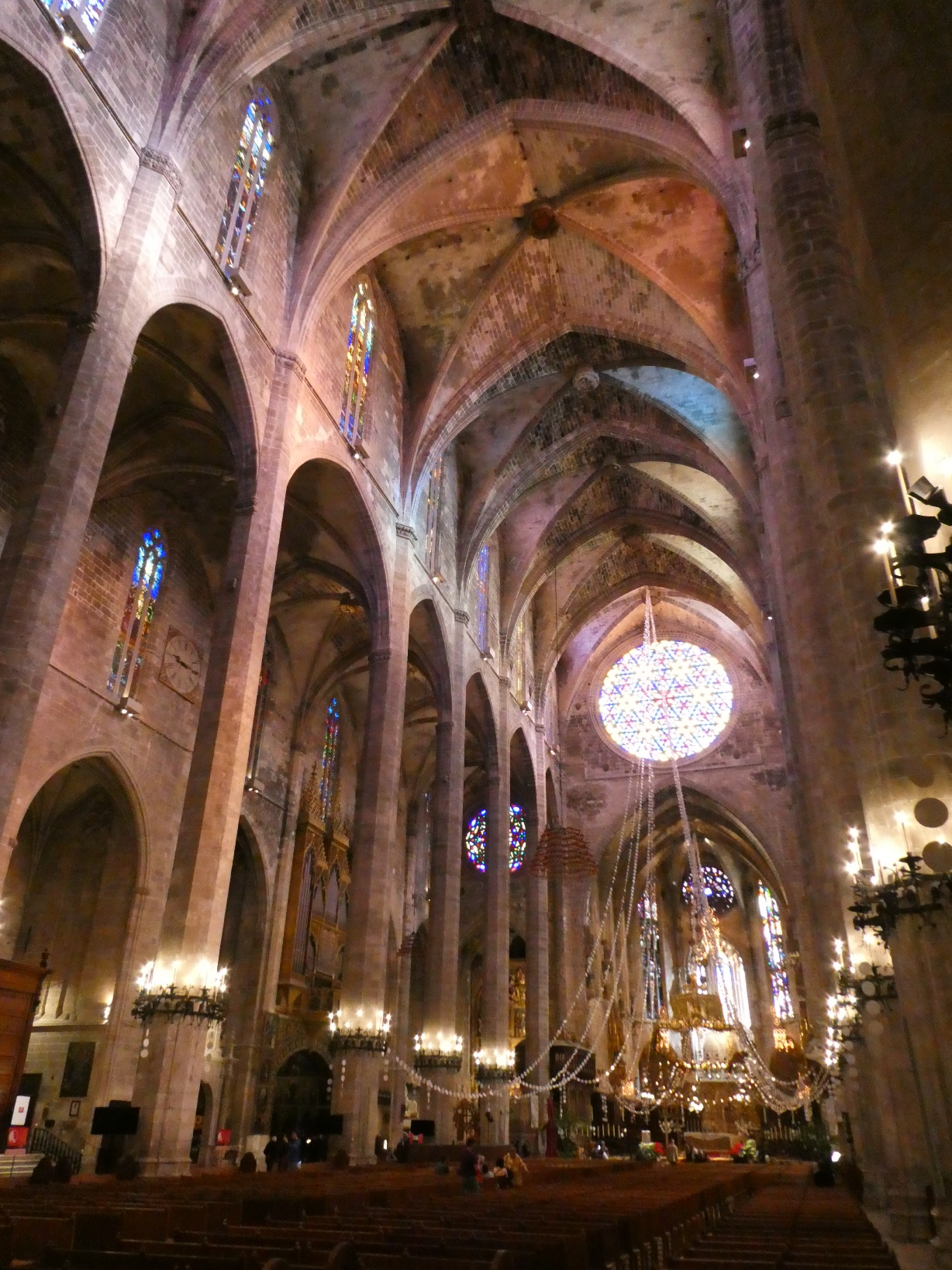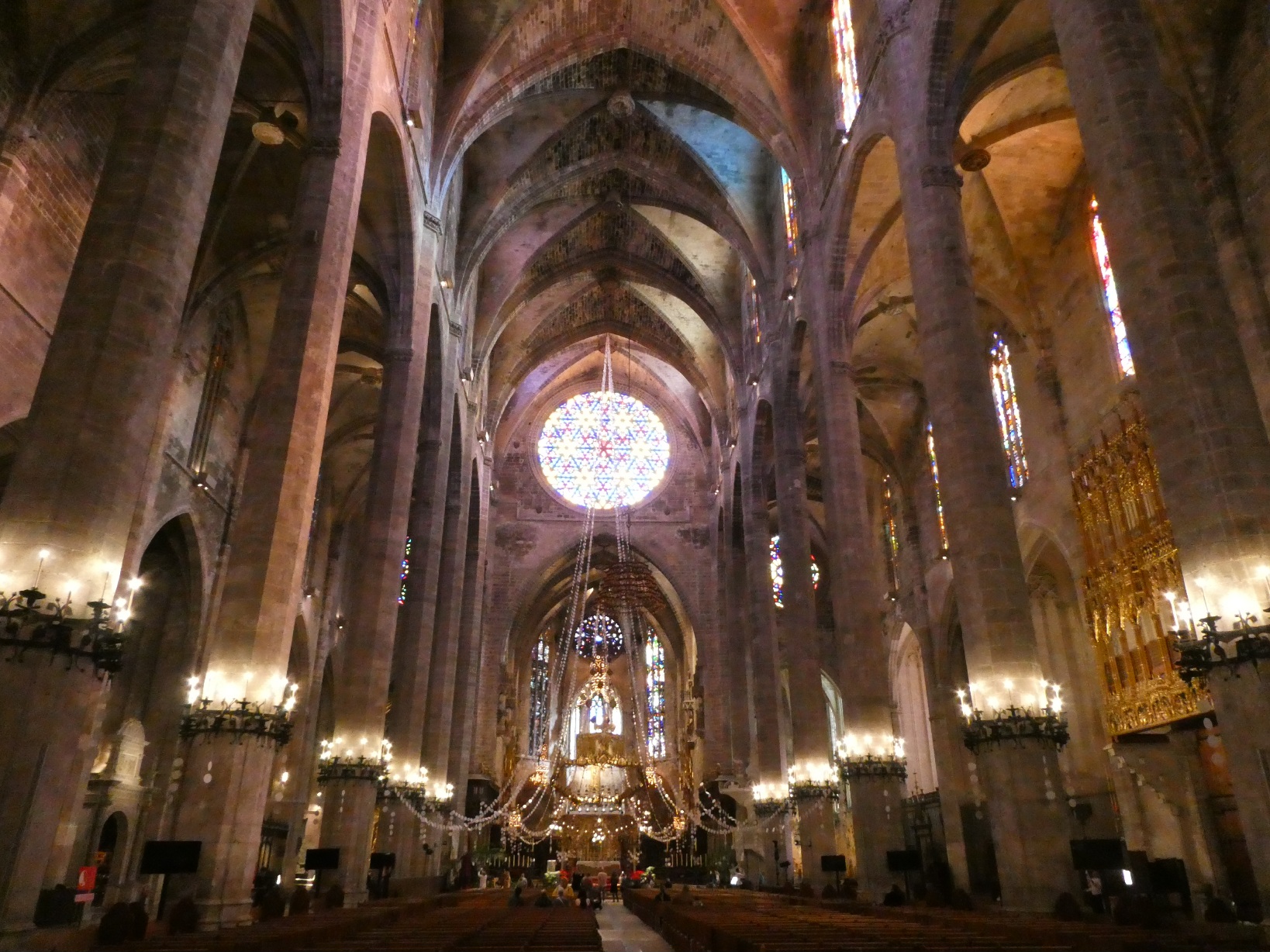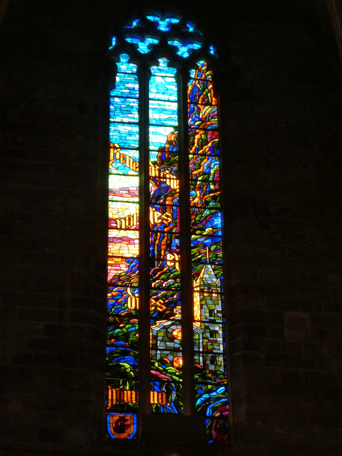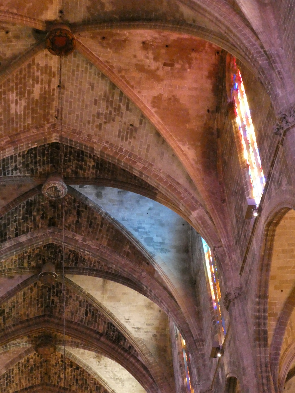 De absolute blikvanger in de kathedraal zijn de gebrandschilderde ramen, die een kleurrijk licht werpen door de kerk en in het bijzonder op het plafond.