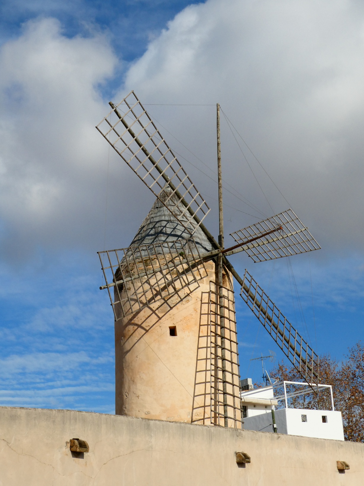 Niet meer in gebruik, maar ooit waren het industriële windmolens, onder andere gebruikt voor de productie van mosterd. Niet zo heel anders dan de Nederlandse molens, al zien ze er anders uit.