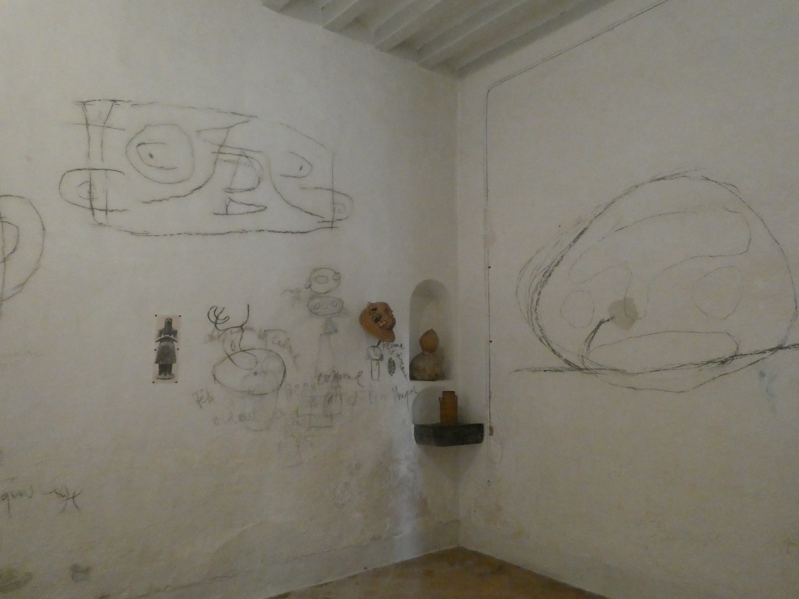In 1959 kocht Miró het naast Taller Sert gelegen oude pand en maakte ook daar een atelier van. Taller Boter (naar een eerdere eigenaar) heeft een heel andere sfeer dan Taller Sert. Miró veranderde niets aan de inrichting, zelfs de oude keuken bleef zitten, maar maakte het wel zijn eigen ruimte door houtskooltekeningen op de muren (vaak voorstudies van latere schilderijen) en verf op de vloeren. Ook hier een verzameling van voorwerpen die op de één of andere manier zijn aandacht trokken. Het uitzicht is wat mij betreft een doorslaggevend argument voor deze locatie.