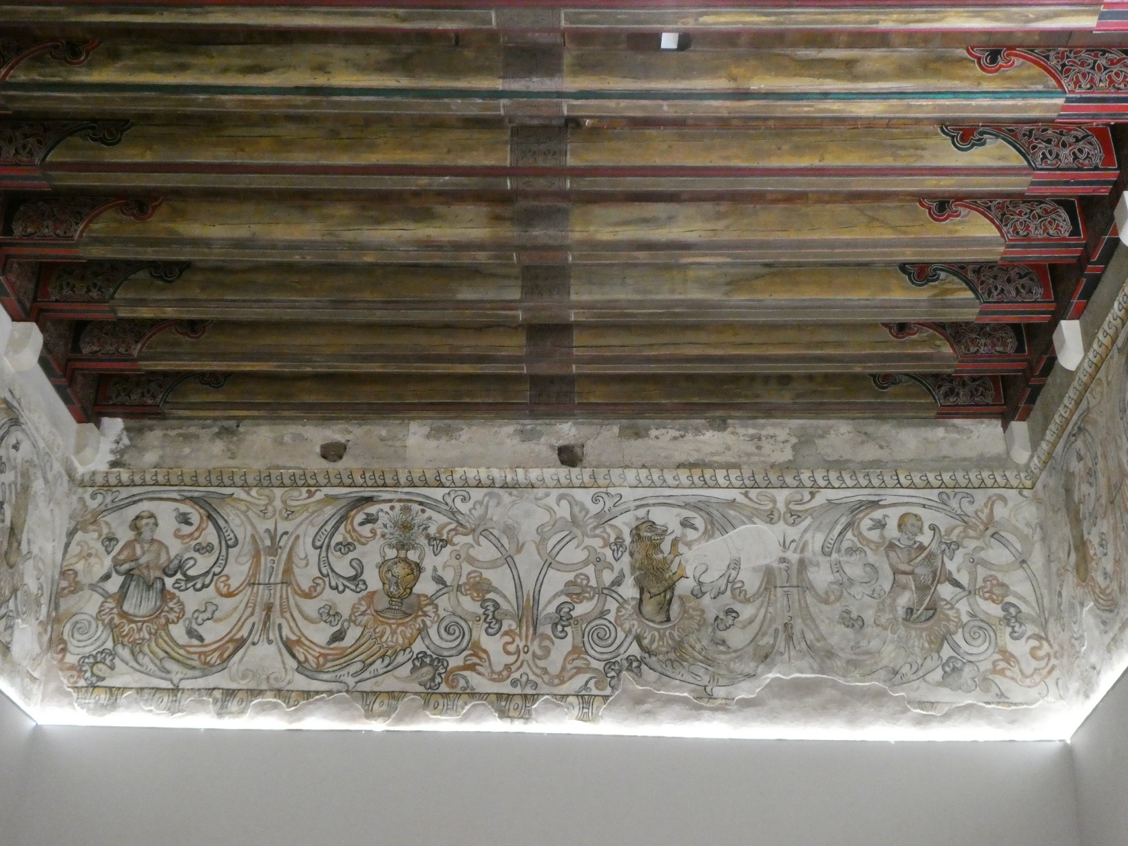 Tijdens de laatste renovatie zijn er mooie originele fresco’s gevonden, en ook, verborgen achter een dikke muur, een wenteltrap naar de toren.