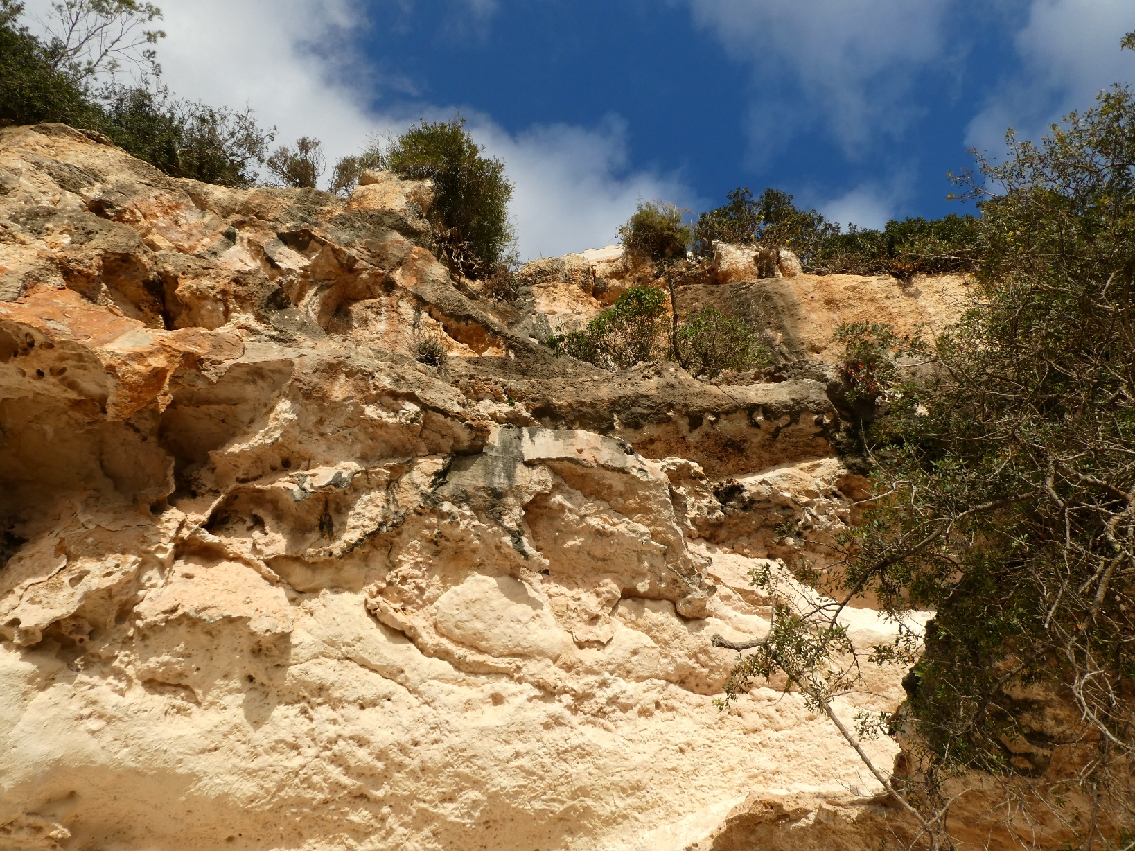 In het plaatsje ligt weliswaar een zandstrandje, maar de kust er omheen is een stuk ruiger en behoorlijk ontoegankelijk. Hoewel toch niet helemaal, op zo’n uitstekende rots kun je lekker in de zon zitten.