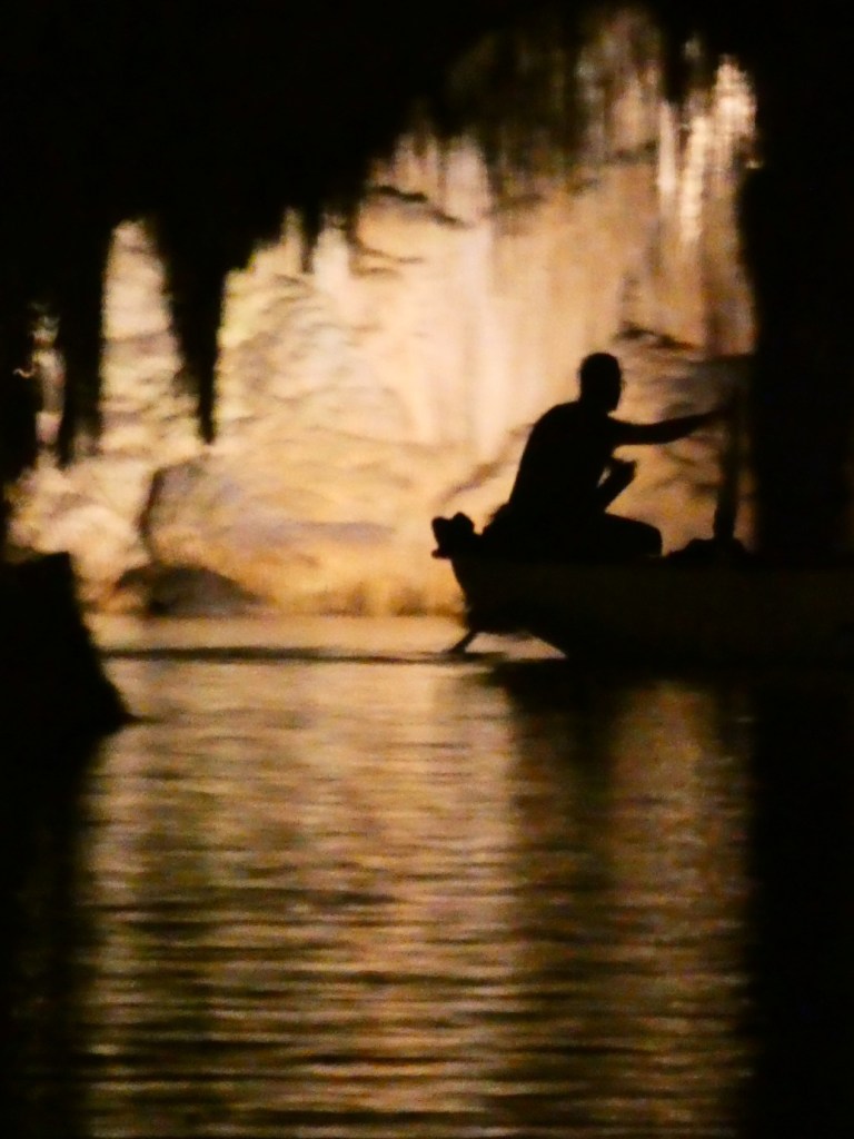 De wandeling eindigt bij één van de grootste ondergrondse meren ter wereld, het meer van Martel (een Franse grotonderzoeker). Als iedereen heeft plaatsgenomen op bankjes aan de rand van het meer, gaan de lichten uit en komen er bootjes aanvaren met daarop muzikanten die klassieke muziekstukken spelen. Een beetje kitsch, maar zeer sfeervol.