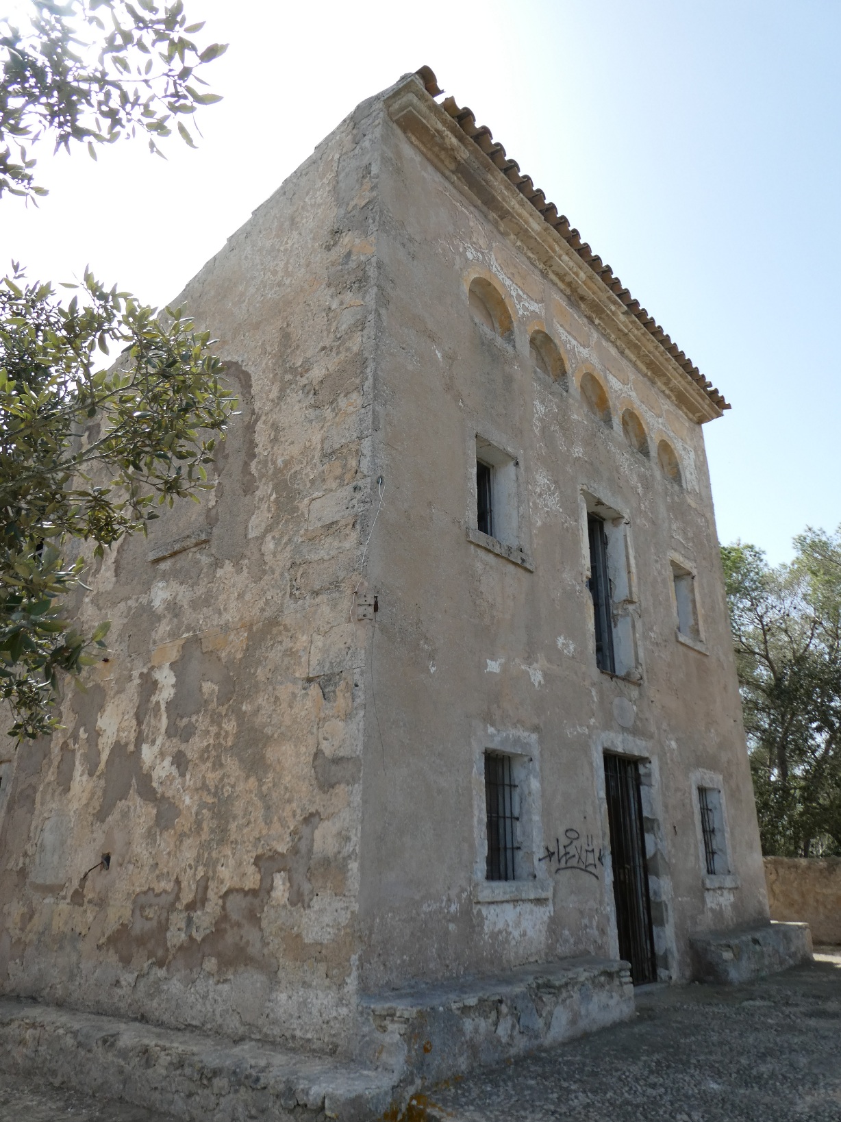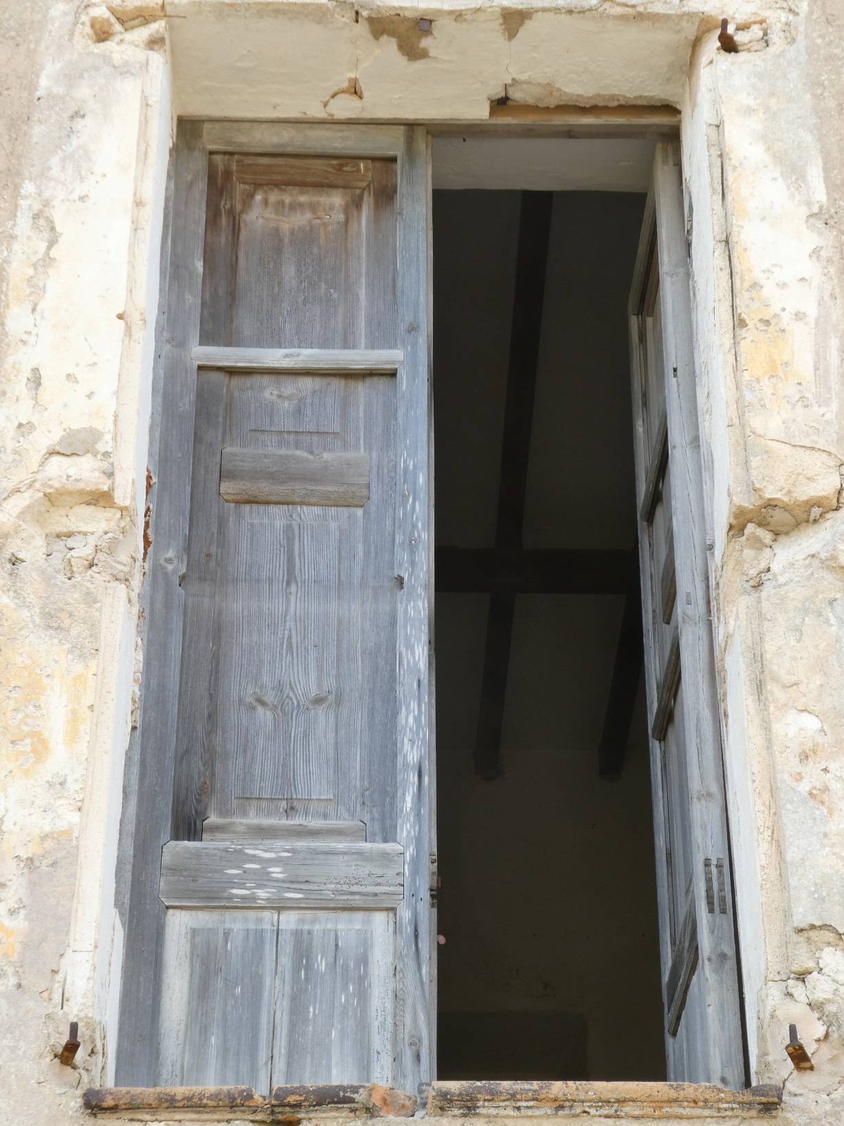 Achter de kerk nog een verrassing: een vervallen villa. Met spookachtig klapperende luiken!