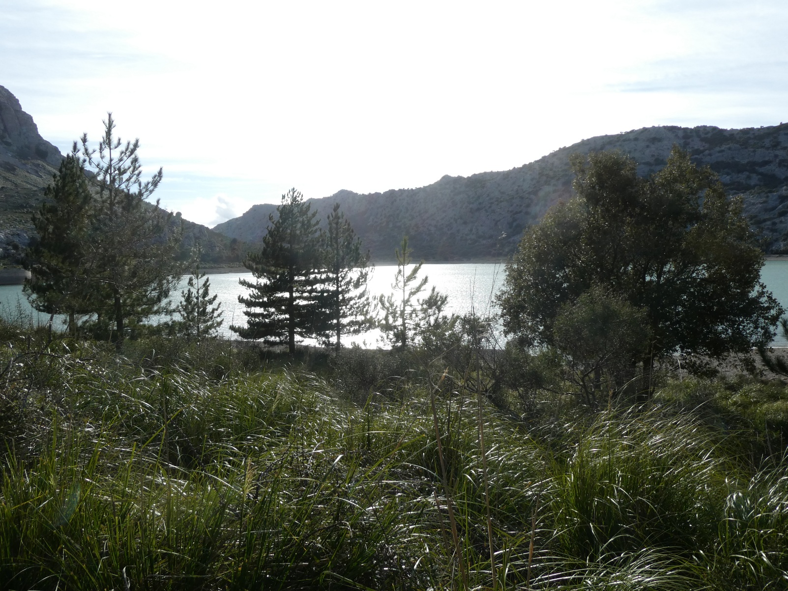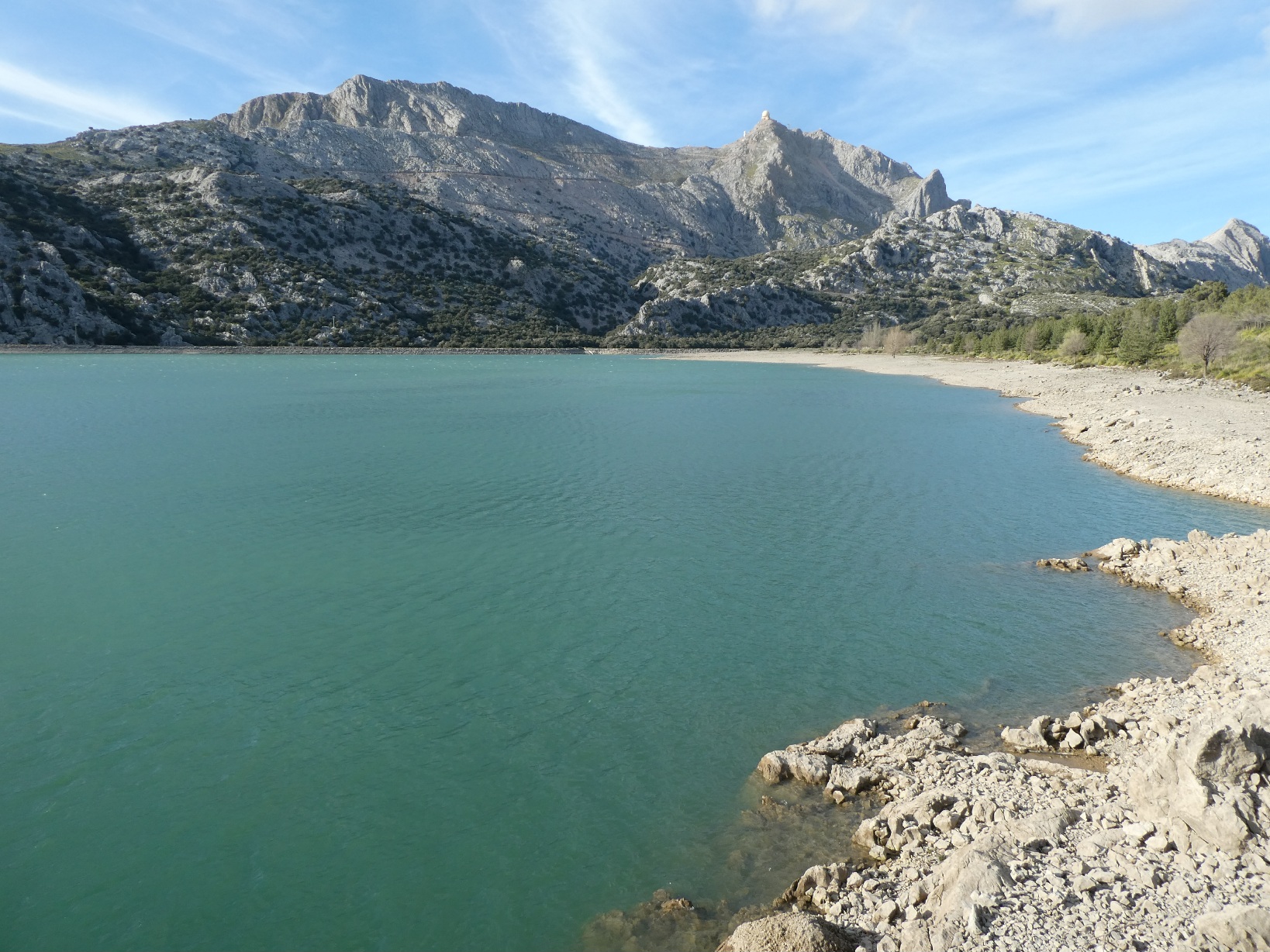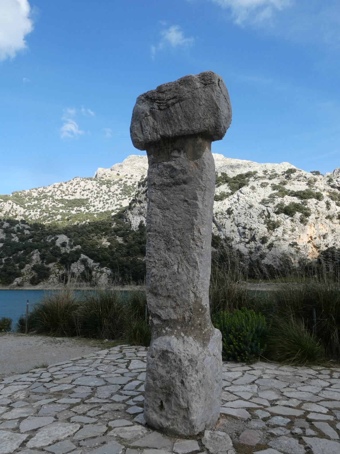 Gorg Blau, met aan de oever de overblijfselen van een talayotisch heiligdom, gered van de verdrinking in het stuwmeer