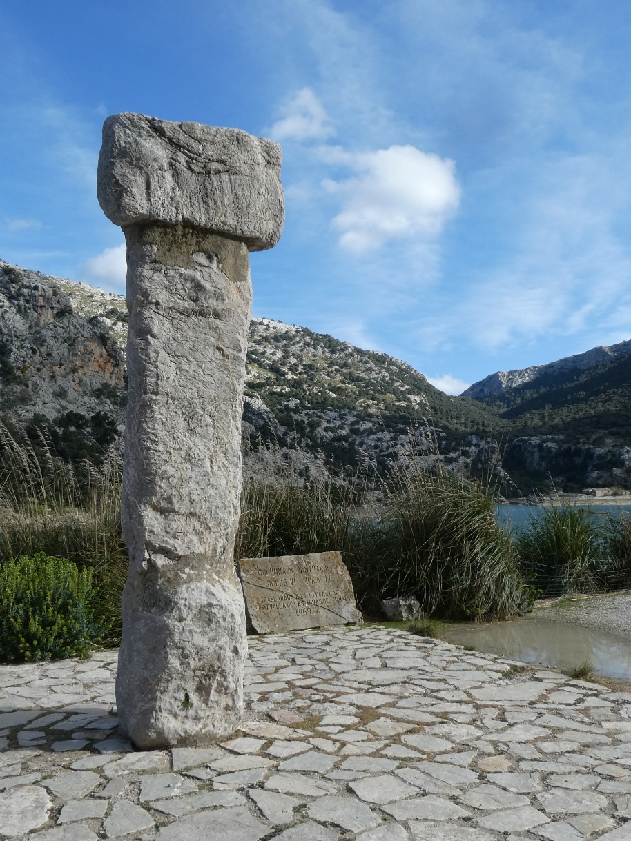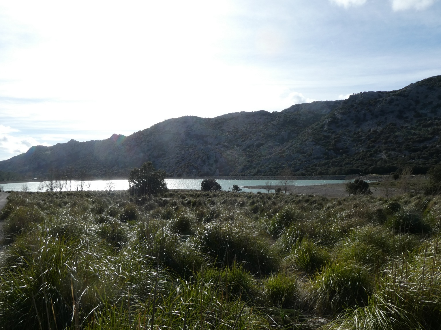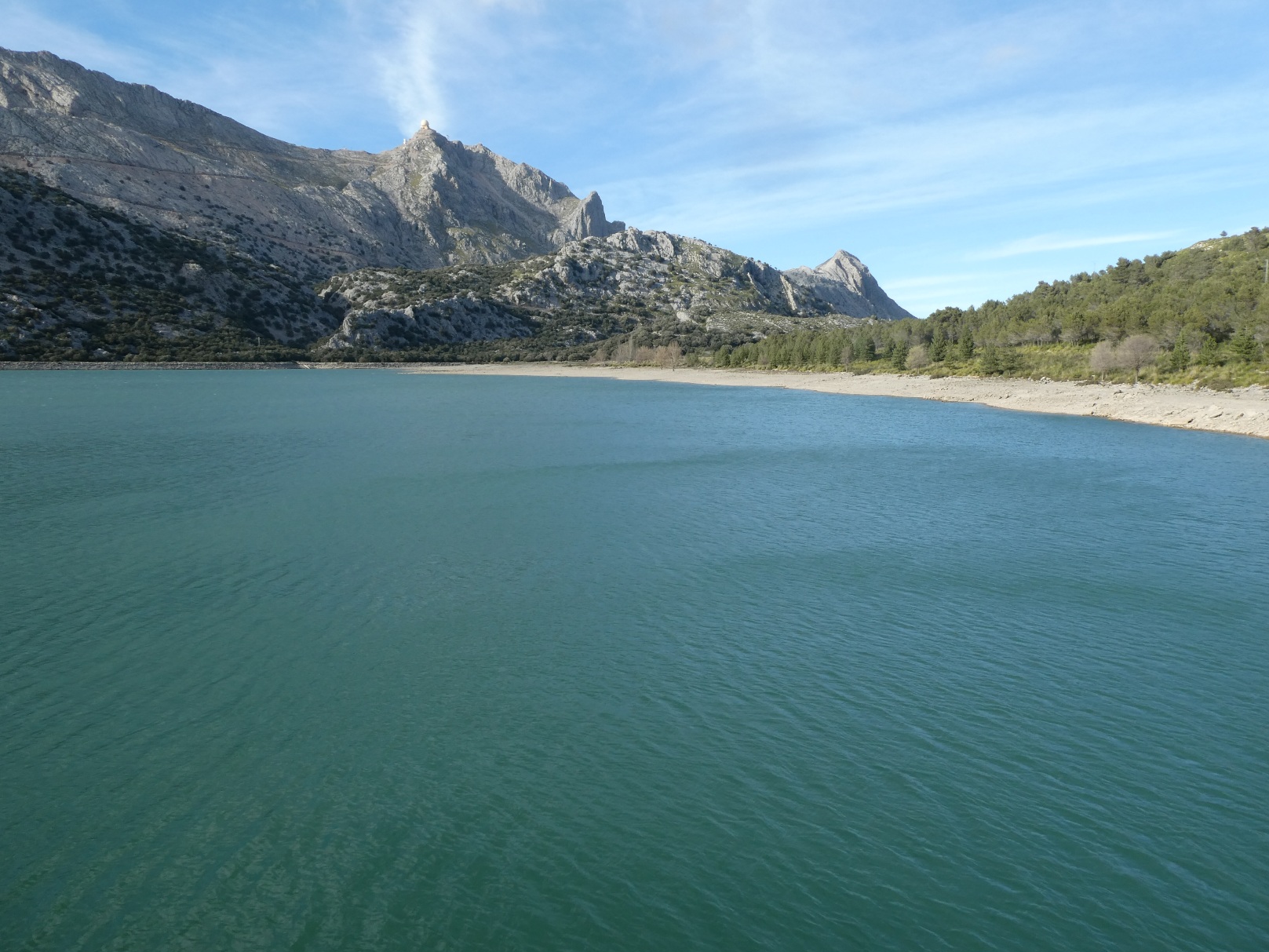 Gorg Blau, met aan de oever de overblijfselen van een talayotisch heiligdom, gered van de verdrinking in het stuwmeer