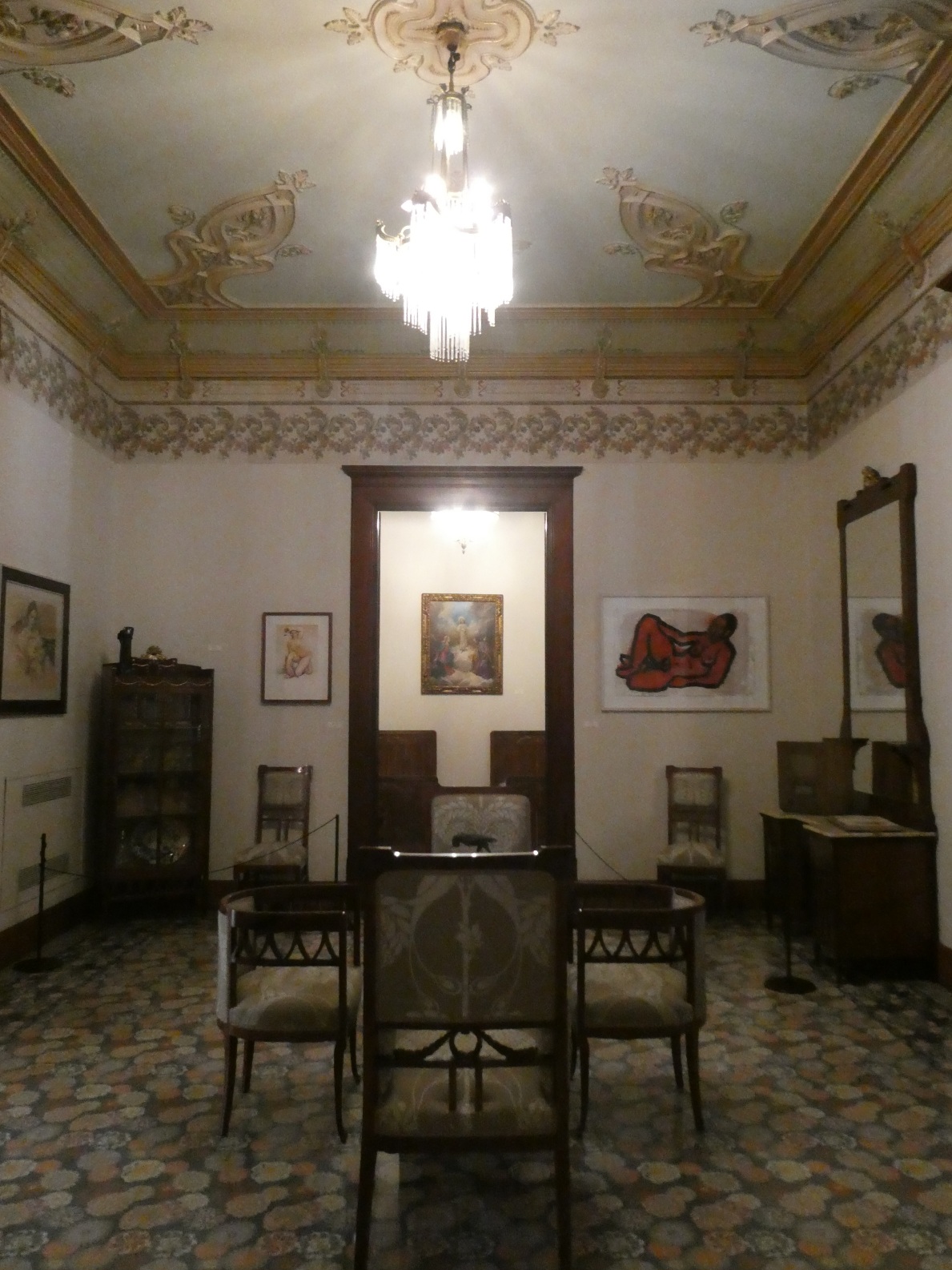 De overige verdiepingen zijn veel soberder. Hier en in de tuin herbergt het huis een grote kunstverzameling, om eerlijk te zijn van wisselende kwaliteit.