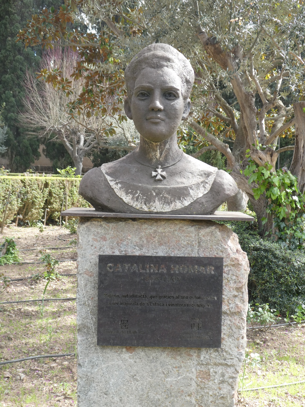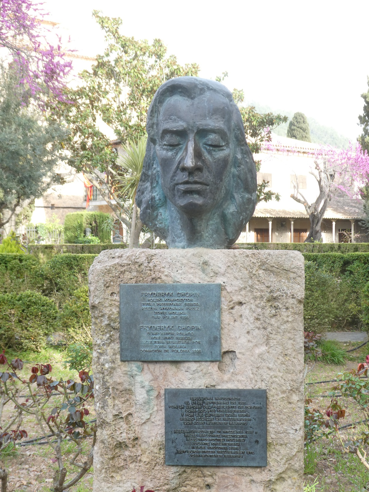 In de tuin van het klooster staan verschillende borstbeelden van voormalig bewoners of bezoekers van het klooster. Links Catalina Homar, wijnbouwers, landgoedbeheerder, metgezel en waarschijnlijk geliefde van aartshertog Lodewijk van Oostenrijk. Rechts de waarschijnlijk allerberoemdste gast, Frédéric Chopin. Samen met Georges Sand verbleef hij hier in de winter van 1838/1839 enkele extreem koude weken om te ontkomen aan de Parijse ophef over hun buitenechtelijke relatie. Zij haatte het en schreef er een boek over (Een winter op Mallorca), hij had het beter naar zijn zin en componeerde er verschillende preludes.