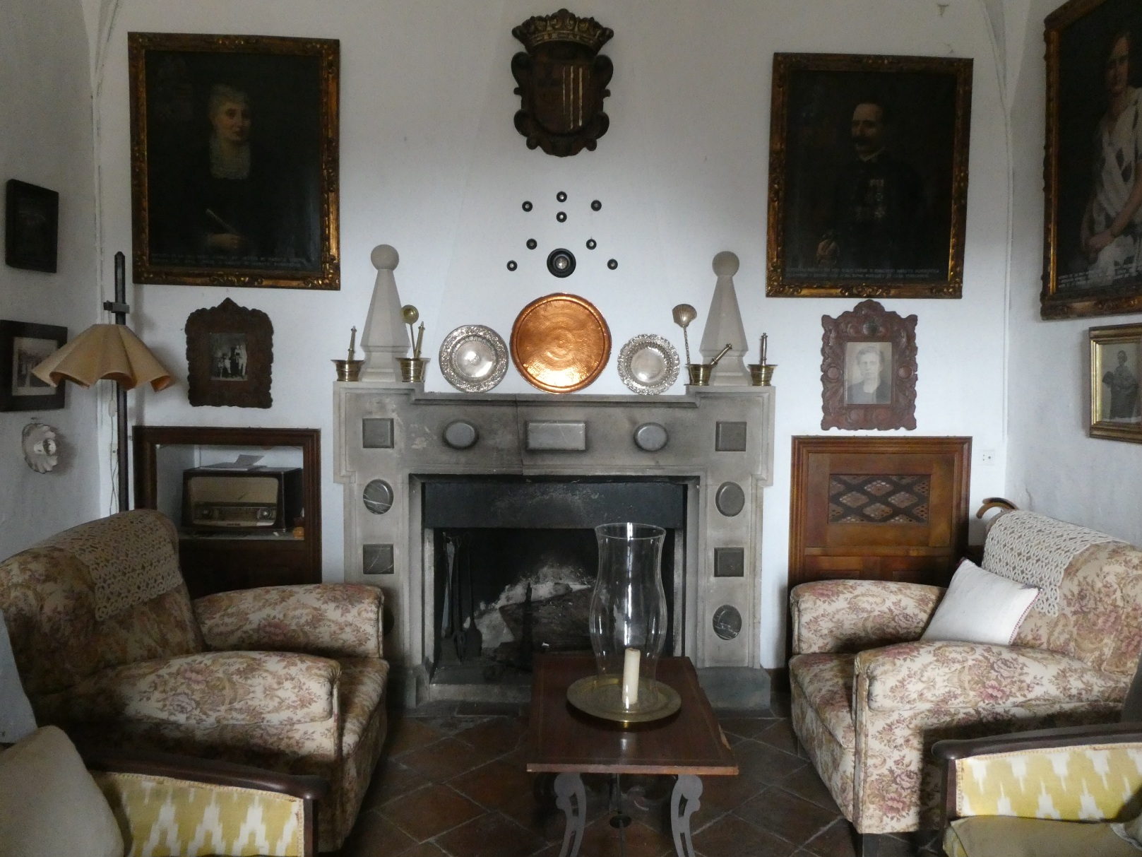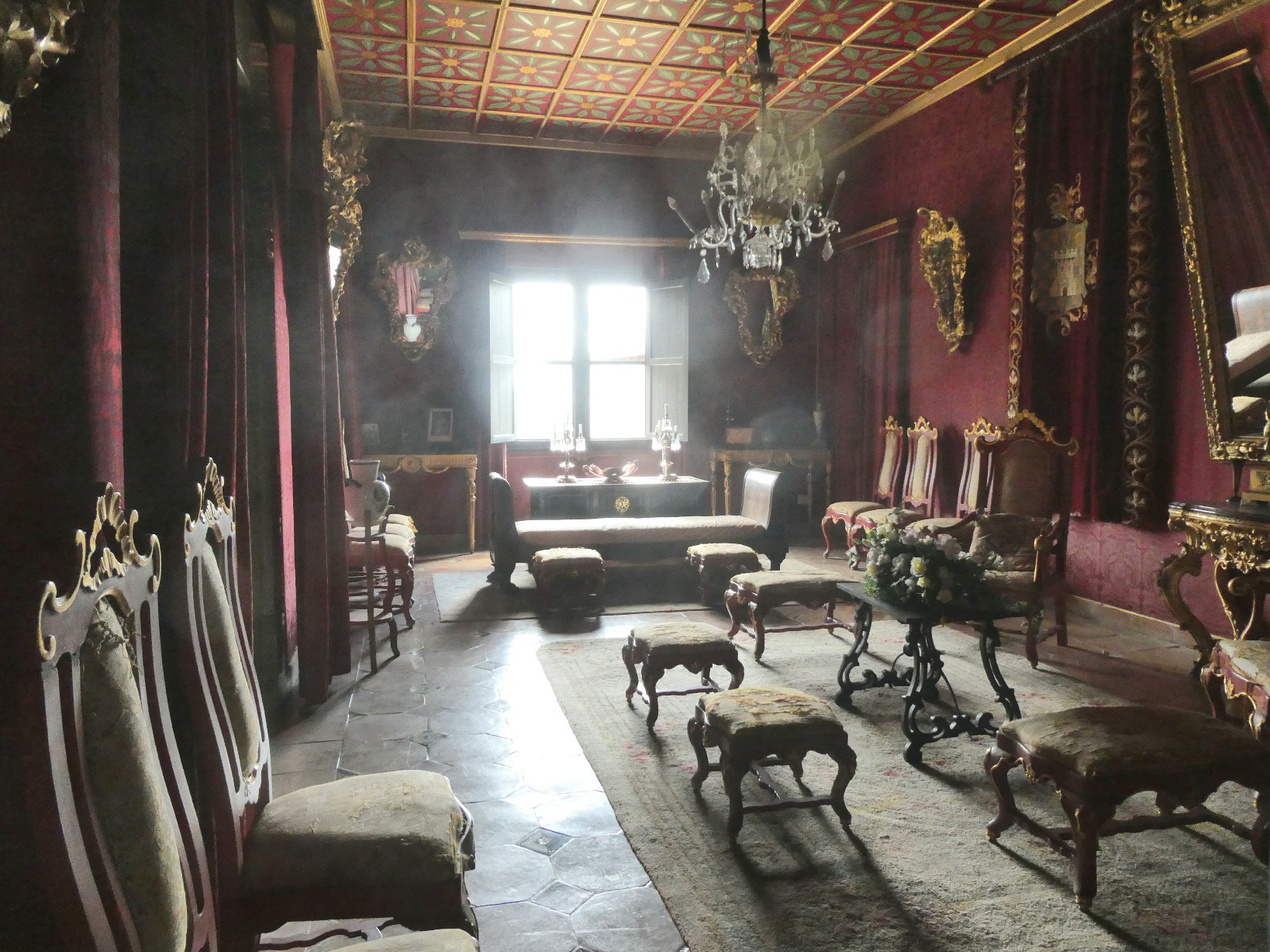 Binnen is het ingericht in een ratjetoe van stijlen, uit de verschillende periodes dat het in gebruik geweest is.