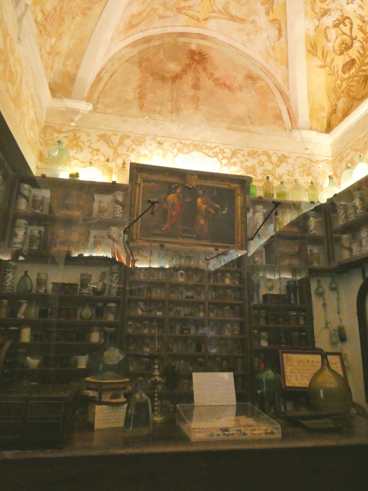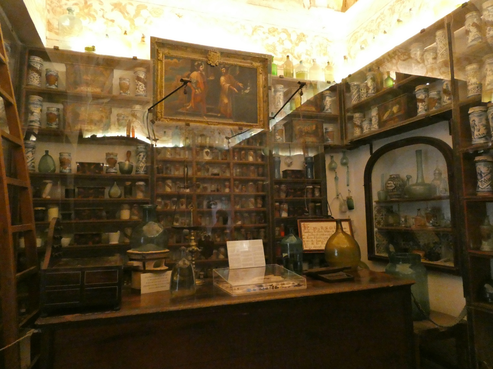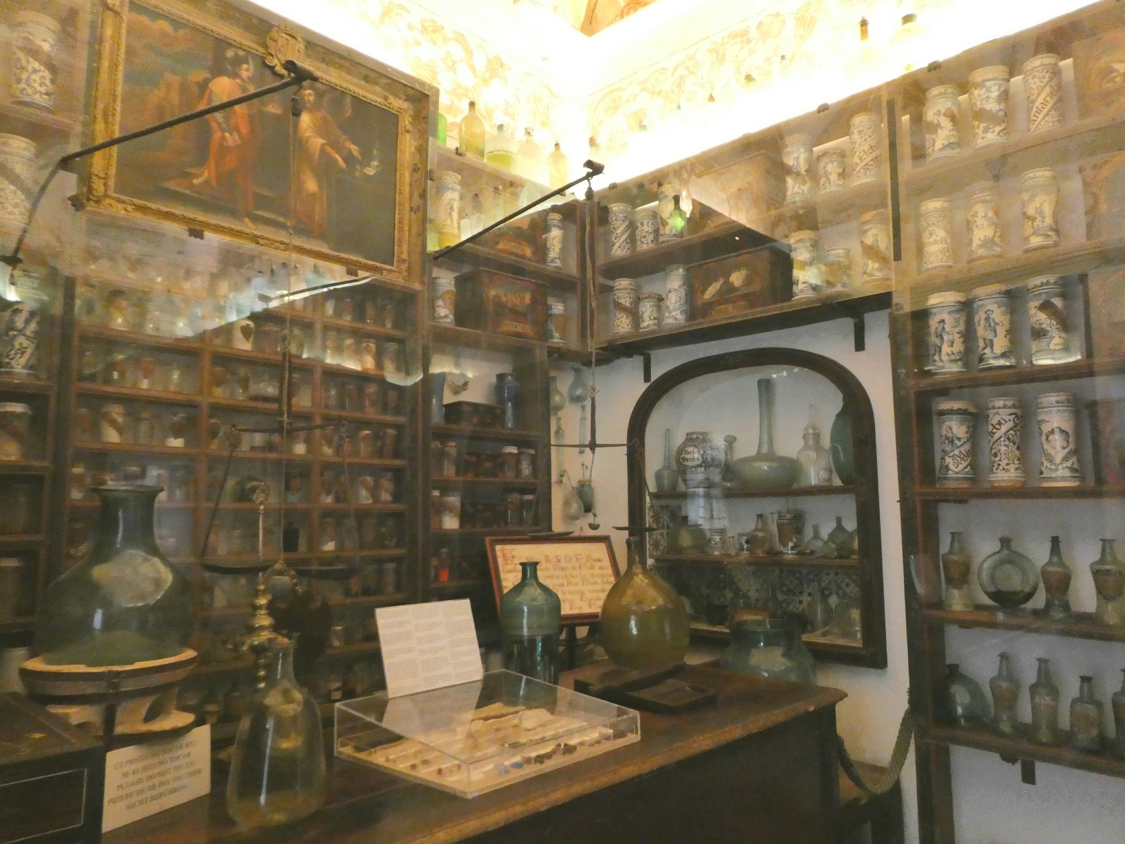 Ook in het klooster: de oudste apotheek van Mallorca, uit 1723. De potjes zijn nog steeds gevuld met medicijnen van soms eeuwen oud.