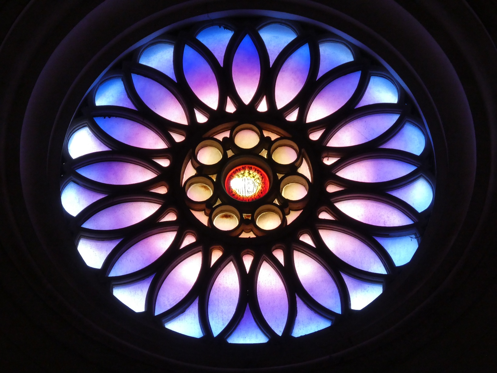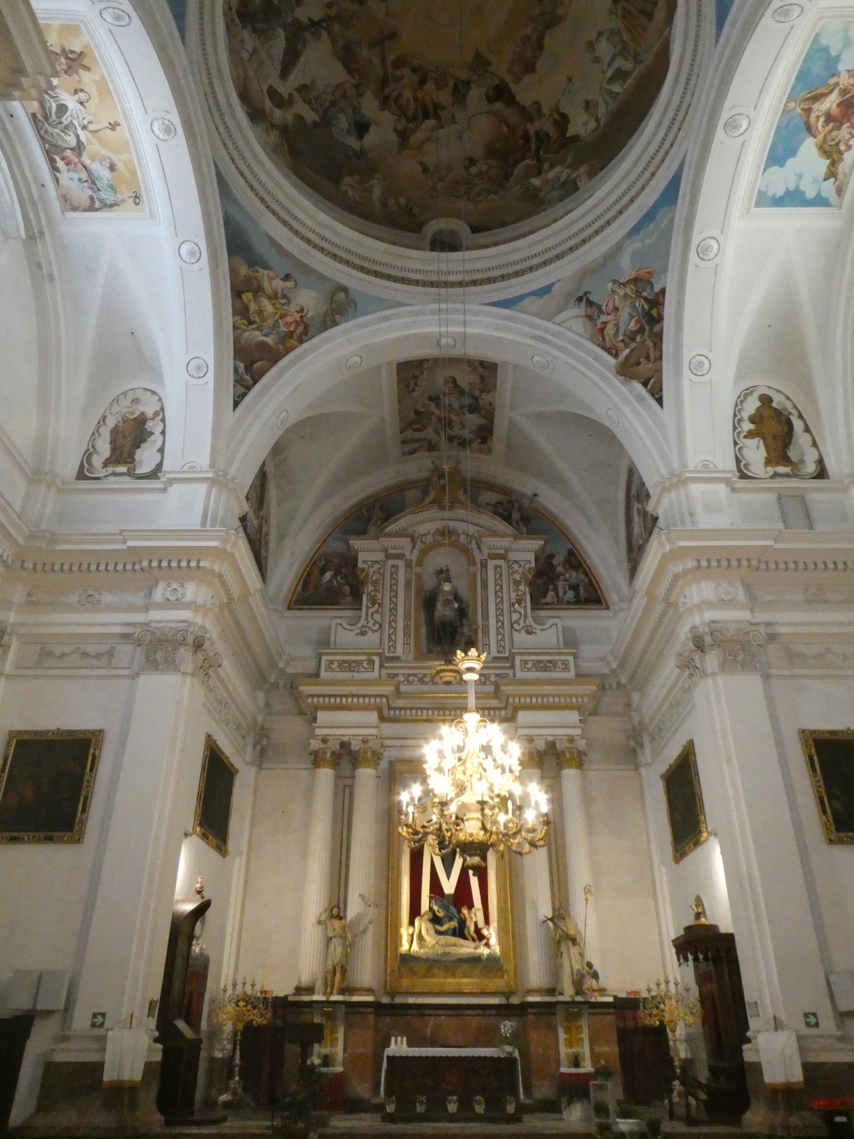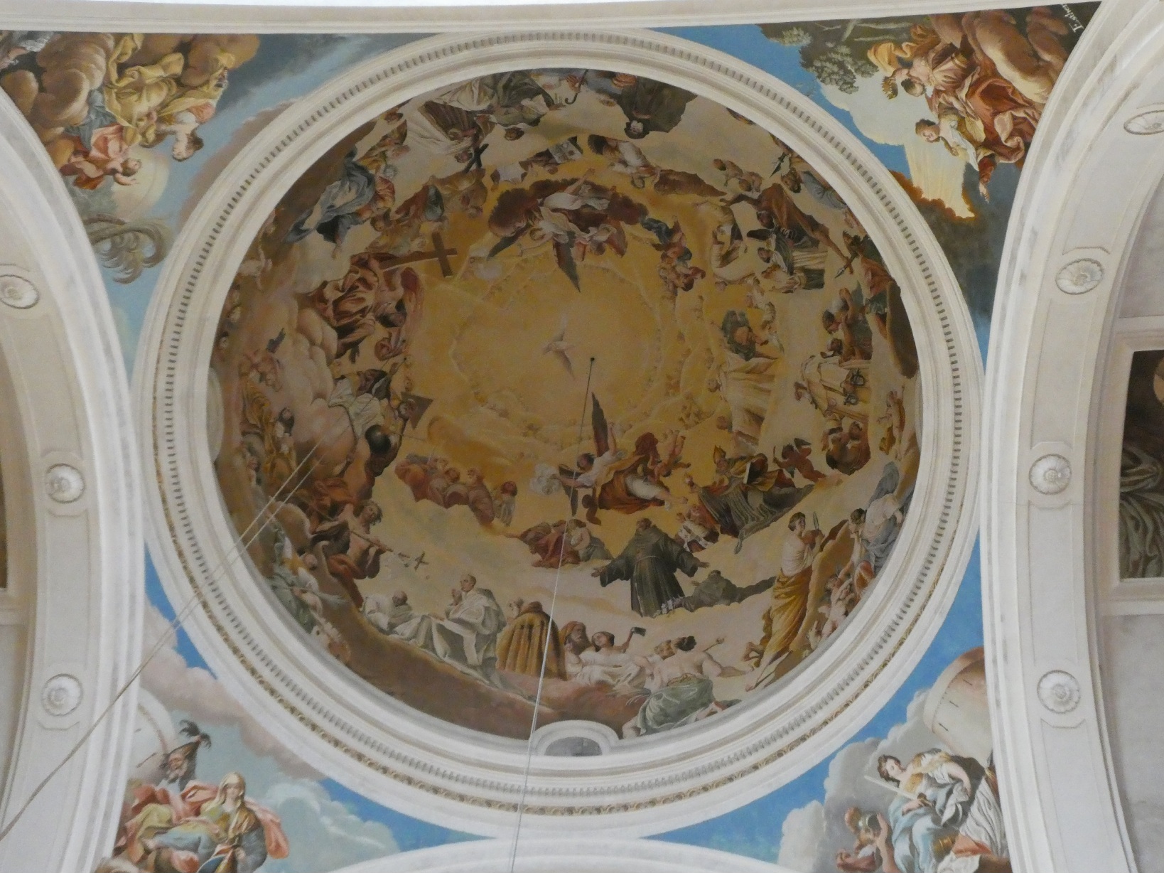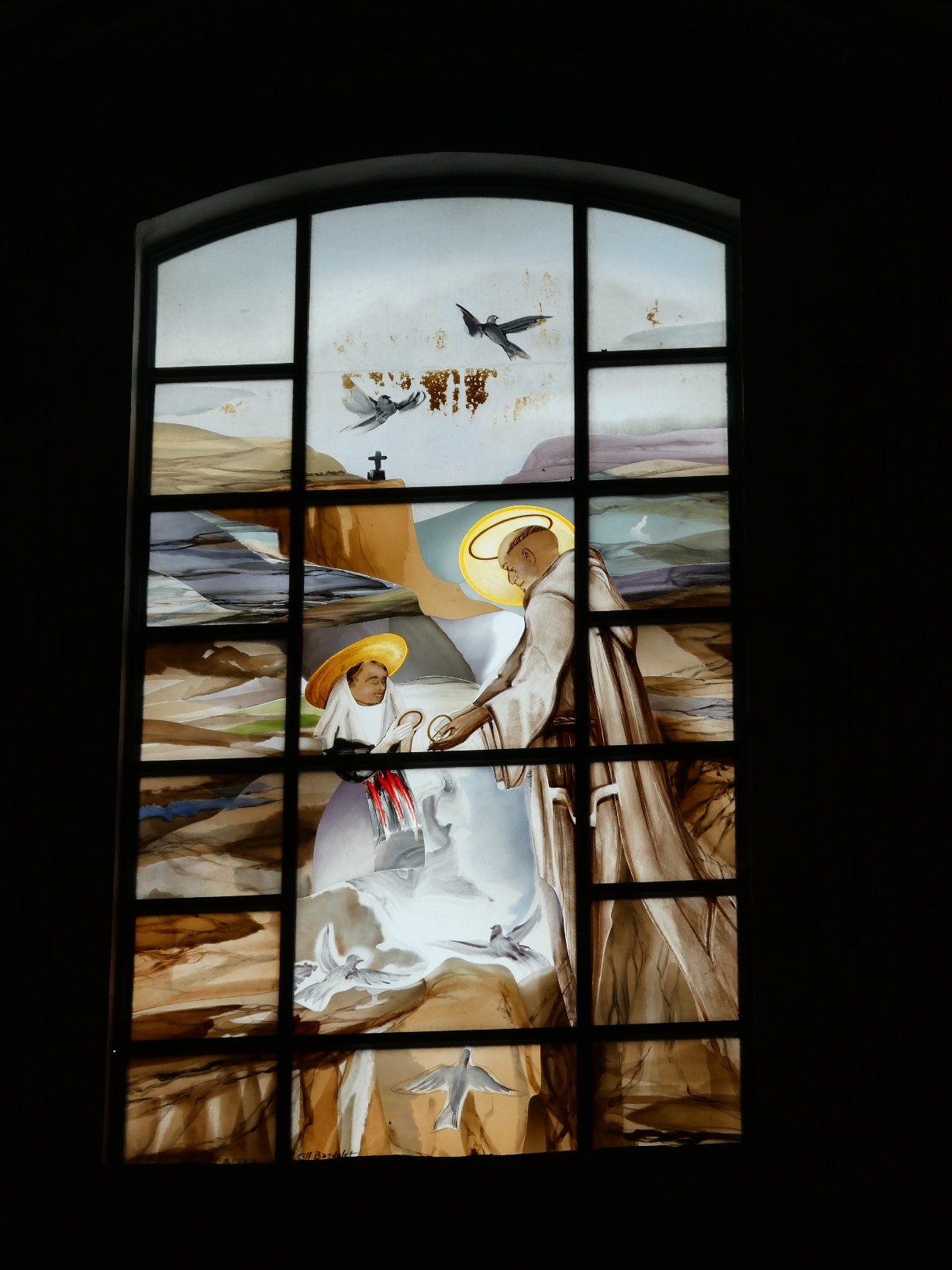 De neoklassieke kerk, aan de binnenkant van het klooster gelegen, is rijk gedecoreerd in wit, blauw en goud, met mooie gebrandschilderde moderne vensters.