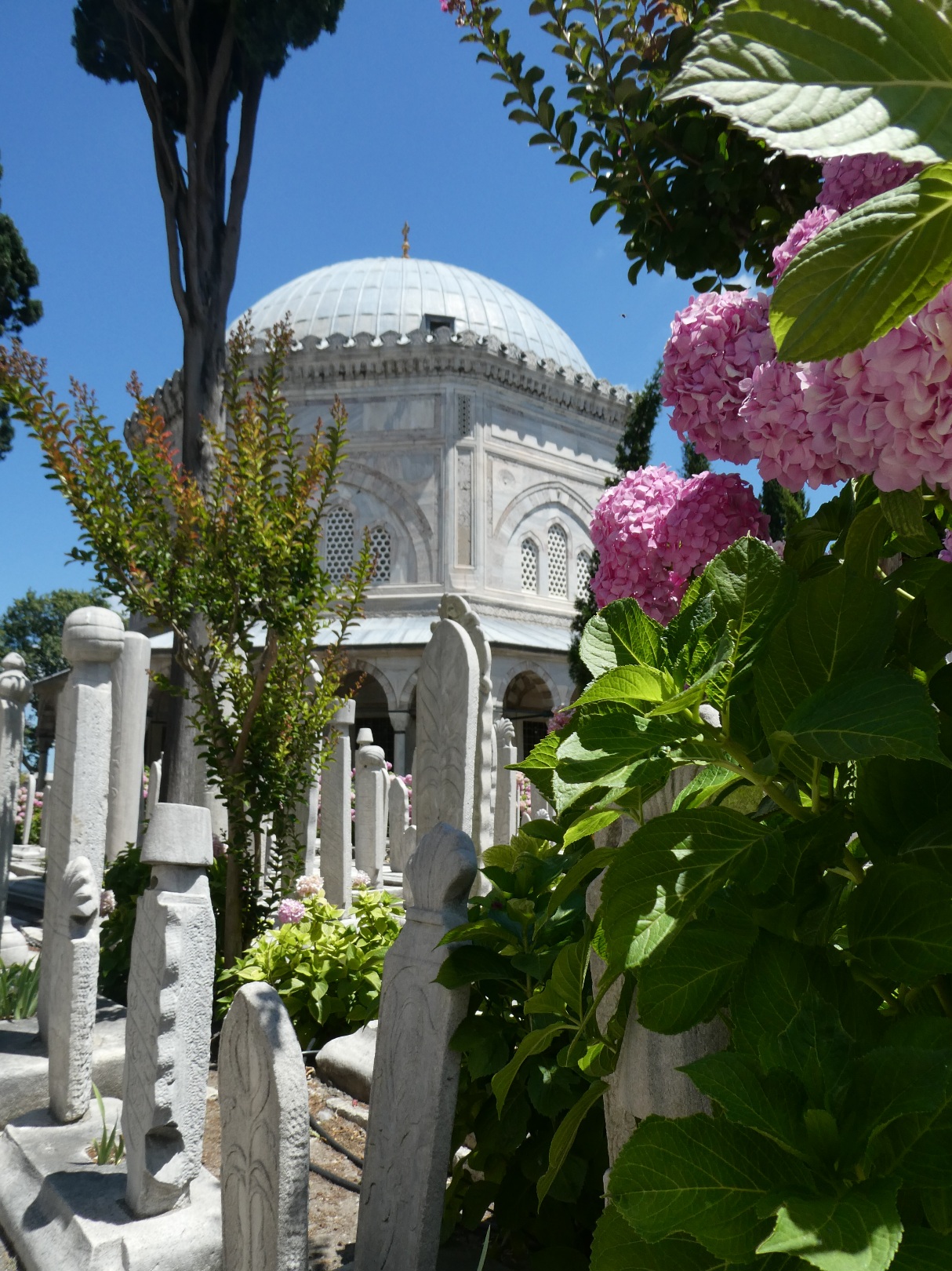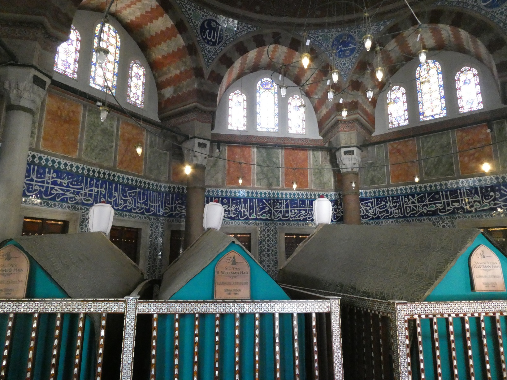 Voor de moskee staan de tombes van Süleiman zelf en van zijn vrouw, Hürrem Sultan, in een prachtige tuin met graven van vele dienaren.