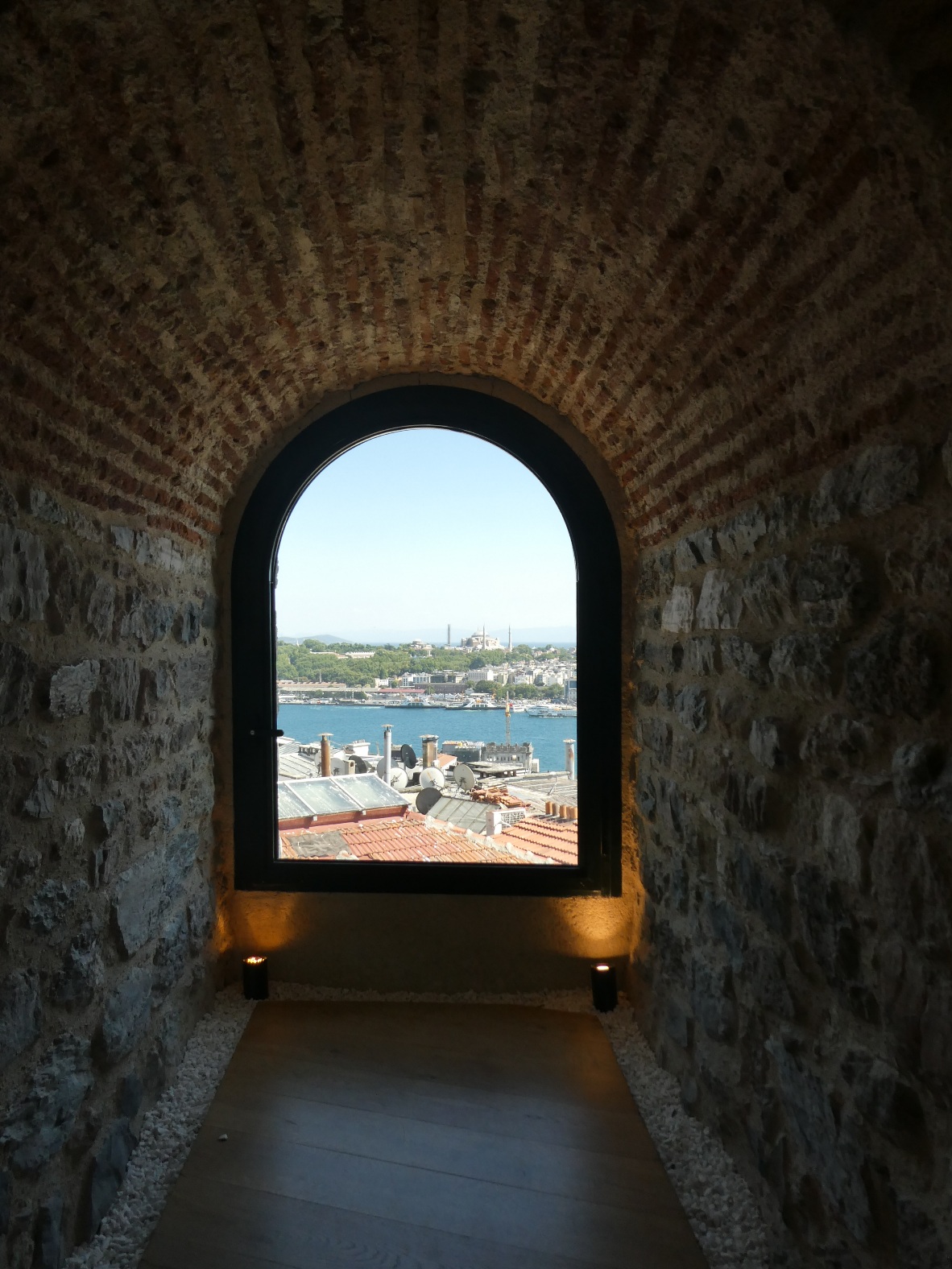 De toren heeft een veel oudere oorsprong. De eerste versie werd al in de 6e eeuw gebouwd van hout, maar werd tijdens de kruistochten verwoest. In de 14e eeuw bouwden de Genuezen een nieuwe van steen, die er nu nog steeds staat. Vanaf de trans op de bovenste verdieping heb je uitzicht over de hele stad en, strategisch belangrijker, een groot deel van de Bosporus en de Gouden Hoorn.