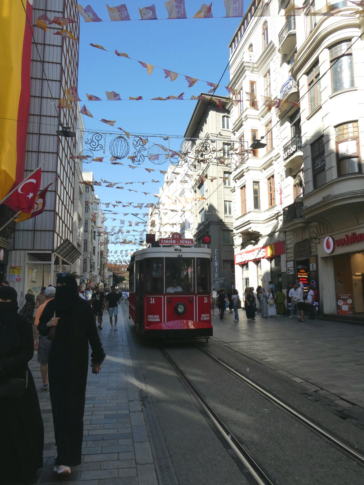 Door de straat loopt een oude tramlijn, de Tünel. Hij rijdt gelukkig niet al te snel, want meestal lopen er mensen op of vlak naast het spoor.