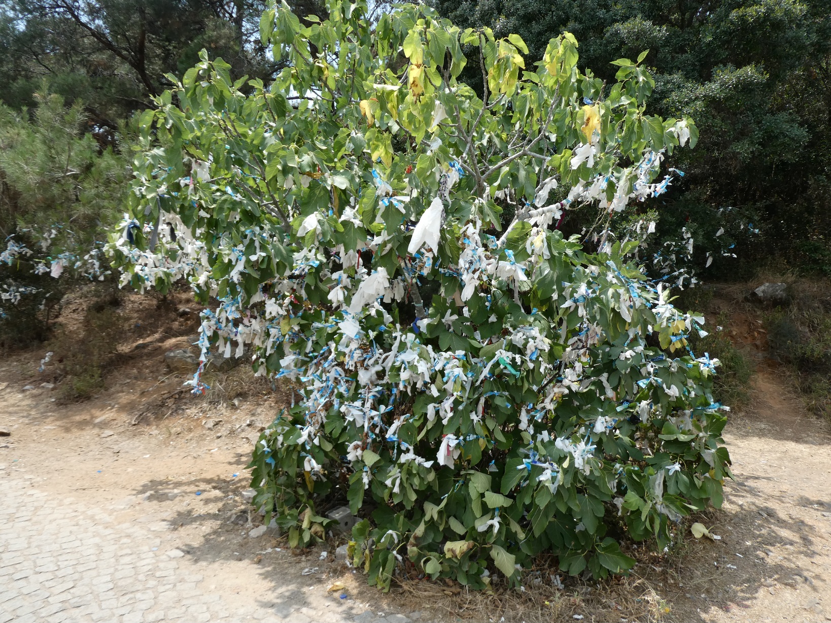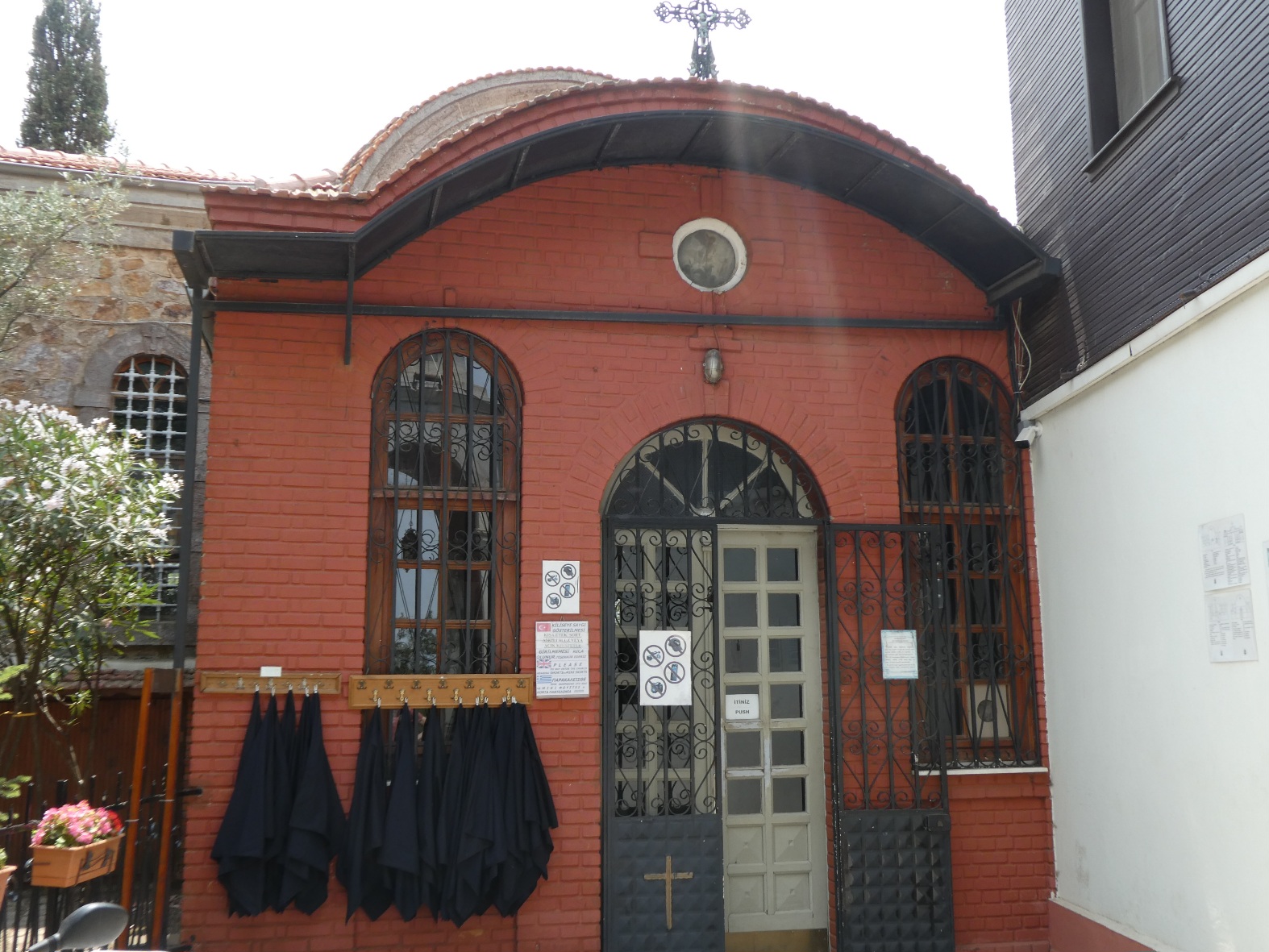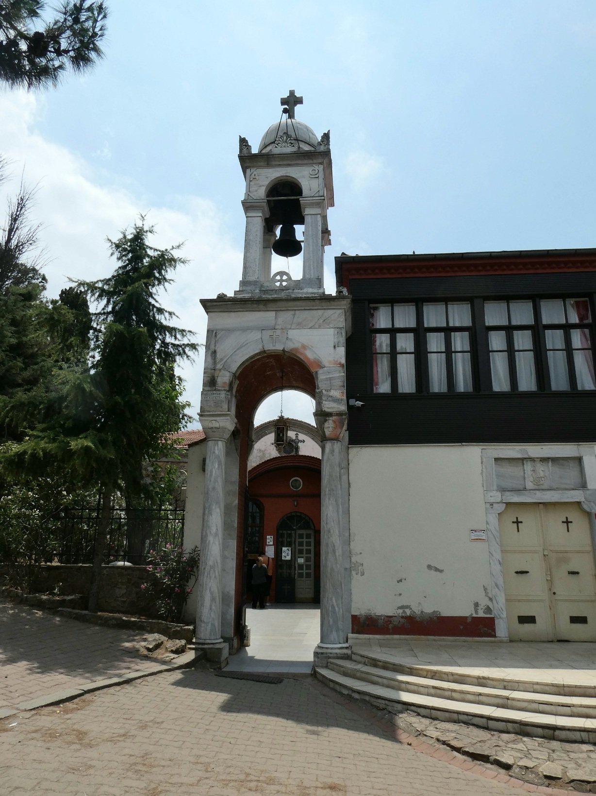 Op de top van de hoogste heuvel van Büyükada staat een klooster met kerk, de Sint George of Agios Georgios. Je mag er in maar wel met bedekte benen en armen, vandaar de zwarte doeken bij de ingang.
