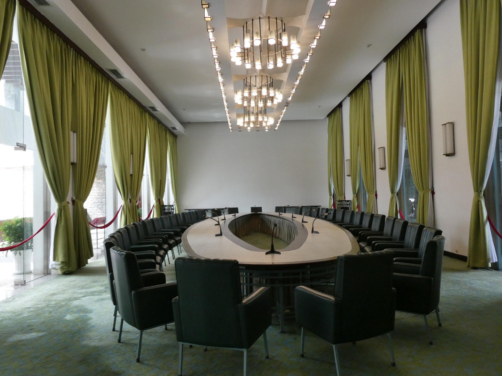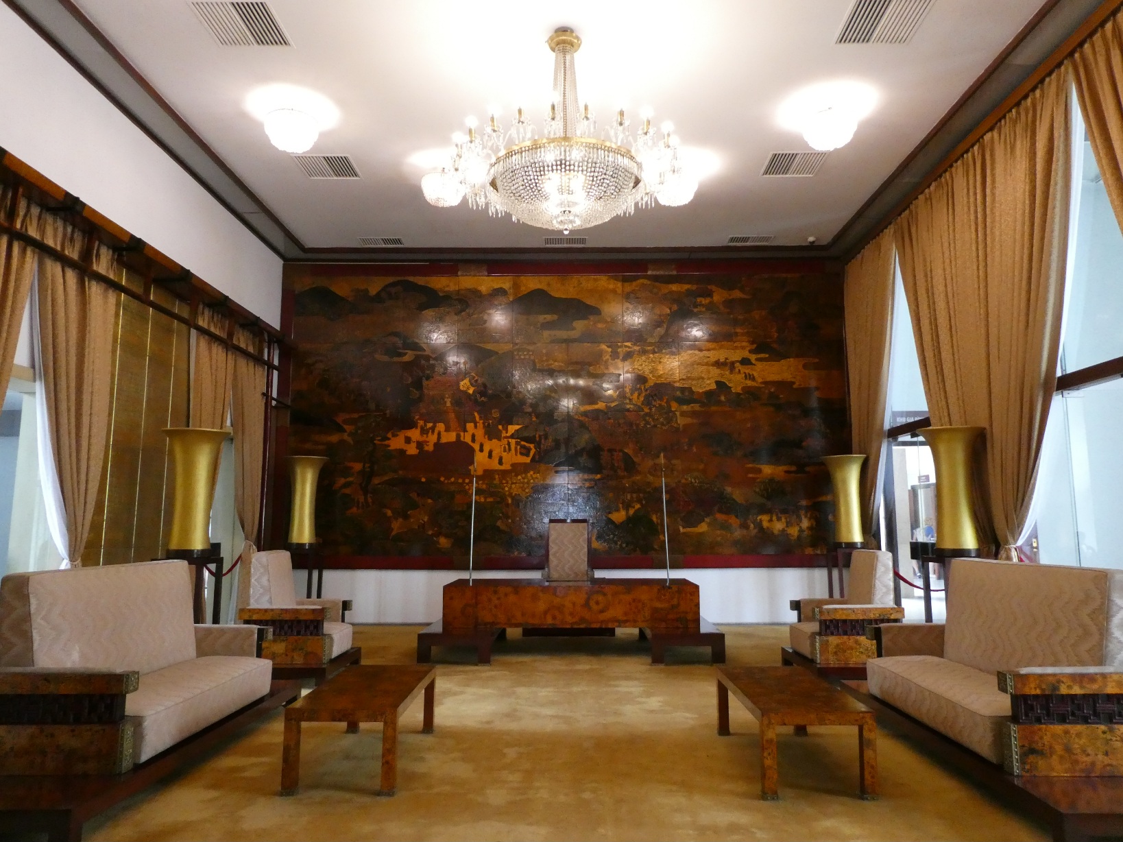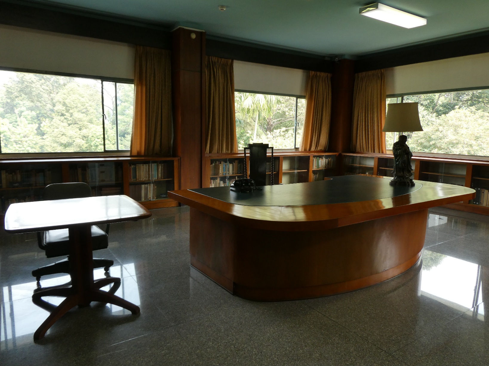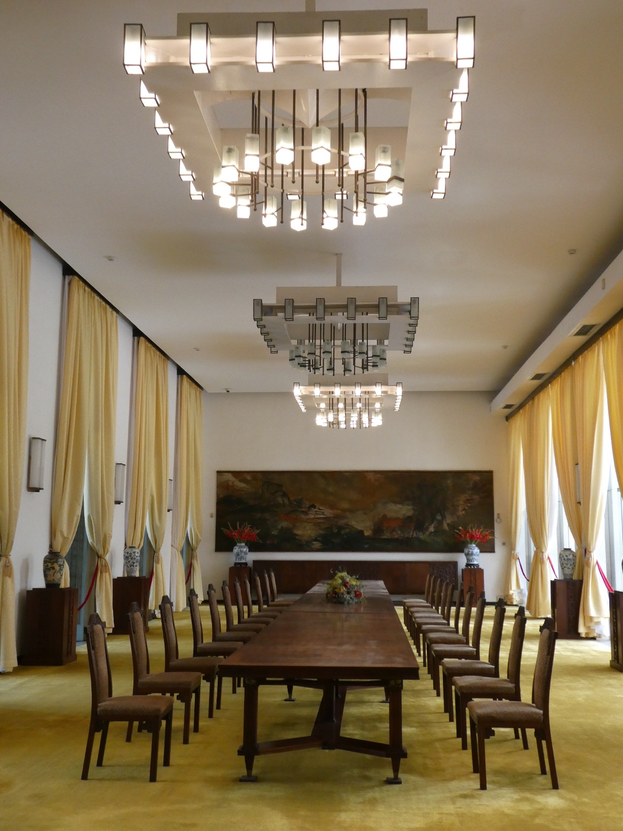 Behalve officiële meetings en ontvangsten, moest er natuurlijk ook gewoon gewerkt worden. De president en de vice-president hadden beiden hun werkkamer in het paleis, maar de president werkte ook graag in de bibliotheek. Dat communicatie belangrijk was blijkt wel uit de grote hoeveelheid telefoons op de bureaus. In fancy kleurtjes, dat wel.