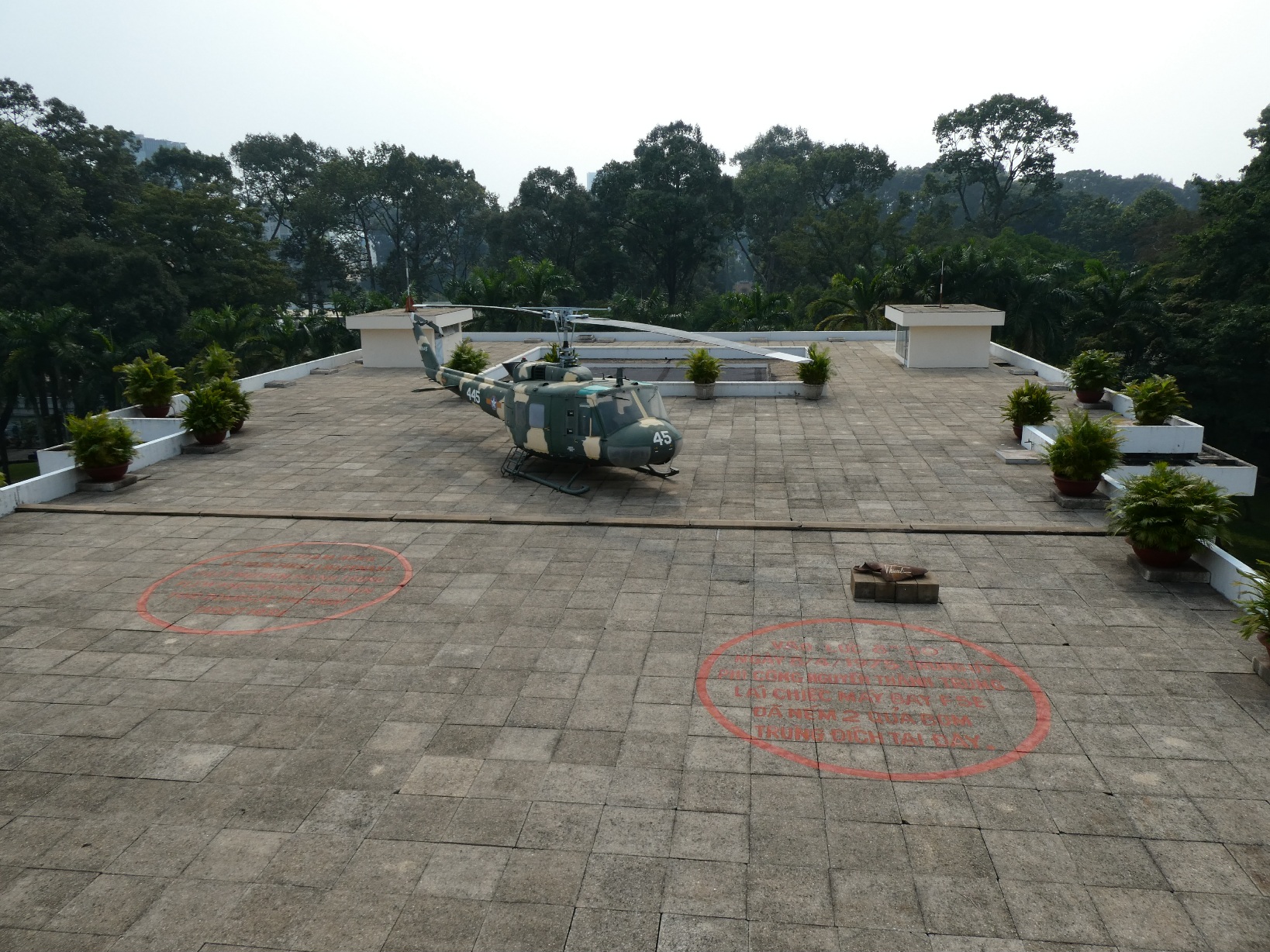 Bovenop het gebouw stond altijd een helikopter geparkeerd, voor het transport van de president. Op datzelfde dak is gemarkeerd waar de twee bommen insloegen die op 8 april 1975 werden afgeworpen door een Noord-Vietnamese infiltrant in de Zuid-Vietnamese luchtmacht. De materiële schade kon snel hersteld worden, de morele schade niet.