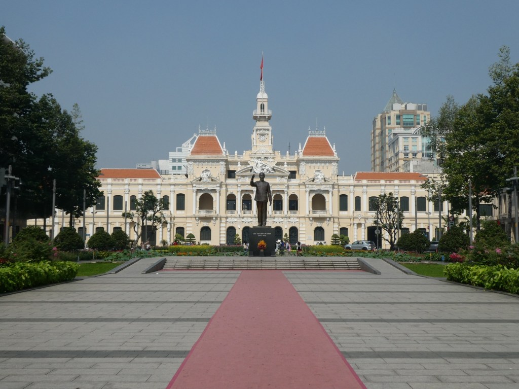 Het gebouw ligt aan het eind van de Nguyen Hue, één van de belangrijkste straten, en is ’s avonds prachtig verlicht.