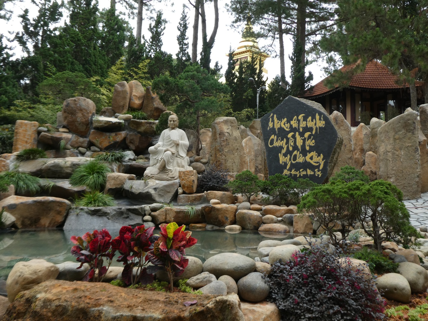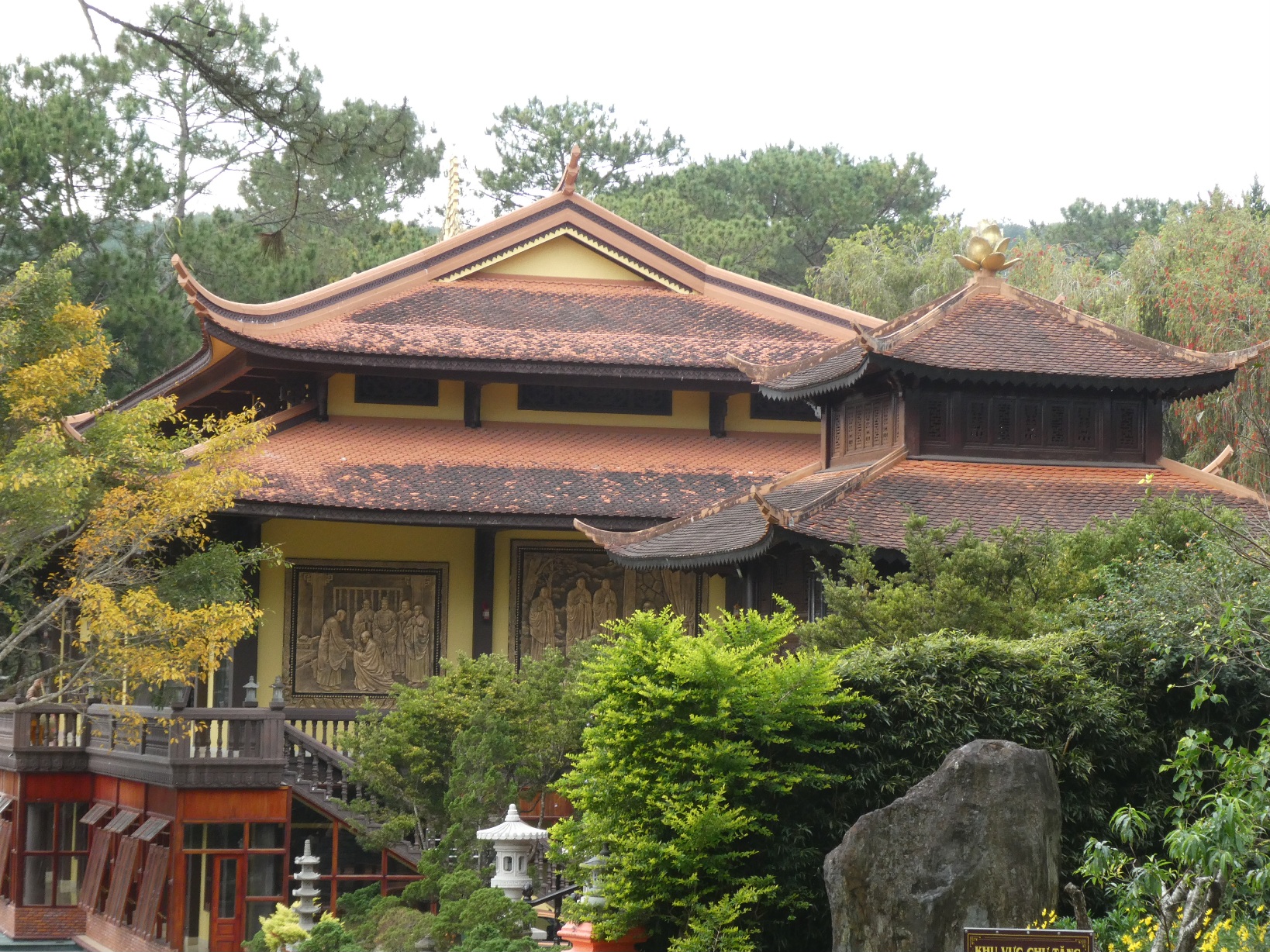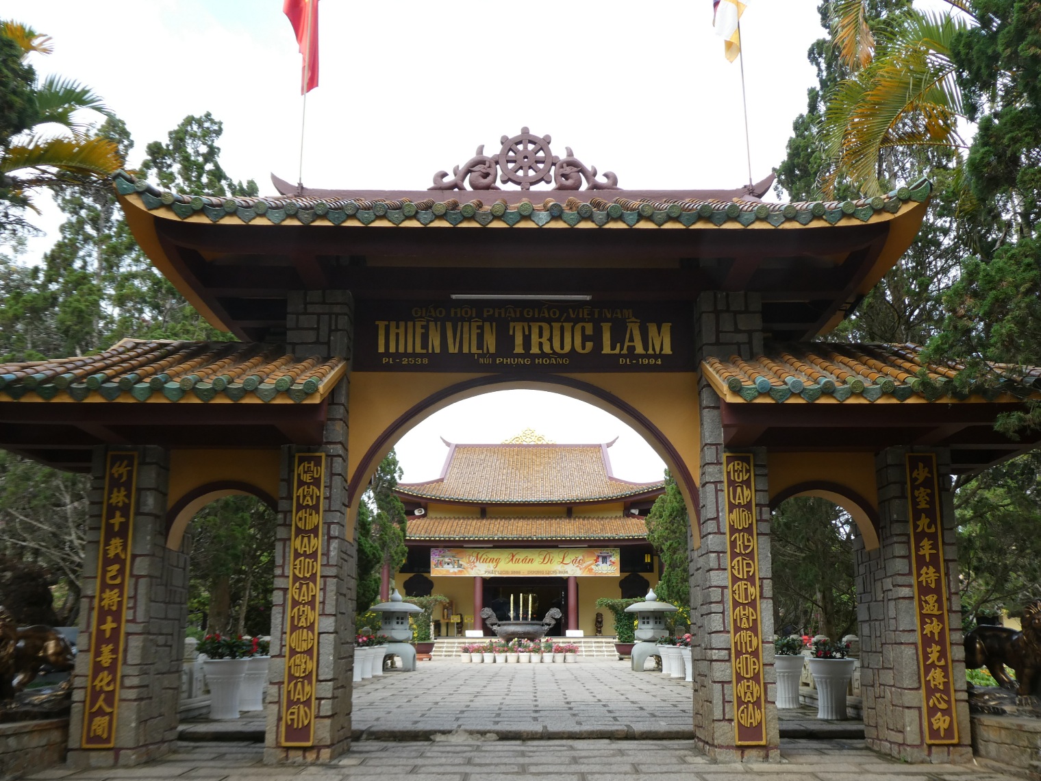 Boven op de bergtop, bij het eindpunt van de kabelbaan, ligt een groot zen-boeddhistisch klooster, het Trúc Lâm klooster.