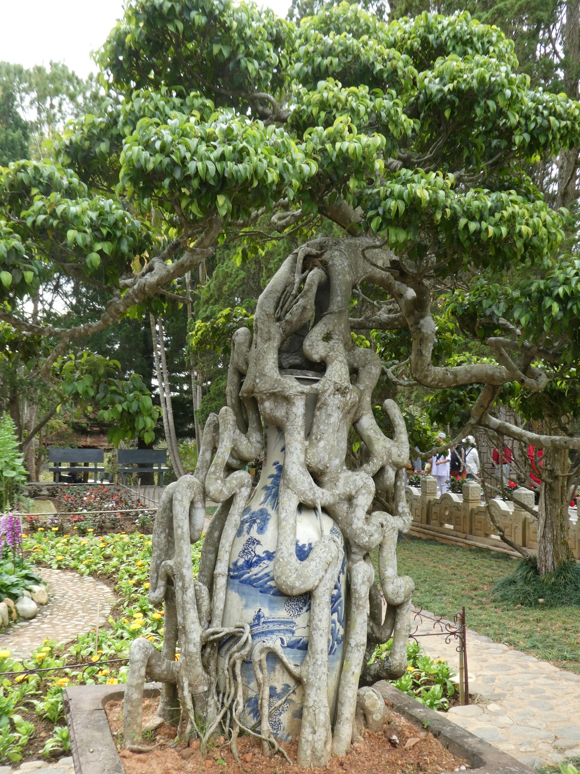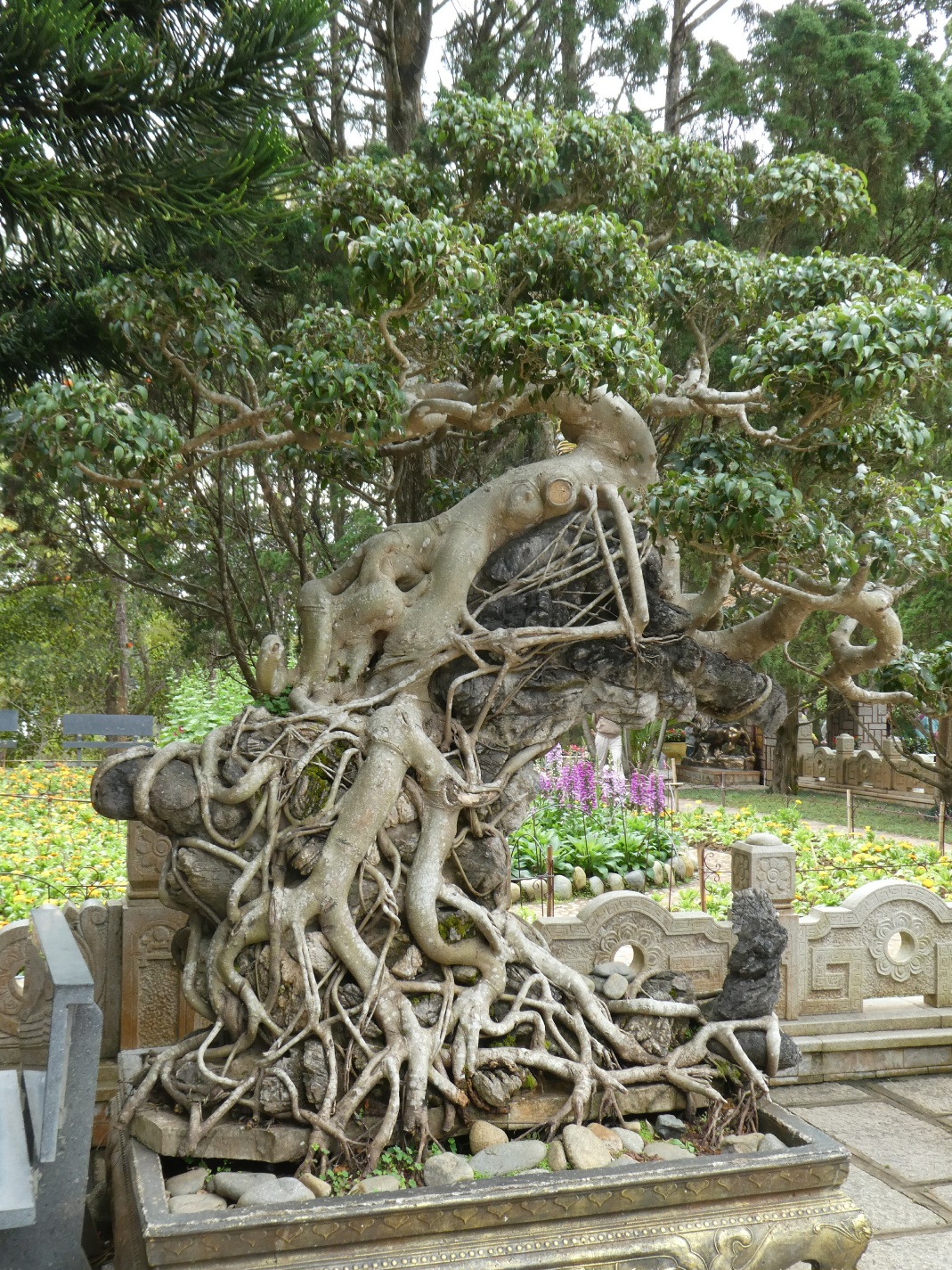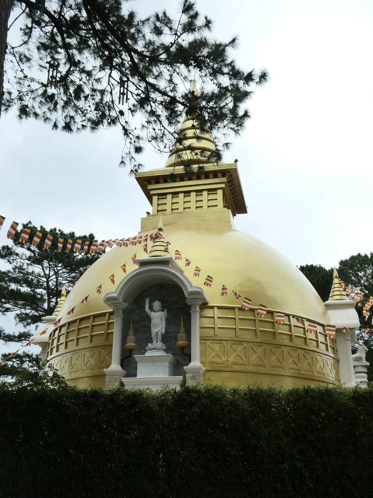 Boven op de bergtop, bij het eindpunt van de kabelbaan, ligt een groot zen-boeddhistisch klooster, het Trúc Lâm klooster.