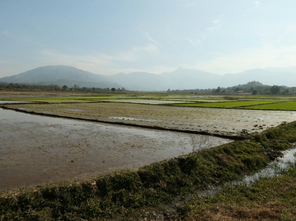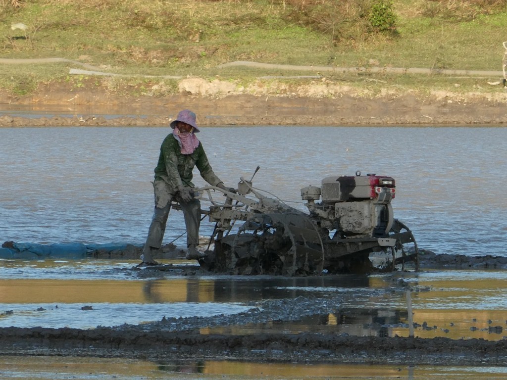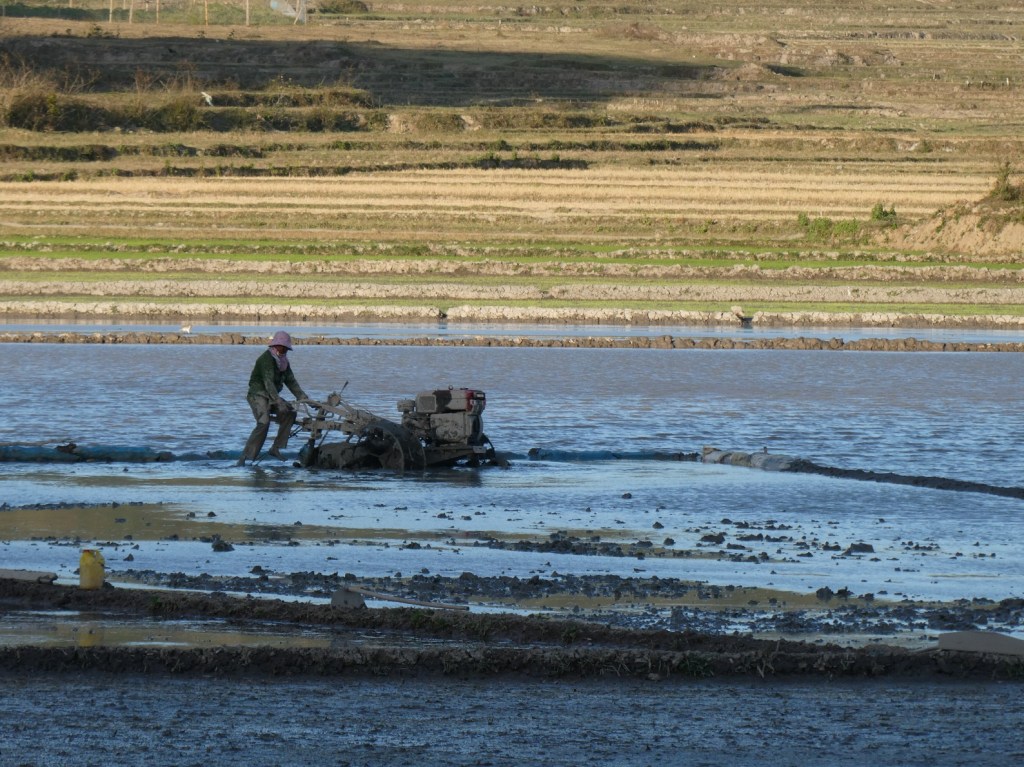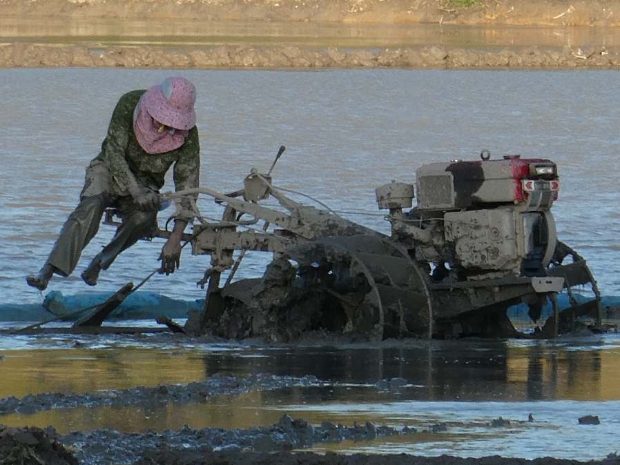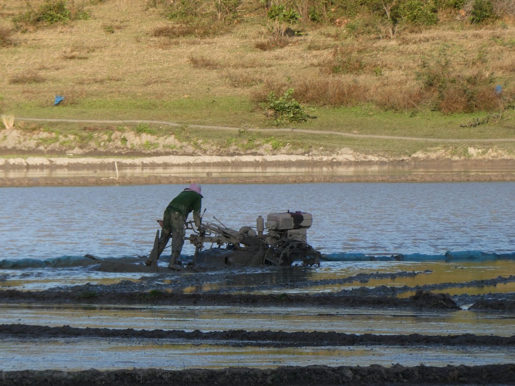 Mocht je je afvragen hoe je dat nou doet, die rijstvelden aanleggen in de modder: zo dus.