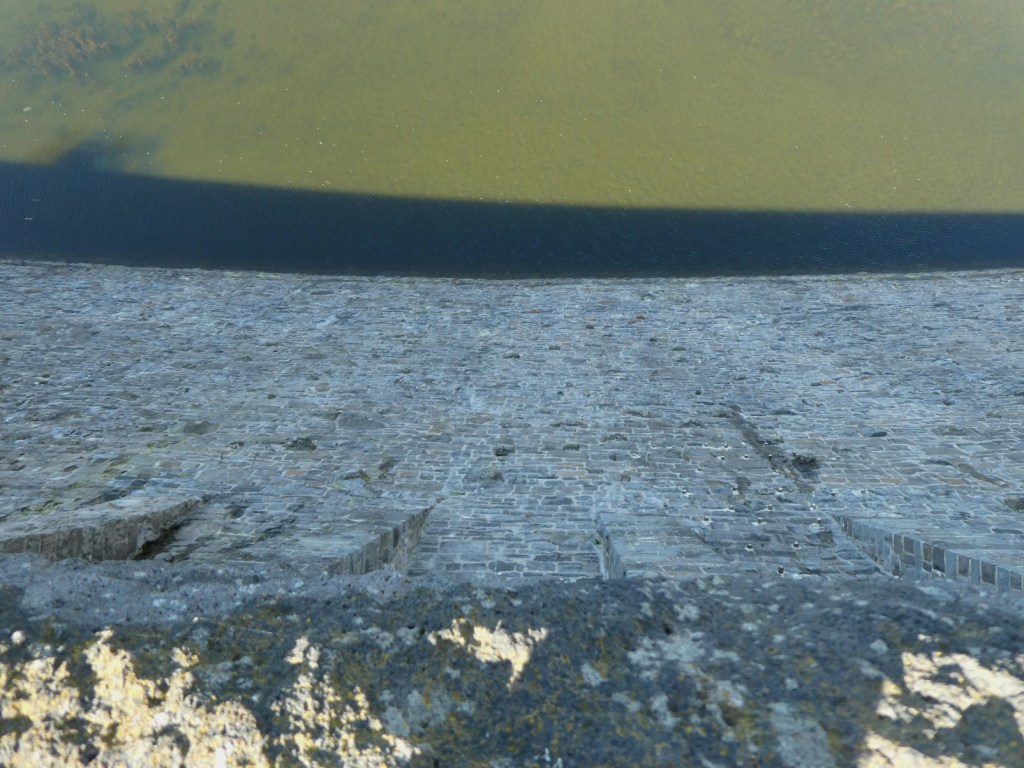De dam, 40 meter hoog en 650 meter lang, is tegenwoordig vrij toegankelijk, met een mooi zicht op het grote verschil tussen de beide waterniveau’s.