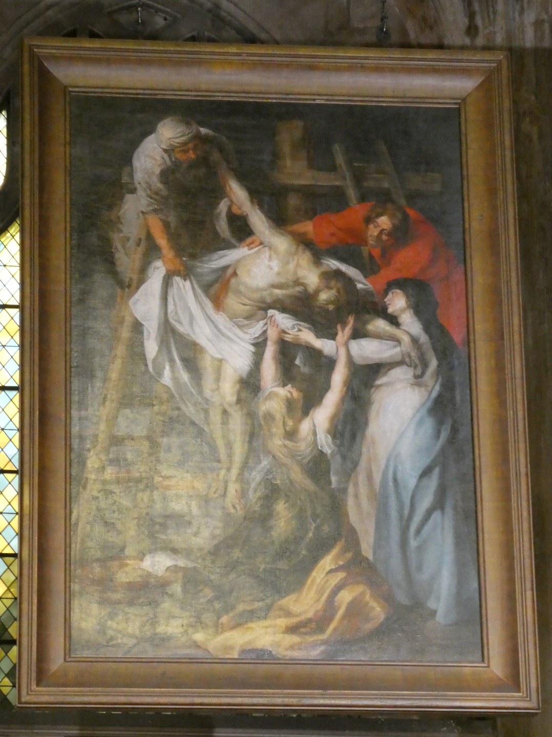 Bijzonder zijn een originele kruisafneming geschilderd door Rubens en het zeventiende eeuwse altaarstuk.