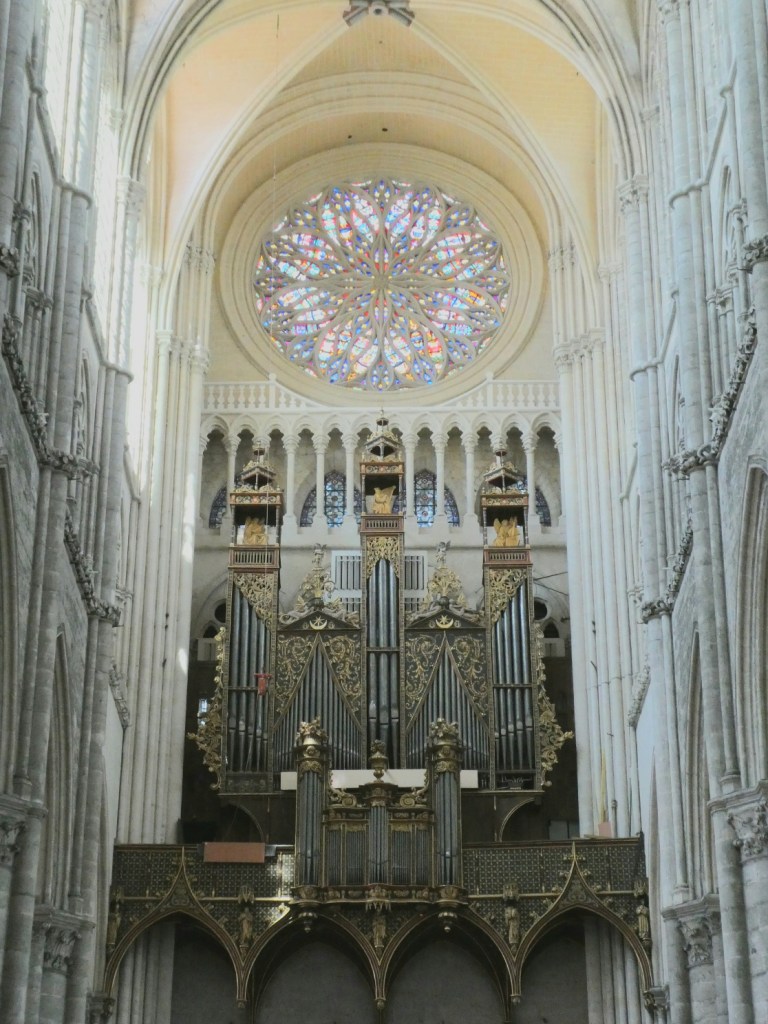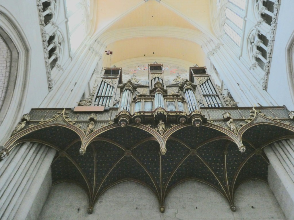 Onder het 13 meter grote rozetraam is het orgel geplaatst, met een mooie sterrenhemel aan de onderzijde.