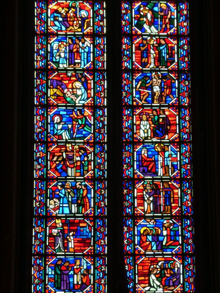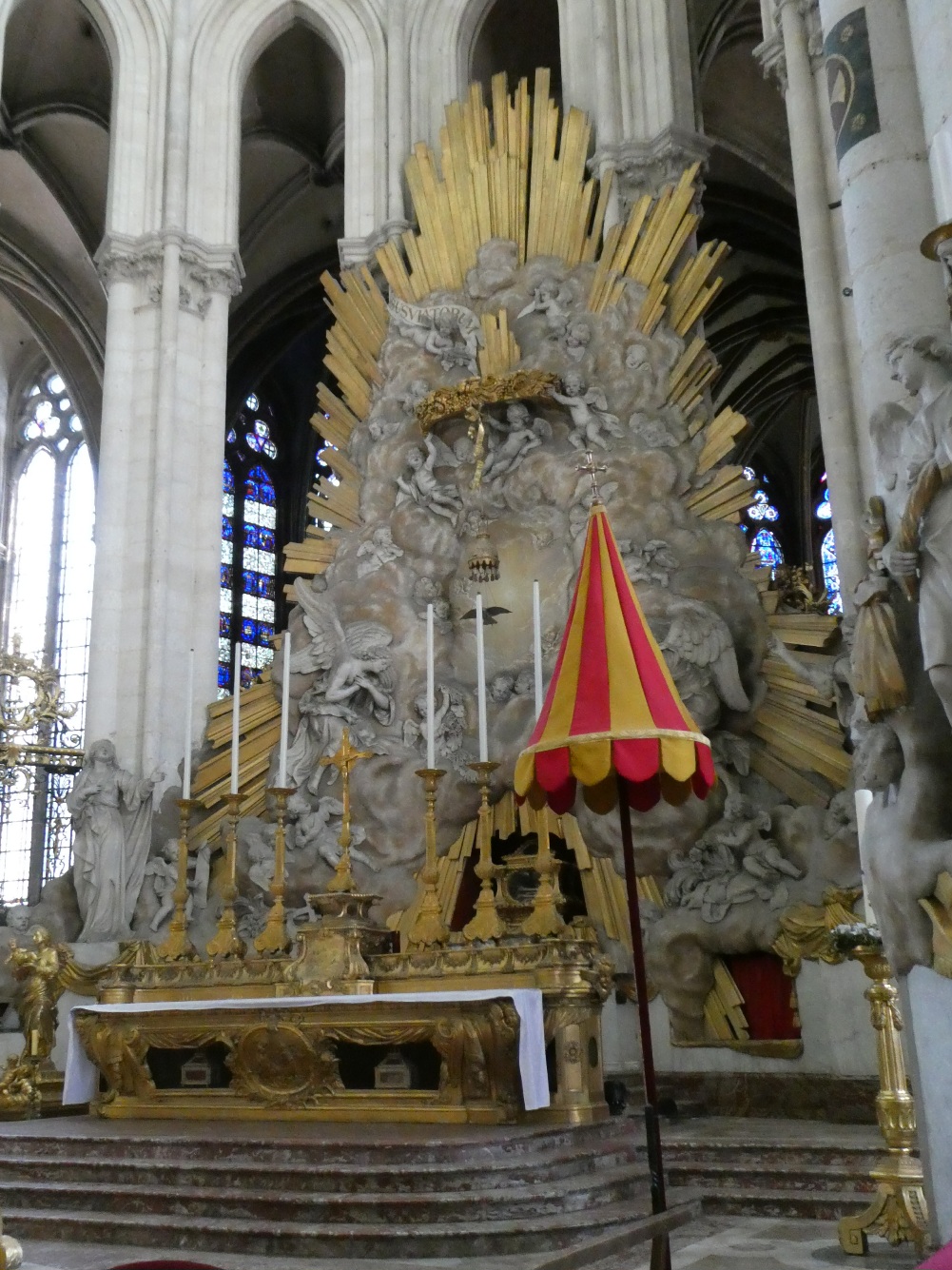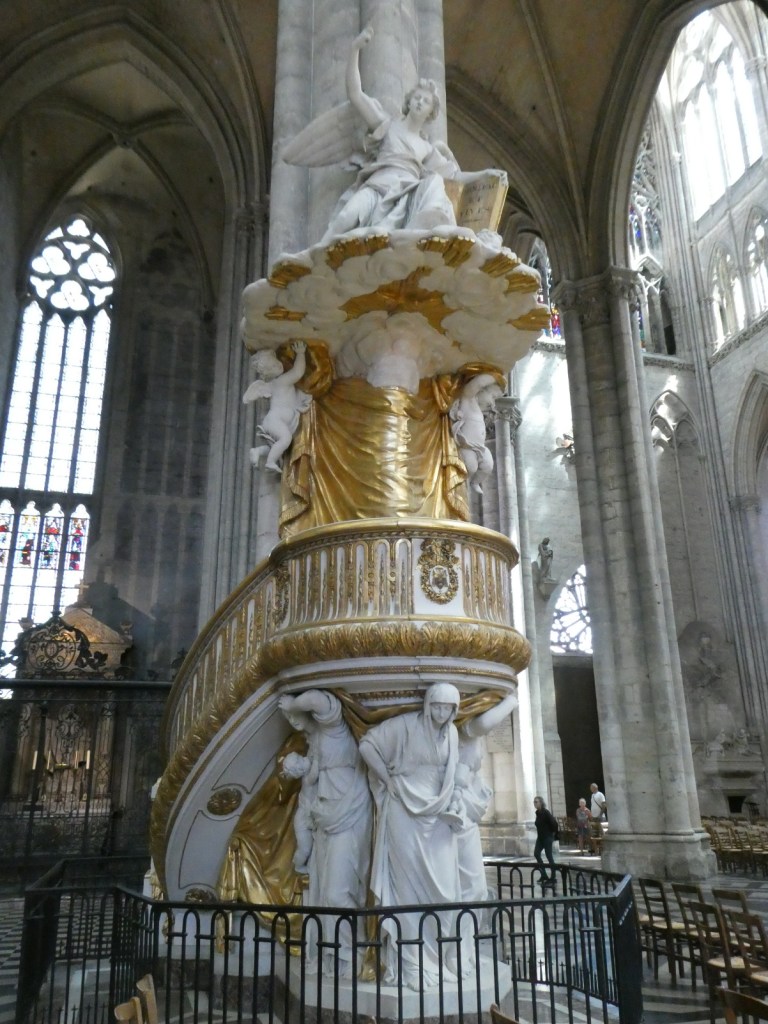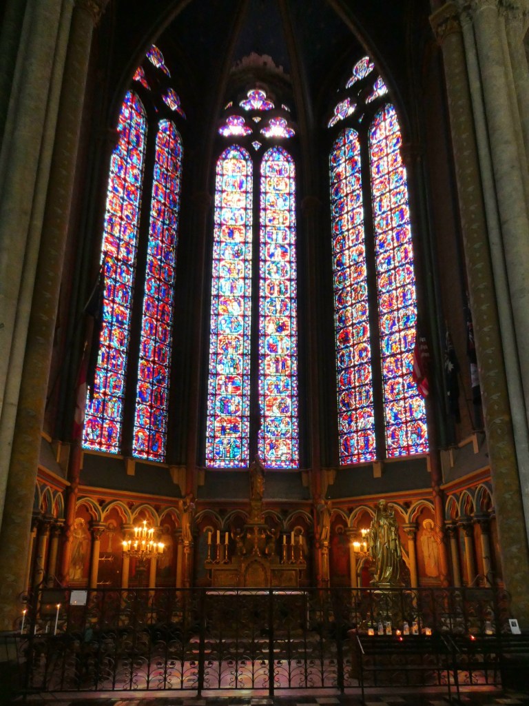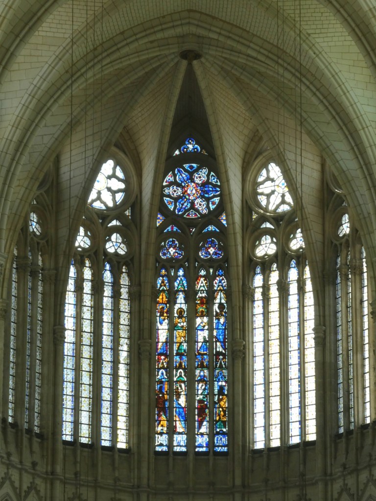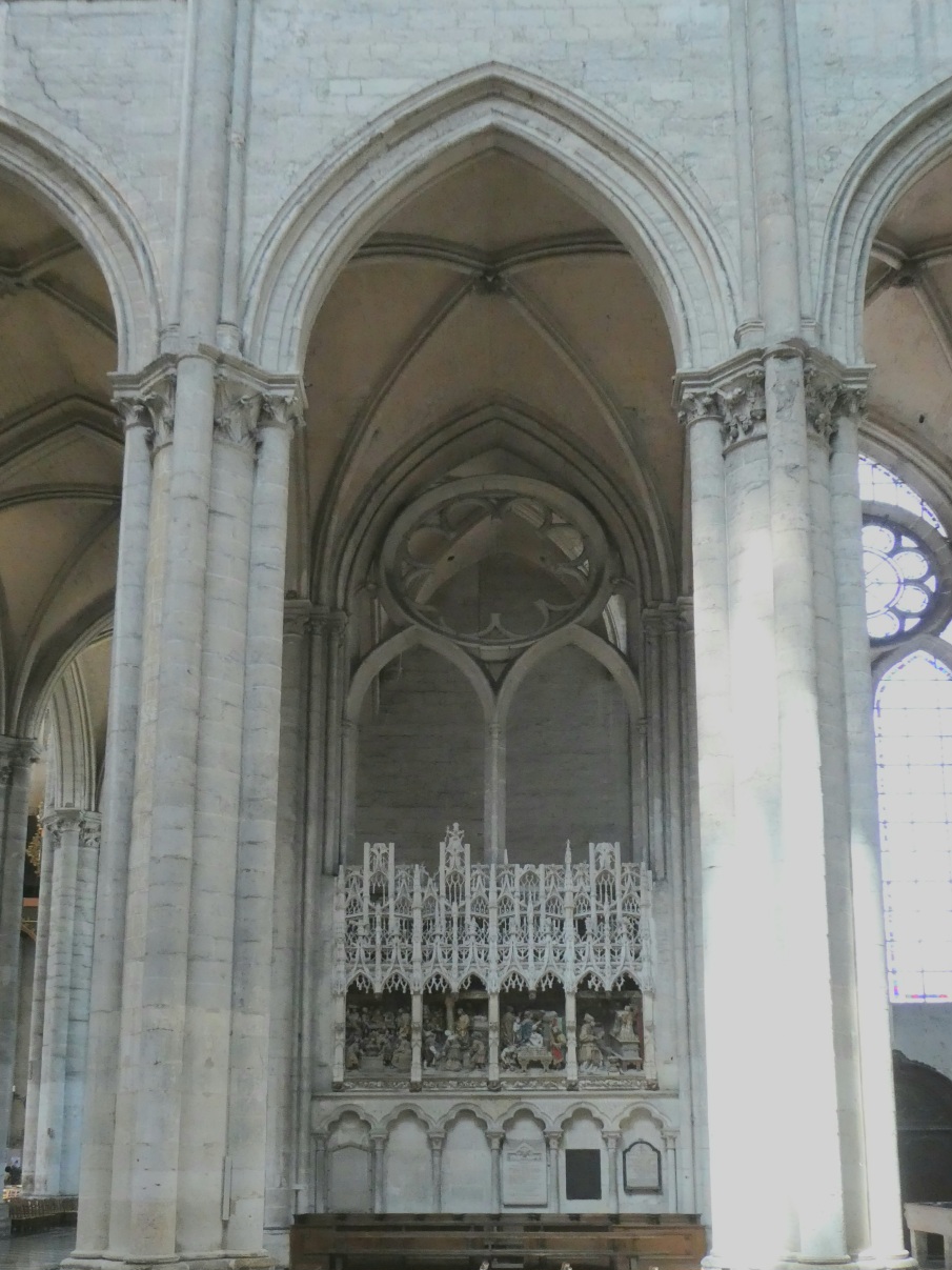 Het interieur van de kathedraal van Amiens is al net zo indrukwekkend als het exterieur. Door de enorme hoogte van 42 meter en de kleurrijke glas-in-lood ramen is de kerk heel licht en, zoals de bedoeling, verticaal opgebouwd.