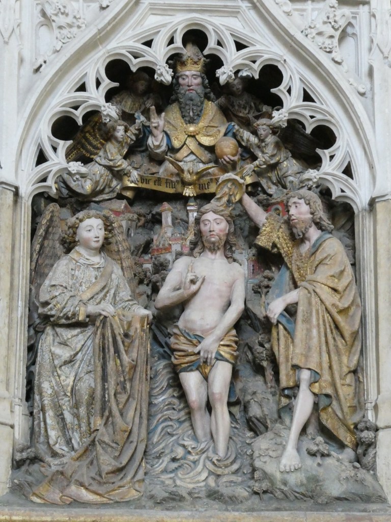 Ook het verhaal van Johannes de Doper is afgebeeld, met natuurlijk zijn doop van Jezus, en zijn afgehakte hoofd op een schaal. Bijzonder is dat een deel van dat hoofd (de bovenkant) als reliek in de kathedraal valt te bewonderen, gevat in een gouden schaal.