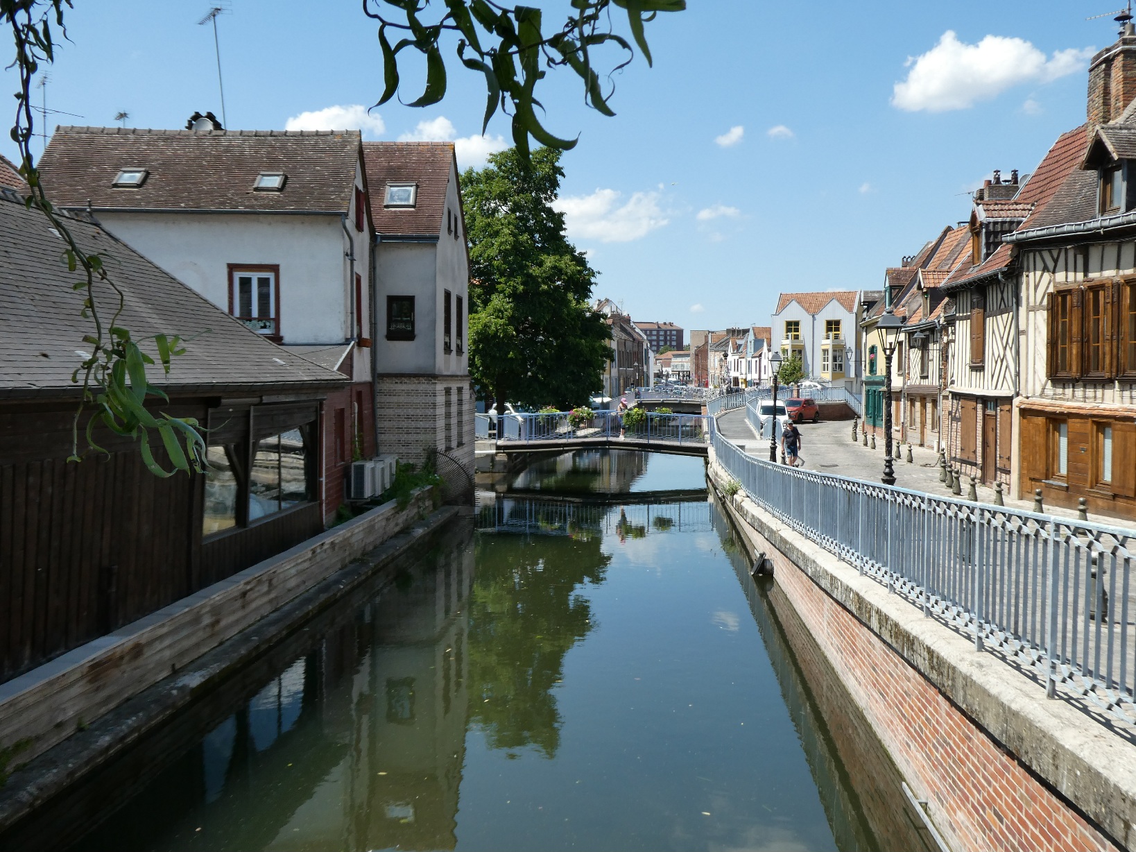 De wijk Saint-Leu in Amiens wordt doorkruist door een arm van de rivier de Somme. Daardoor was het in de Middeleeuwen de wijk van de ververs, de leerlooiers, de wevers en andere ambachten waarvoor watermolens de energie moesten leveren. Toen die ambachten ten onder gingen, verloederde de wijk, maar inmiddels wordt het weer een populair gebied waar het goed flaneren is over de kades, bruggetjes en door de smalle steegjes. Het verhaal is dat de huizen allemaal een andere kleur hebben zodat je je eigen huis terug kunt vinden als je ’s avonds dronken thuis komt.